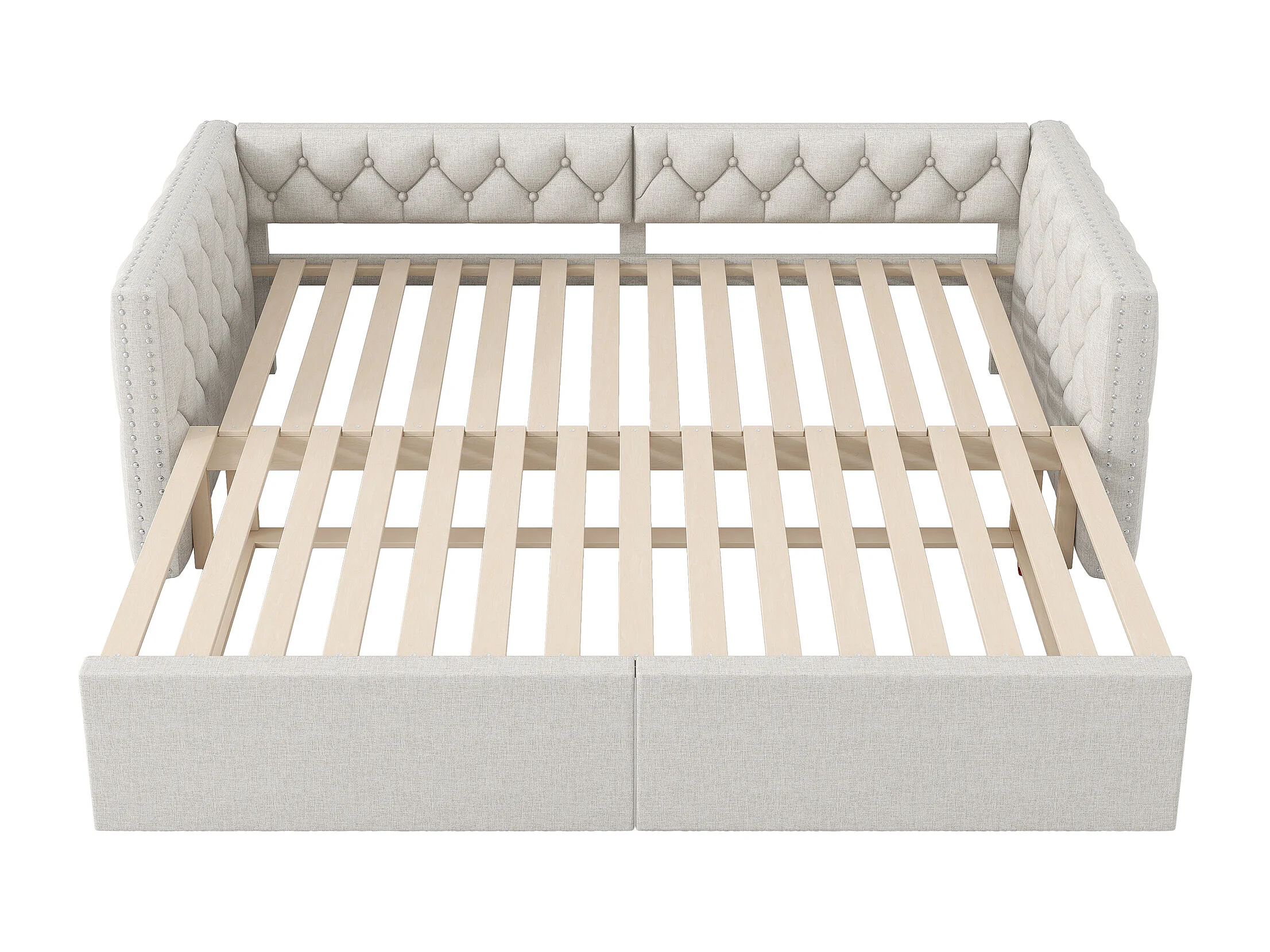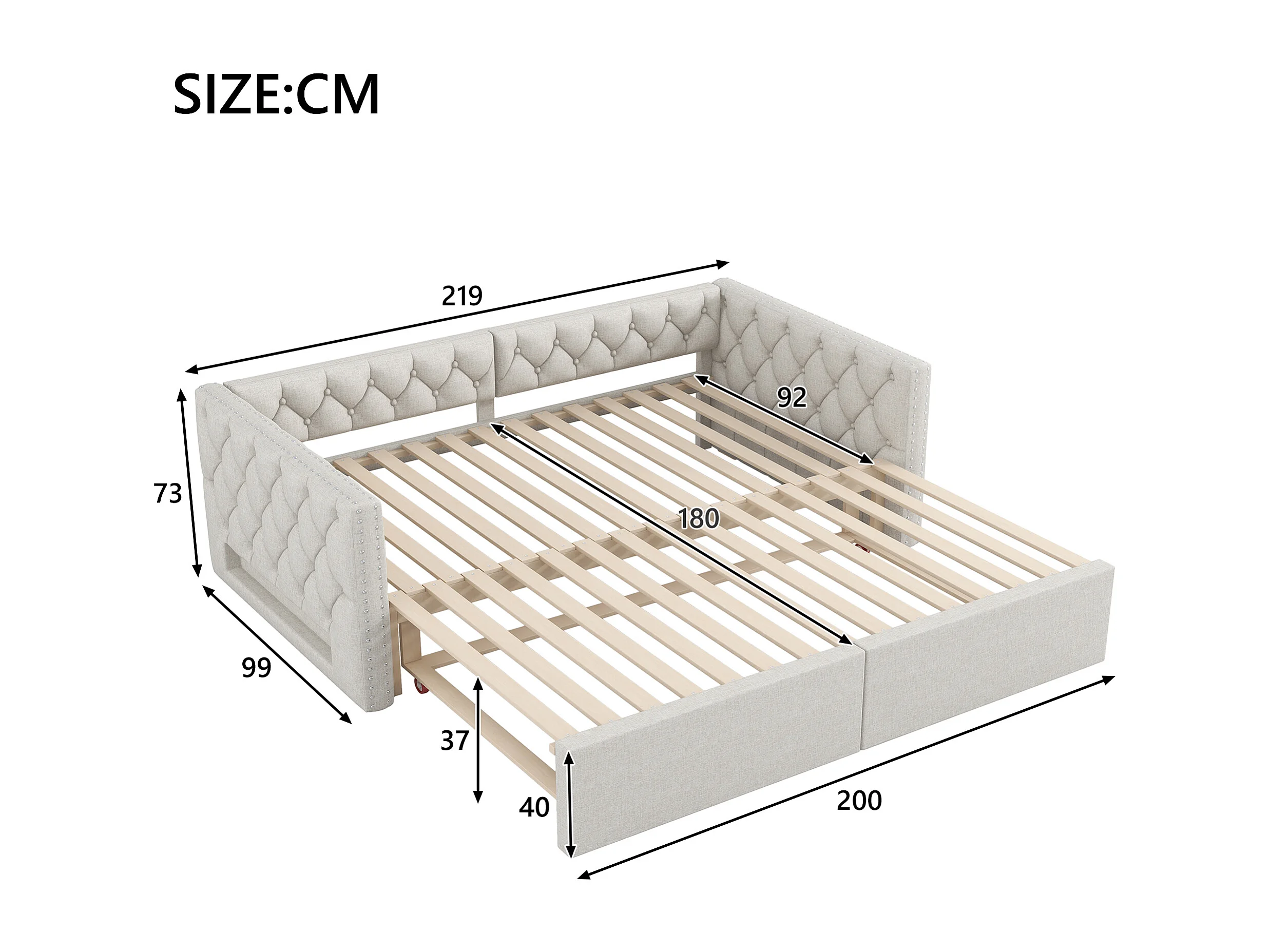 Canapé-lit extensible - 90/180 x 200 cm - avec revêtement + Leds - sans matelas - MDF - beige
