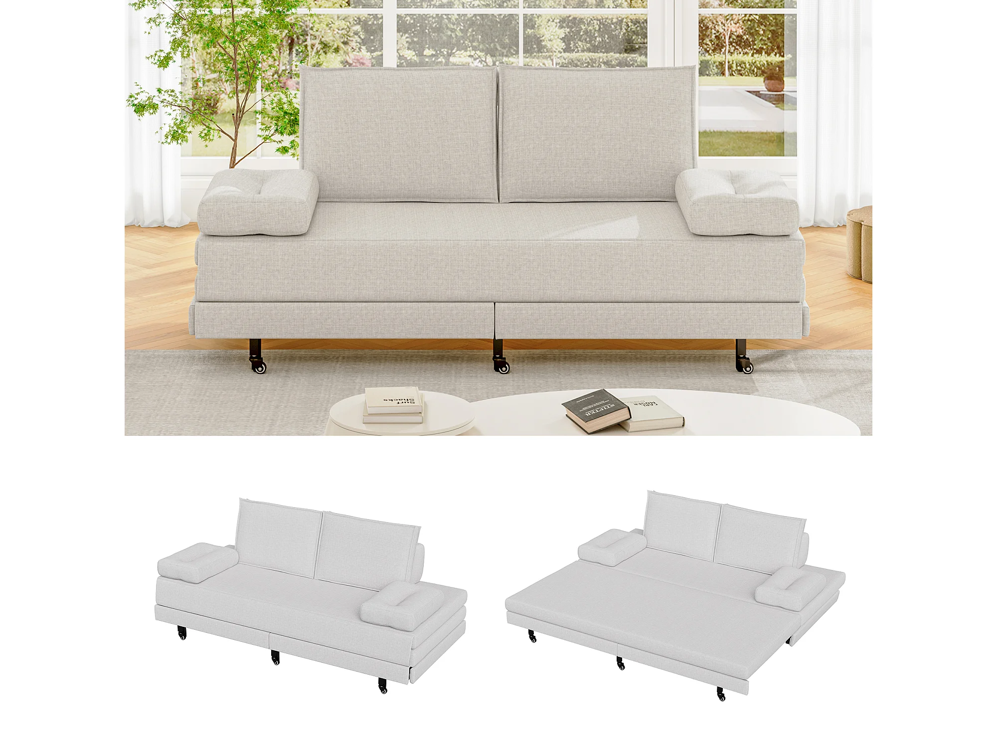 Canapé-lit extensible 90×200 cm blanc, convertible 180×200 cm, design moderne et gain de place
