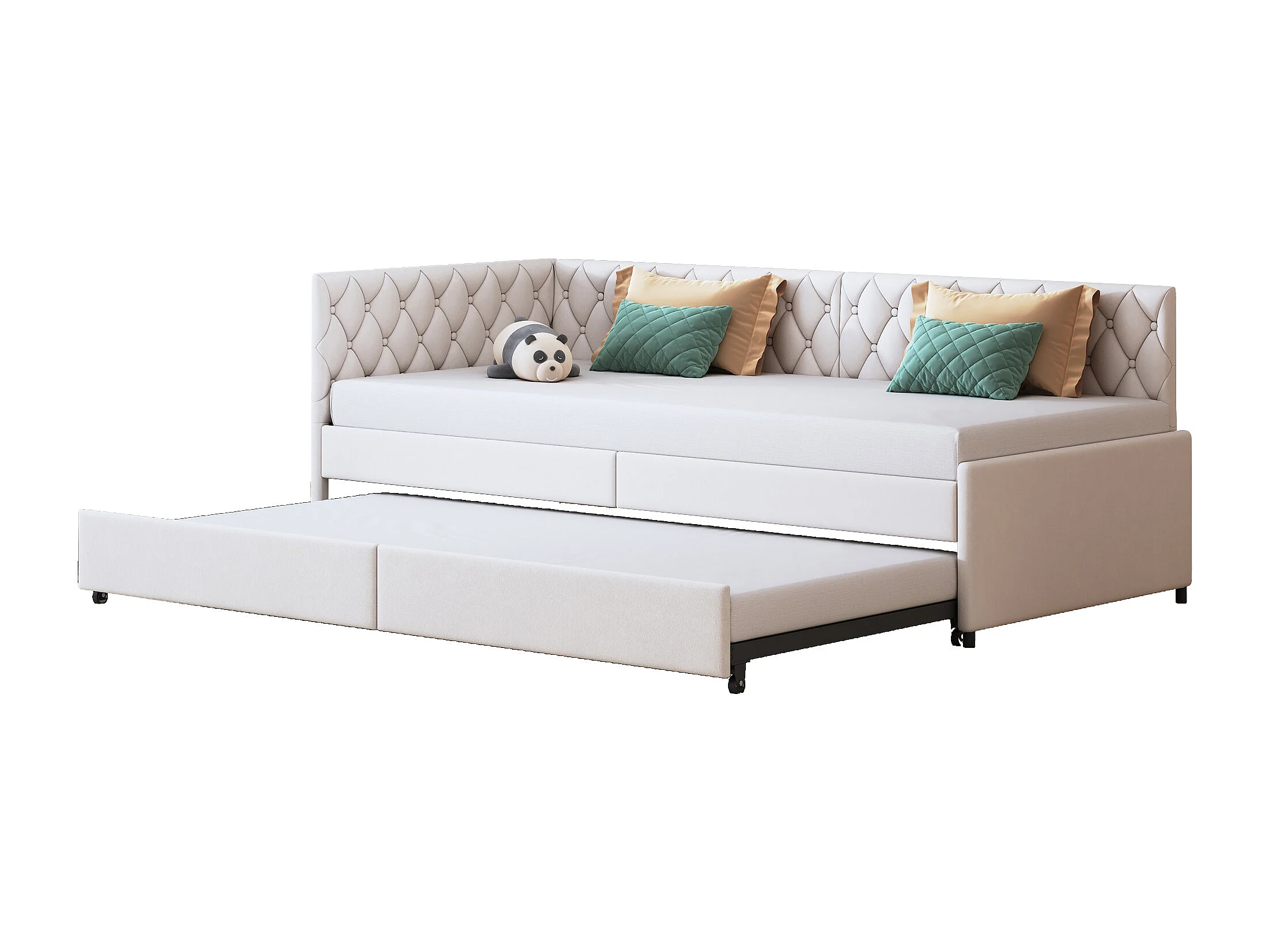 Canapé-lit extensible - Canapés de séjour - Tissu de velours Lit d'invité avec cadres à lames-cadre de canapé-lit rembourré tirable - 90x200cm - Beige