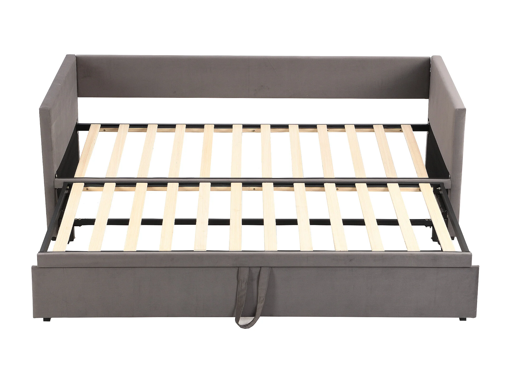 Lit enfant gigogne 90/180x200 cm gris en velours, lit adultes/enfant, multifonctionnel, sans matelas