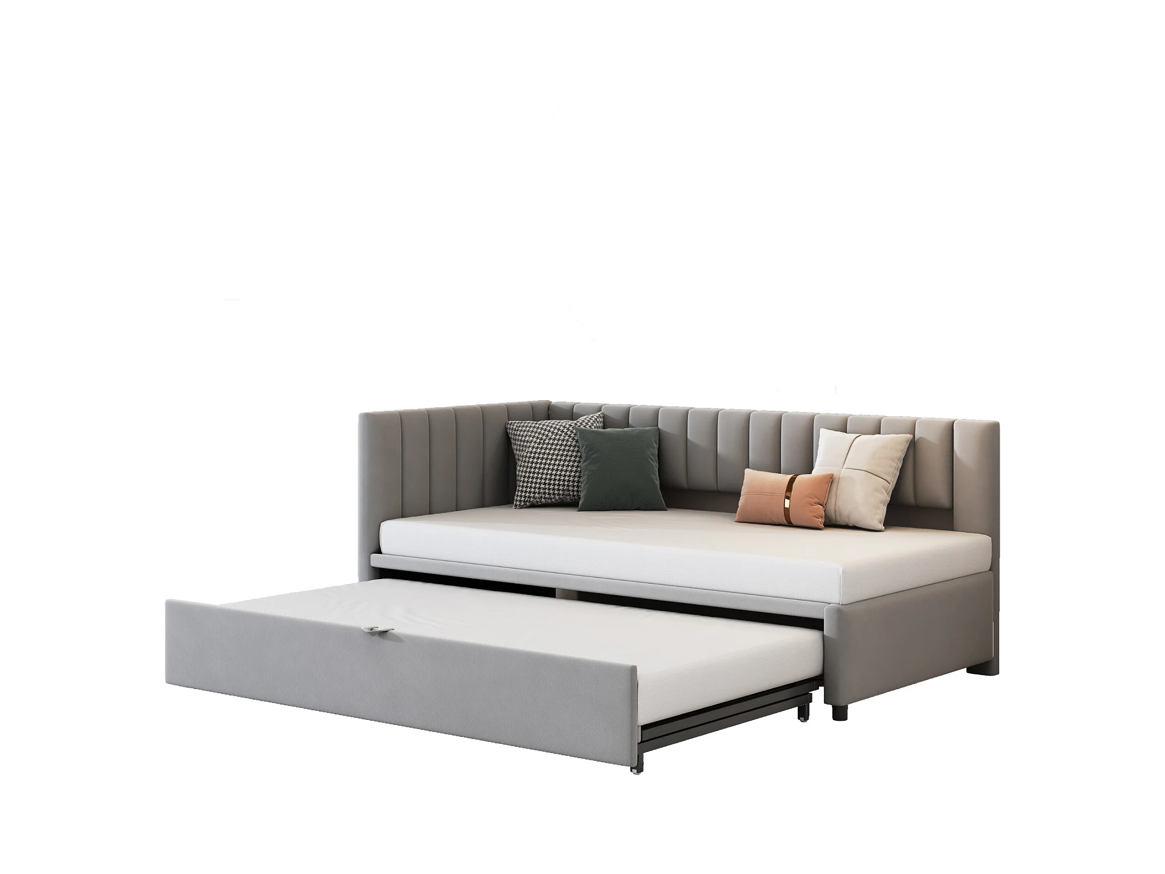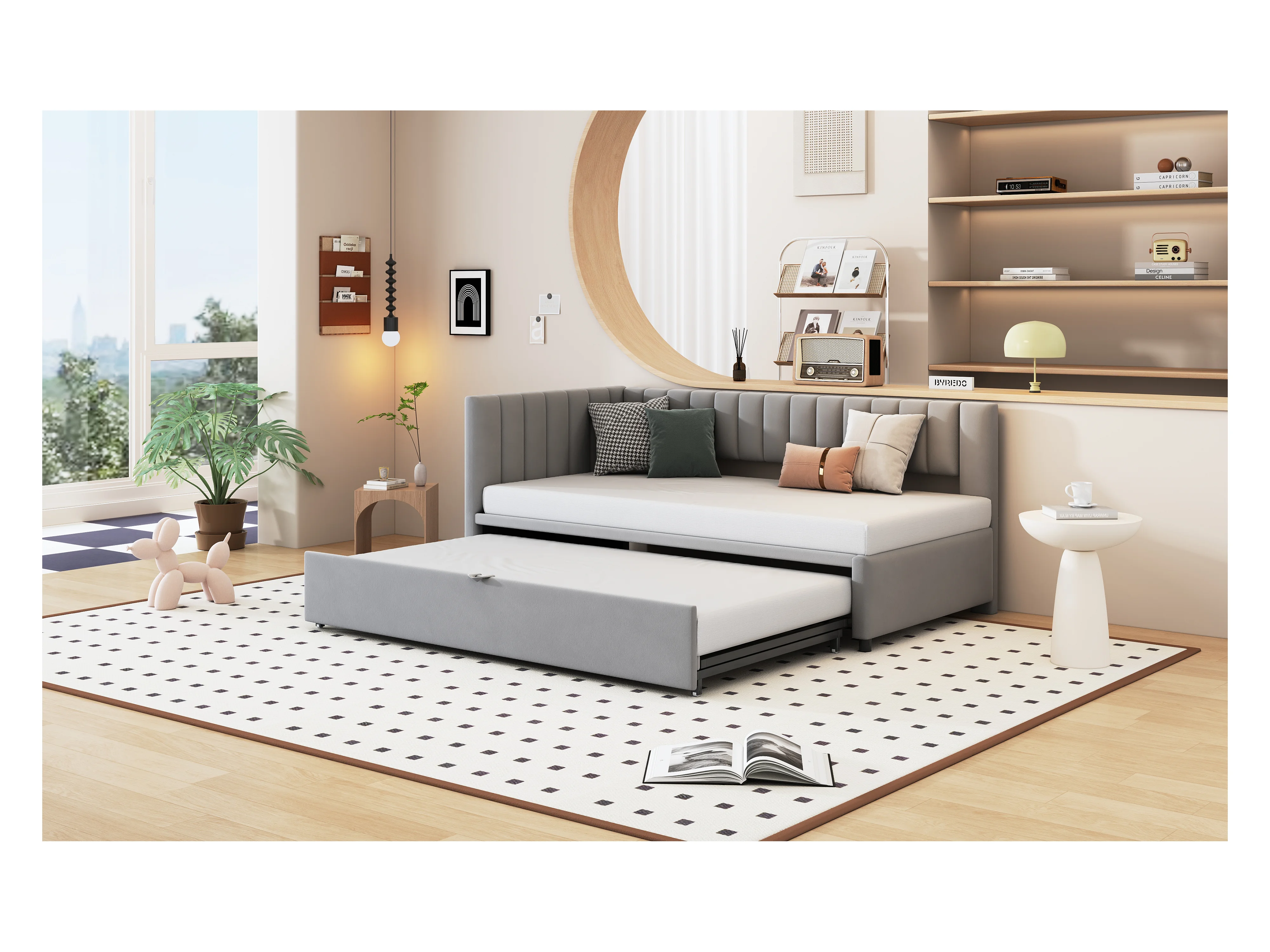 Canapé-lit L-forme 90/180 x 200 cm, Tissu en Velours, Design Compact, Lit Extensible, Gris (208 x 97.5 x 75 cm)