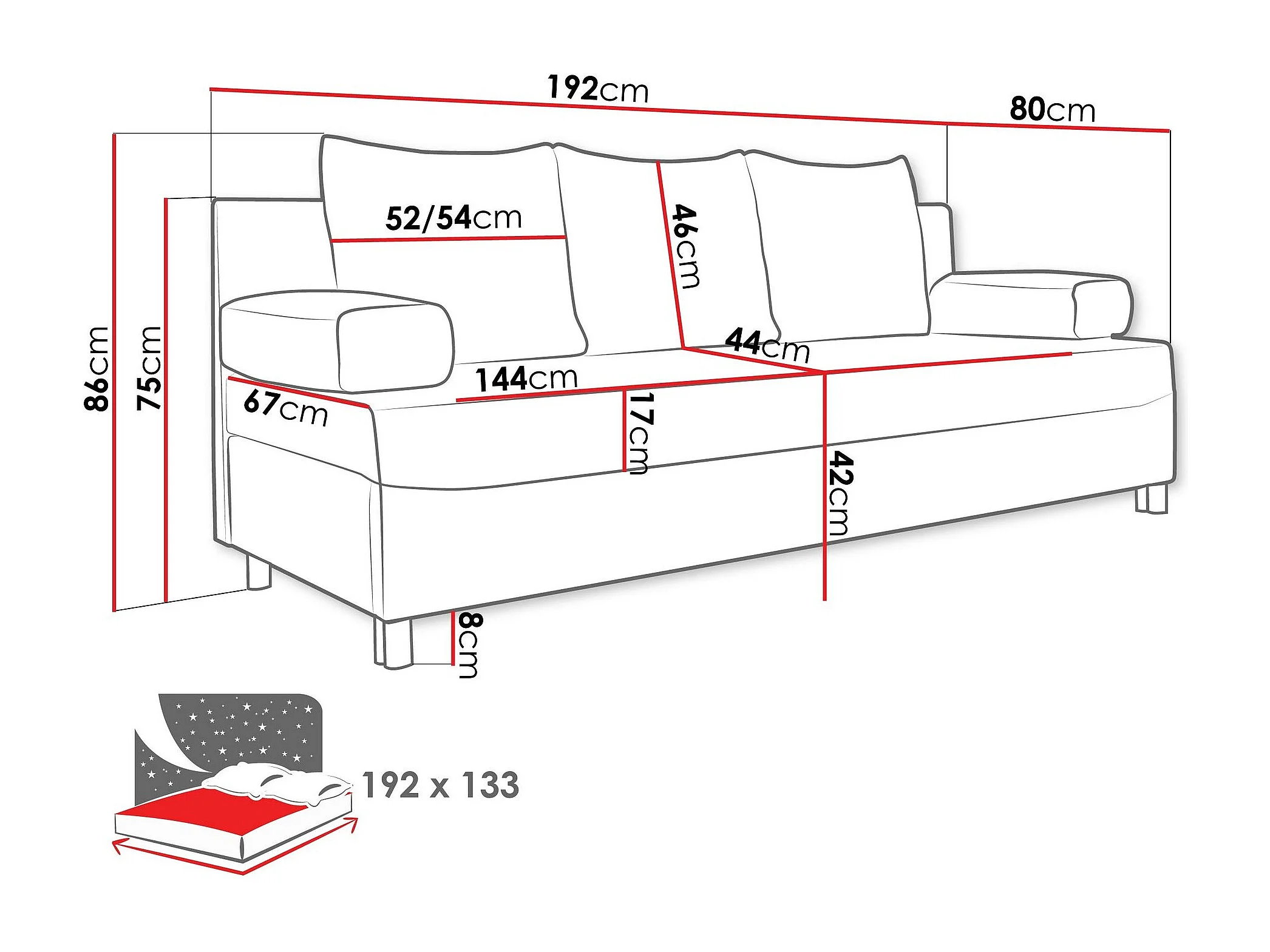 Canapé convertible Comfivo Artes, Disponible, 86x192x80cm