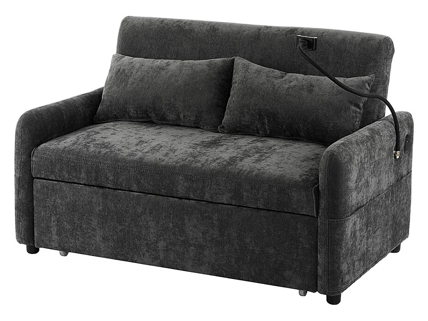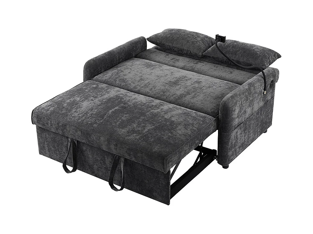 Canapé-lit moderne pliant à deux places, dossier réglable, support pour téléphone portable, port de charge USB,Noir