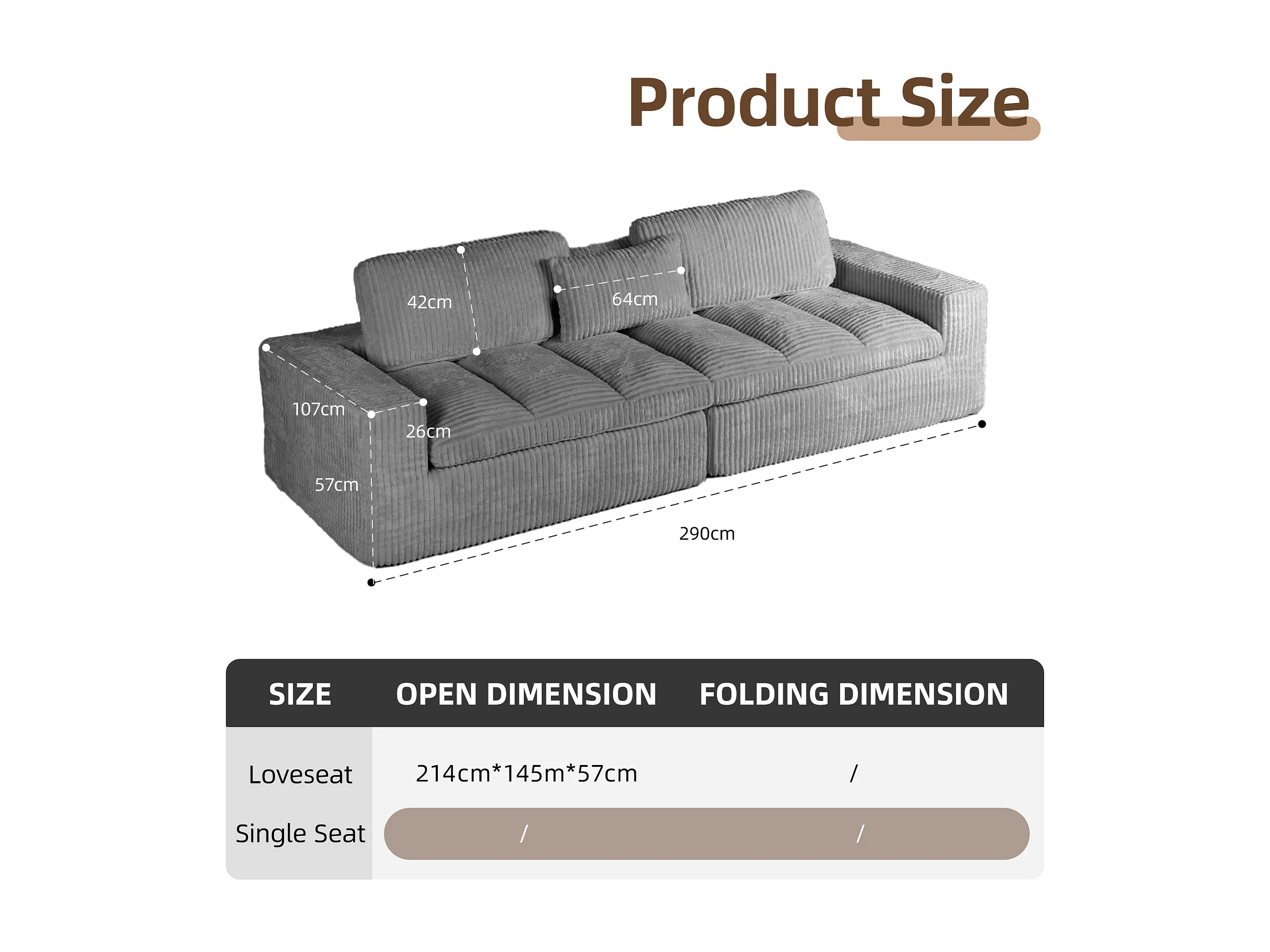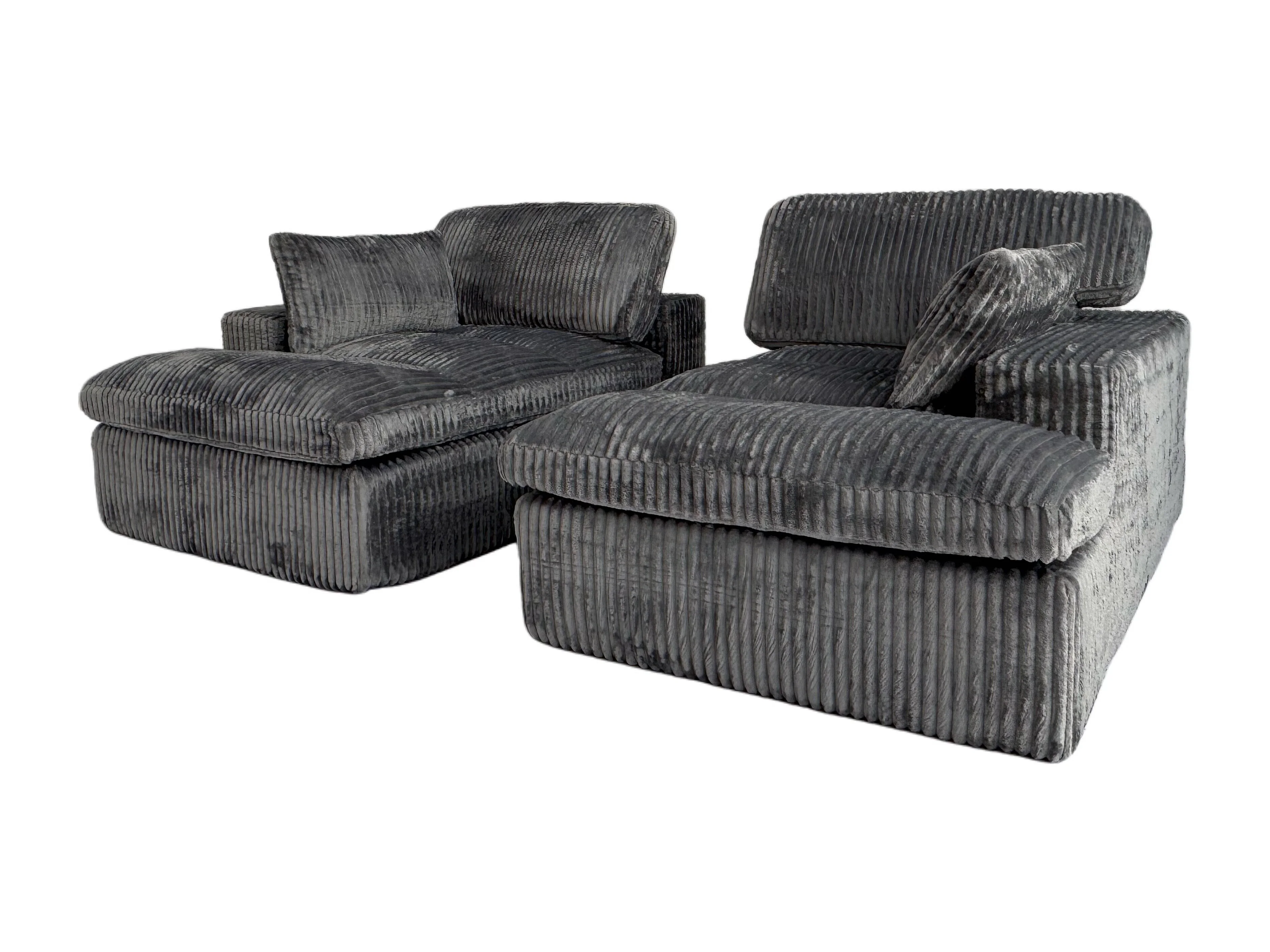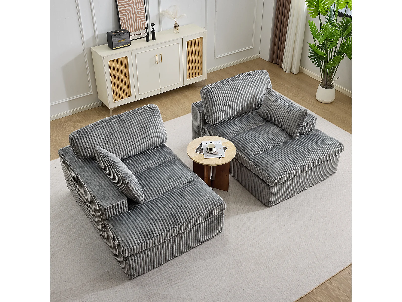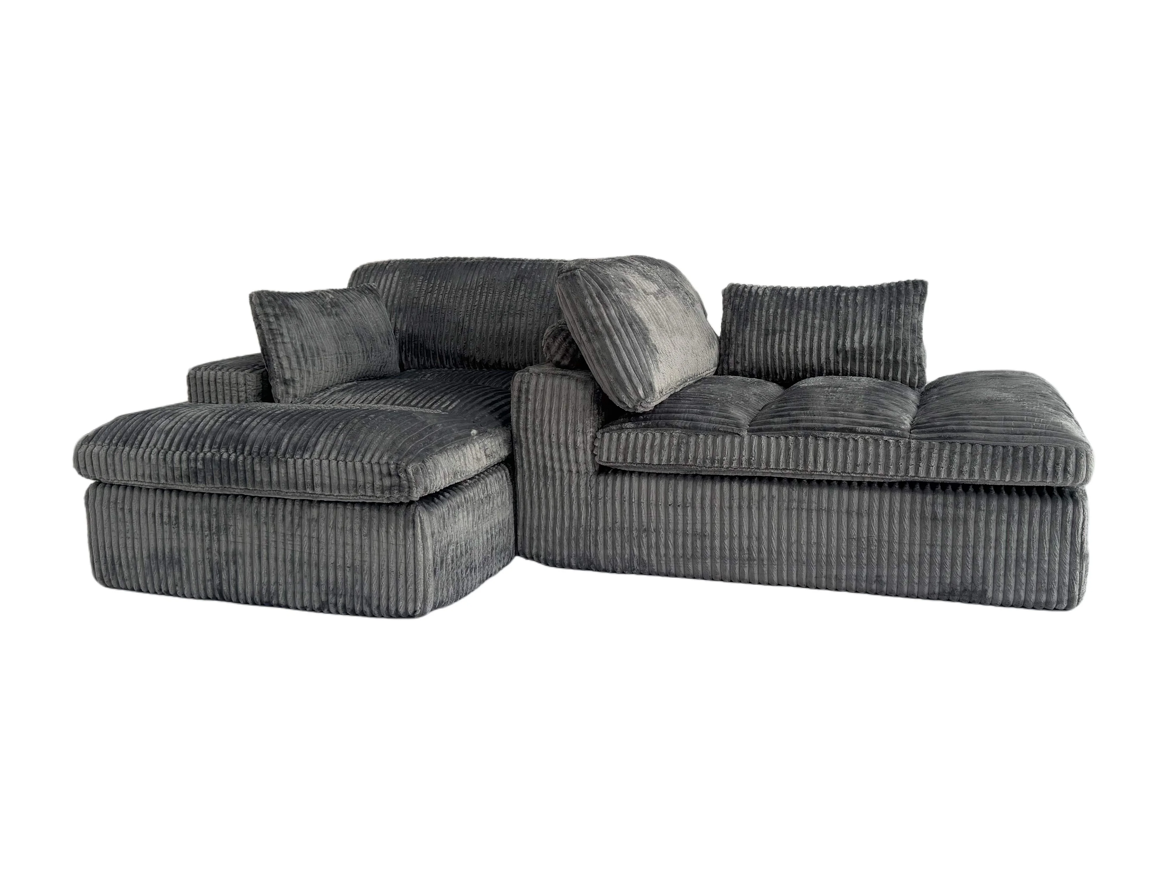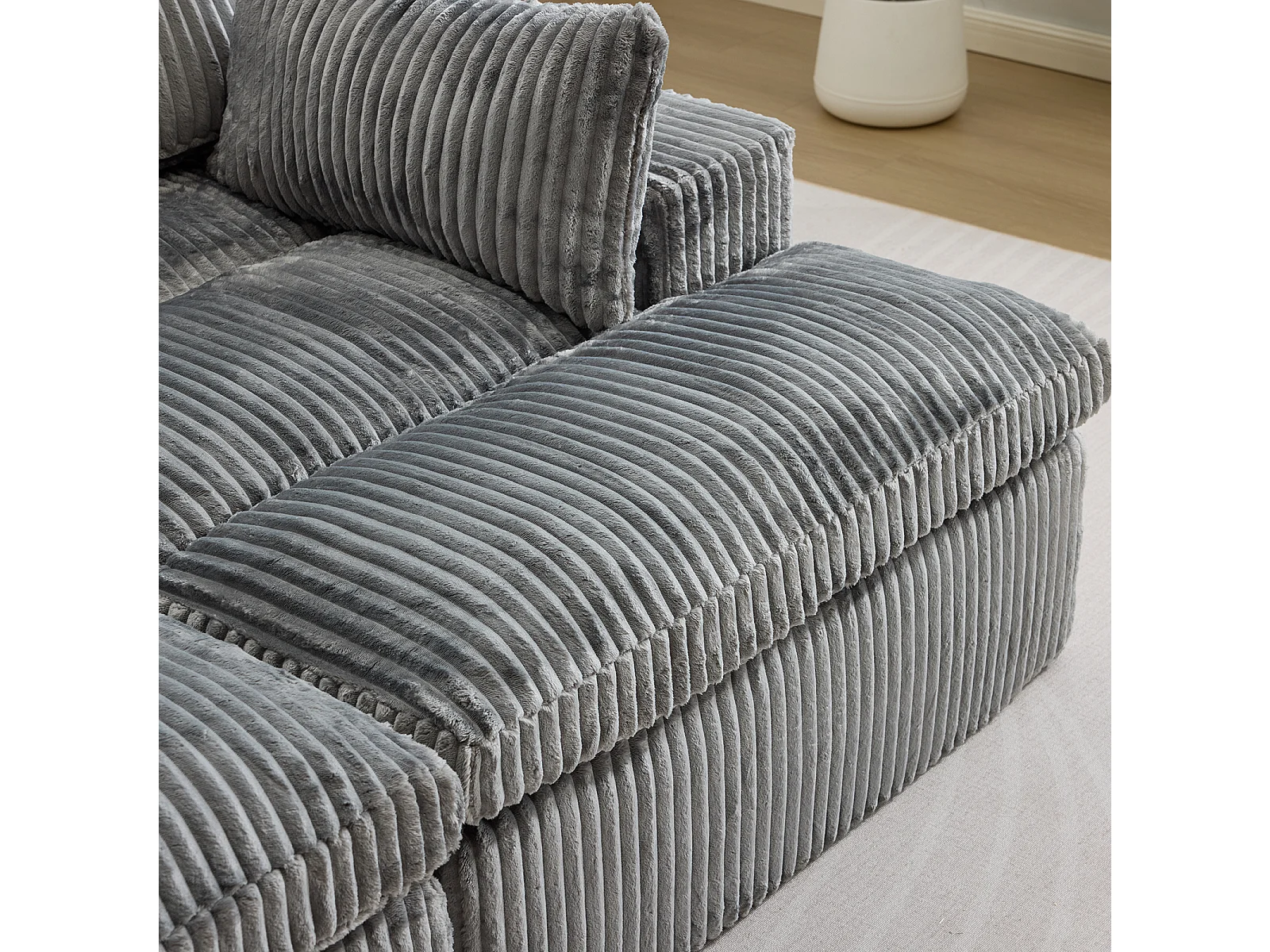 Canapé-lit modulable en velours côtelé avec chaise longue, design prêt à l'emploi, spécialement conçu pour les appartements compacts, gris