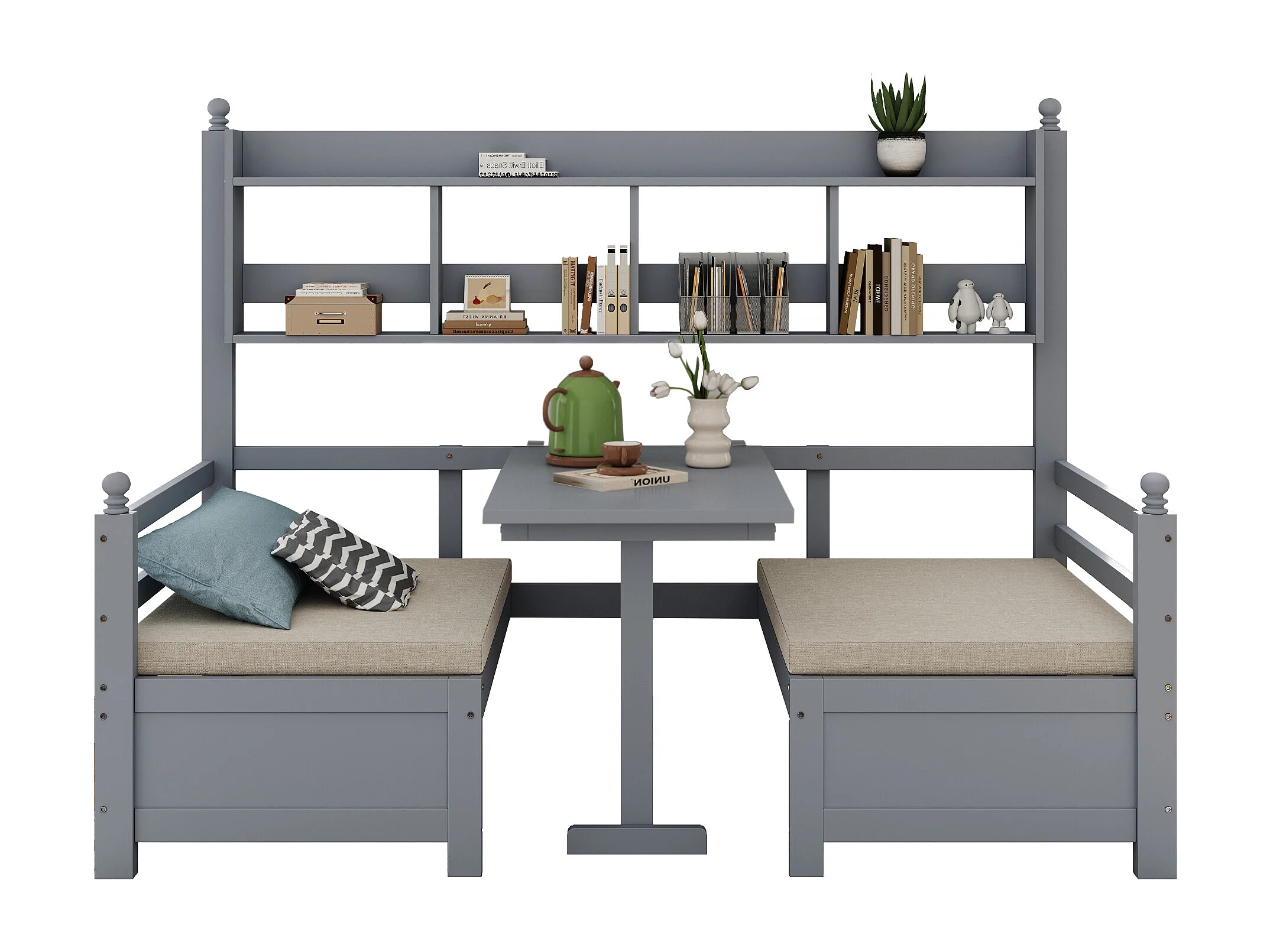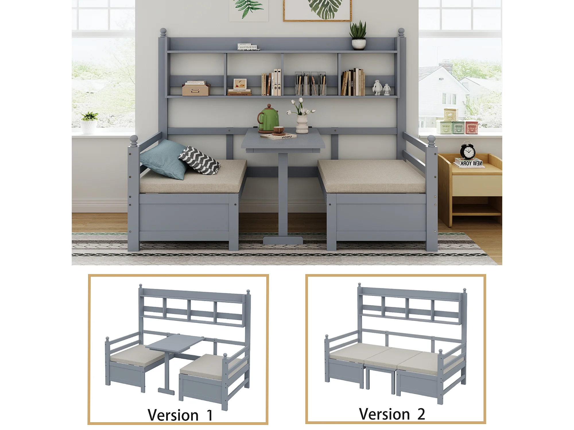 Canapé-lit multifonction 200x90 cm, 2-en-1 lit et bureau, modulable, étagère de rangement, coussins, lit simple, gris