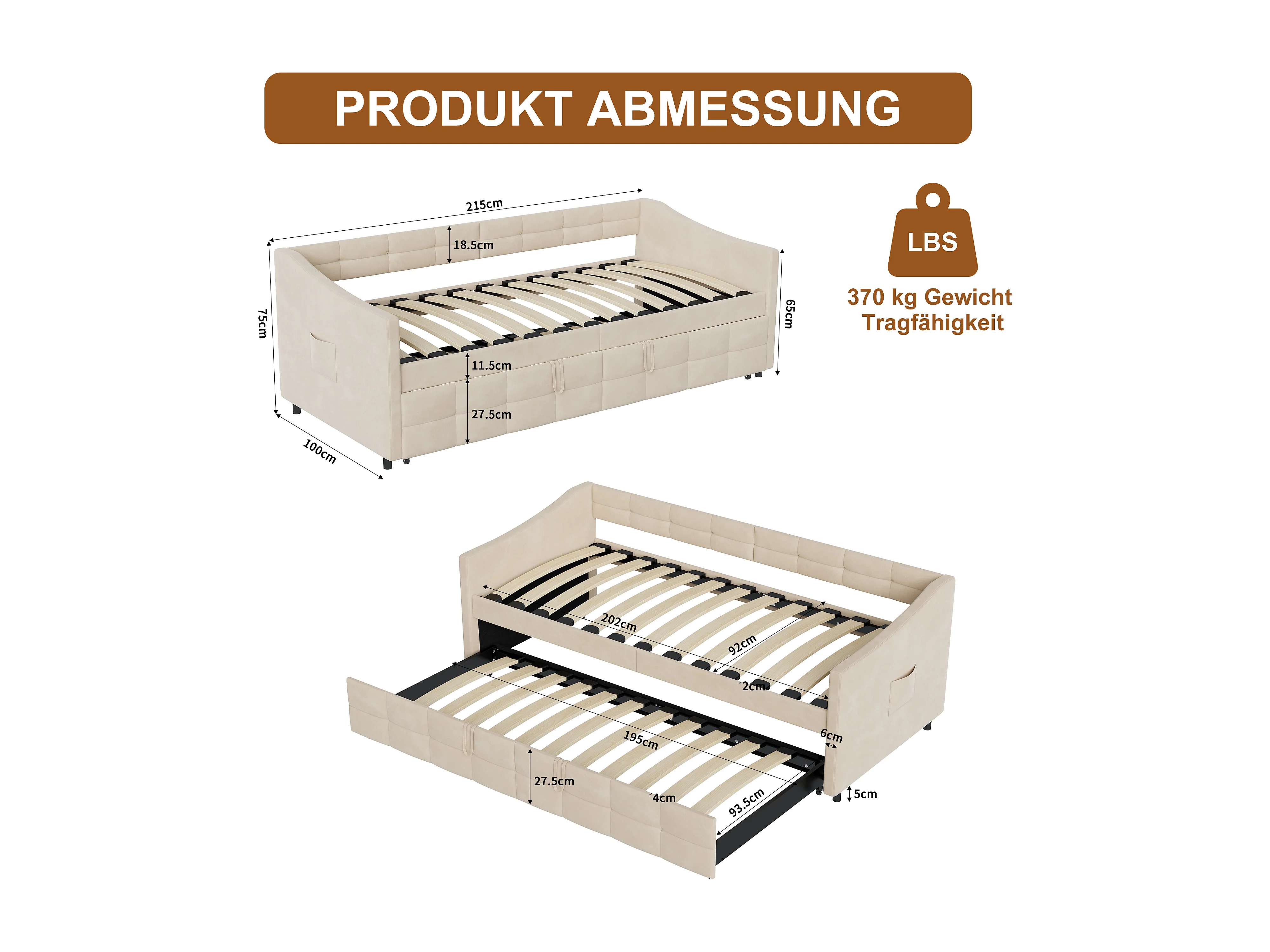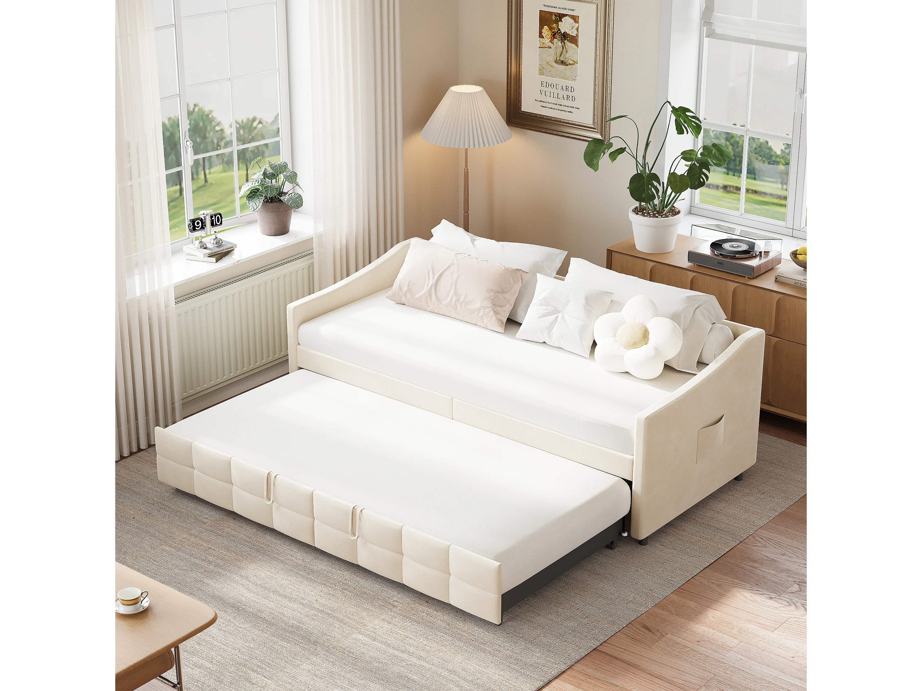 Canapé-lit Multifonction Extensible Simples 90x200cm – Canapé, Flanelle Tissu Beige