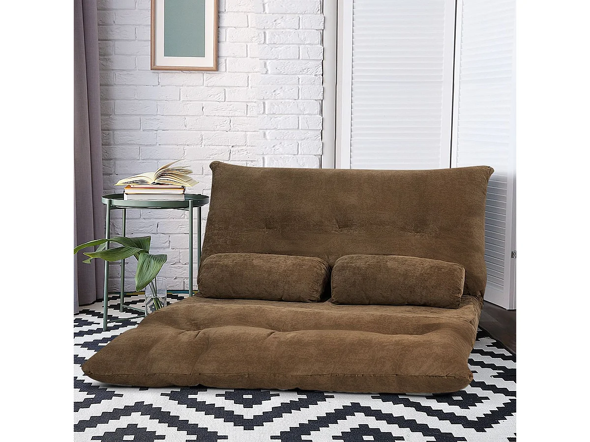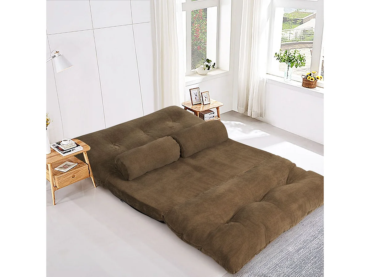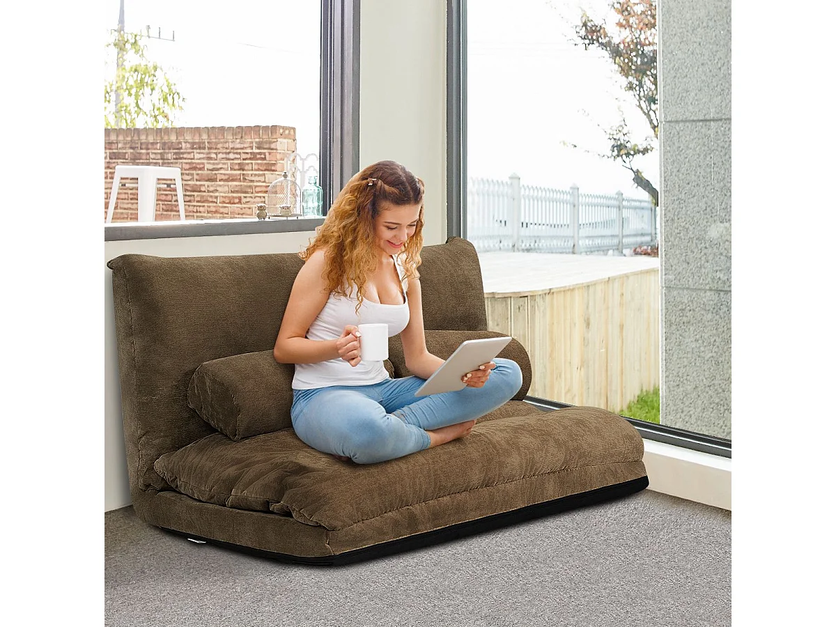 Canapé-lit Paresseux Pliable, Canapé de Sol Réglable 90°-180° à 6 Positions avec 2 Oreillers Café
