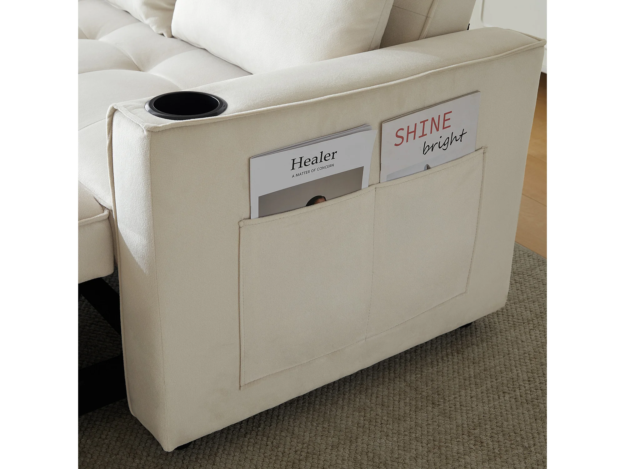 Canapé-lit pliant multifonction avec porte-gobelets et coussins, idéal pour salon, chambre ou home cinéma