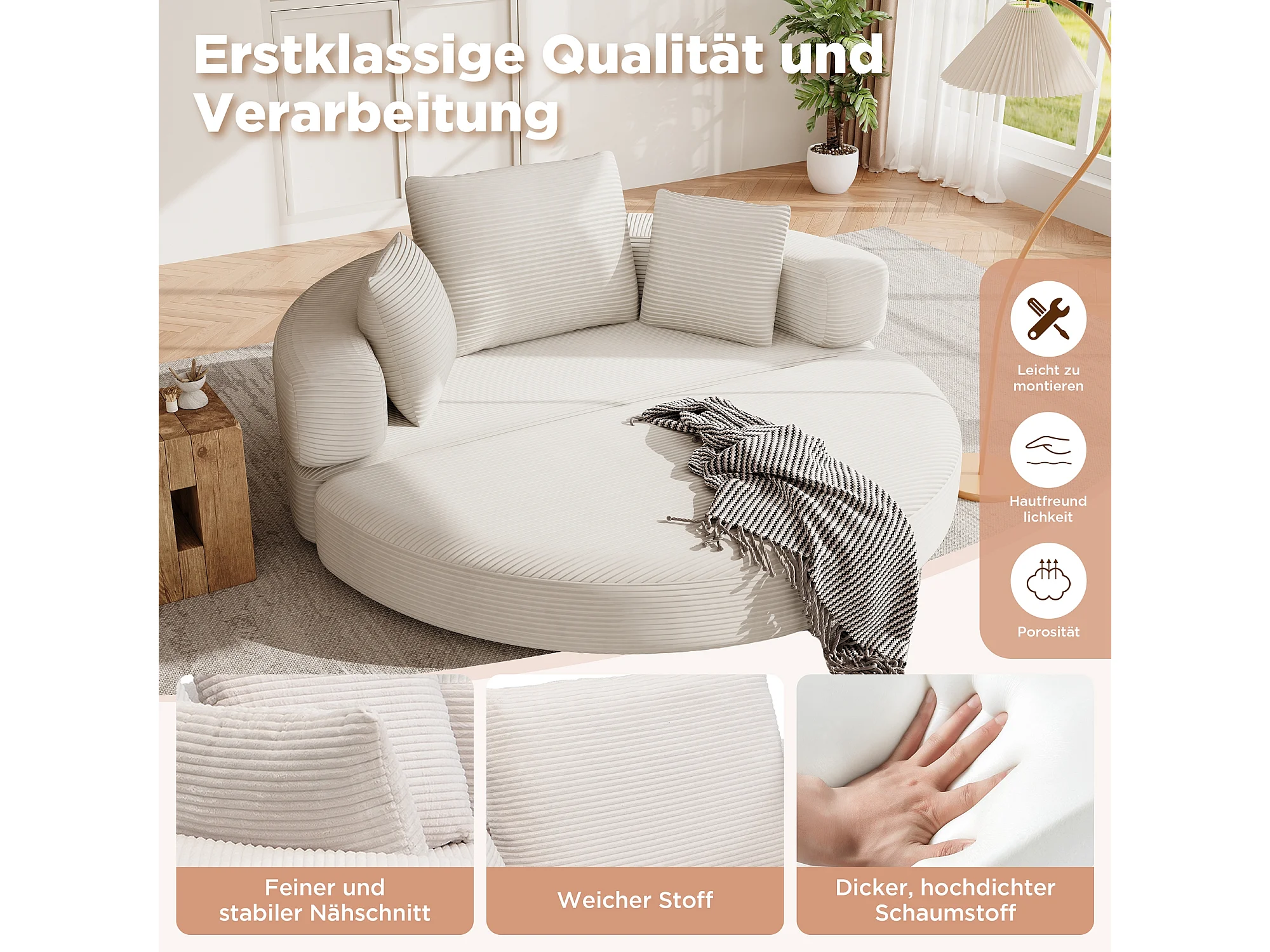 Canapé-lit pliant sans structure - 173 x 176 x 40 cm - canapé modulable convertible avec coussins - velours - beige