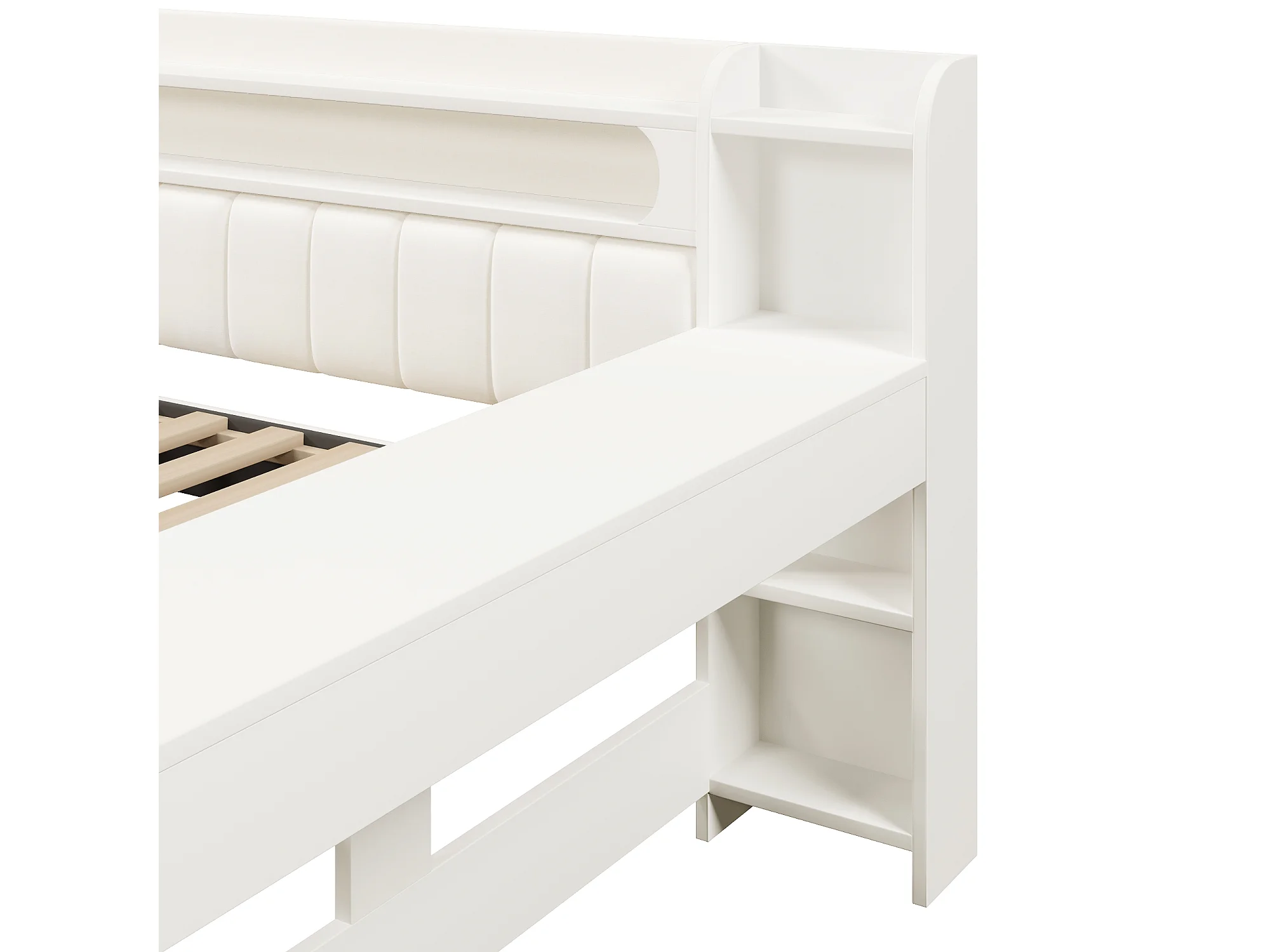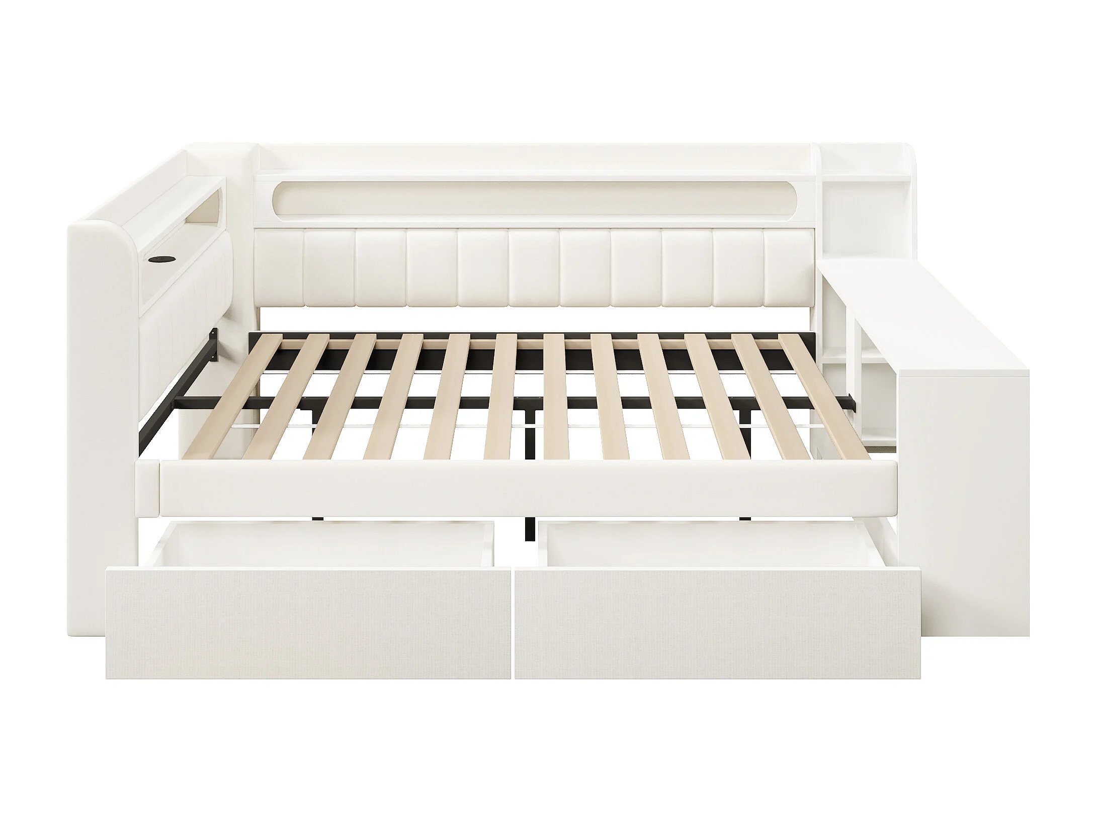 Canapé-lit rembourré 140x200 cm - avec ports USB et LED - avec bureau et 2 tiroirs - blanc(sans matelas)