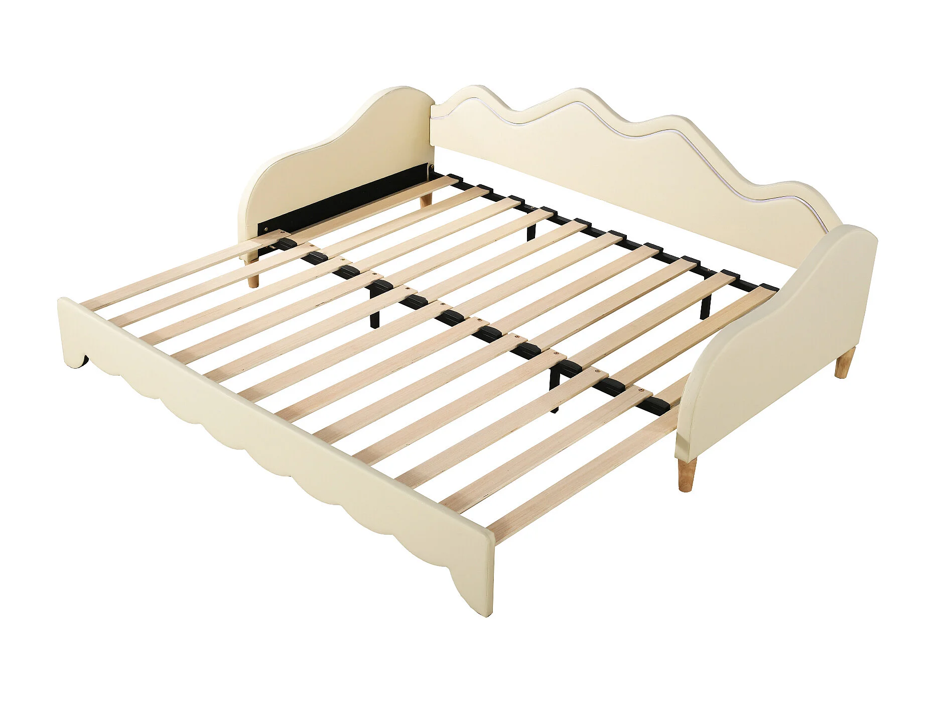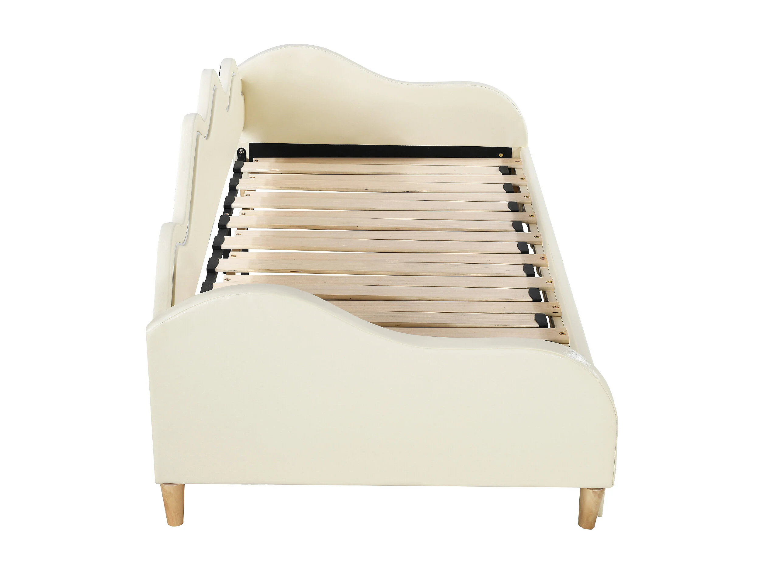 Lit enfant rembourré 90(180)x190cm avec éclairage LED, multifonction 2 en 1, lit enfant en similicuir, beige, sans matelas