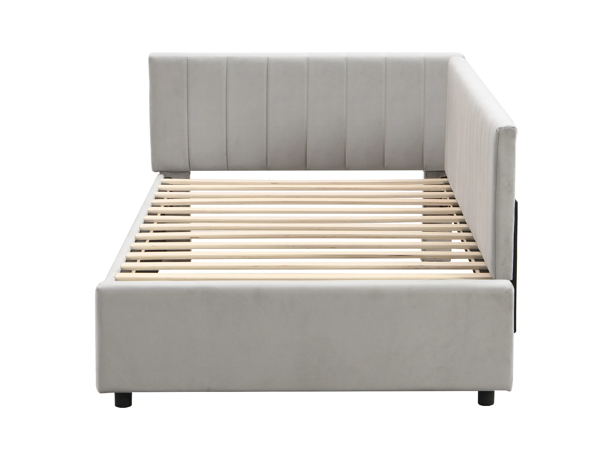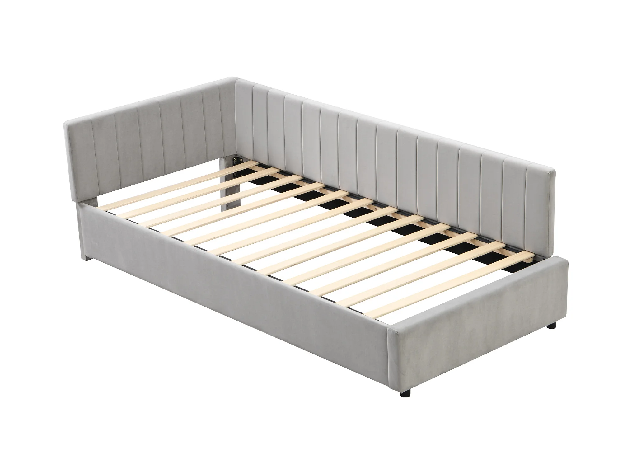 Canapé-lit rembourré 90*200, lit multifonctionnel avec sommier à lattes, tissu velours, gris