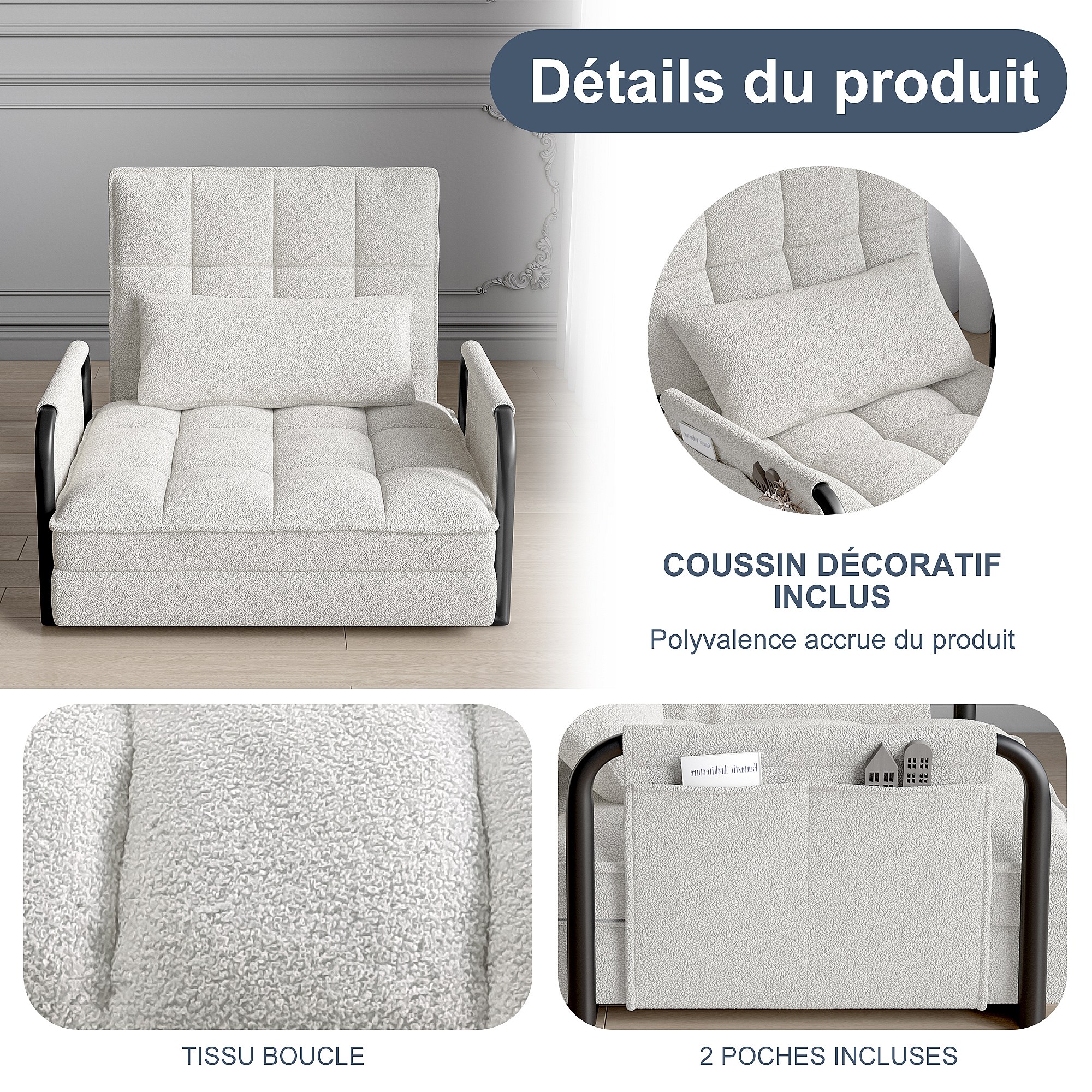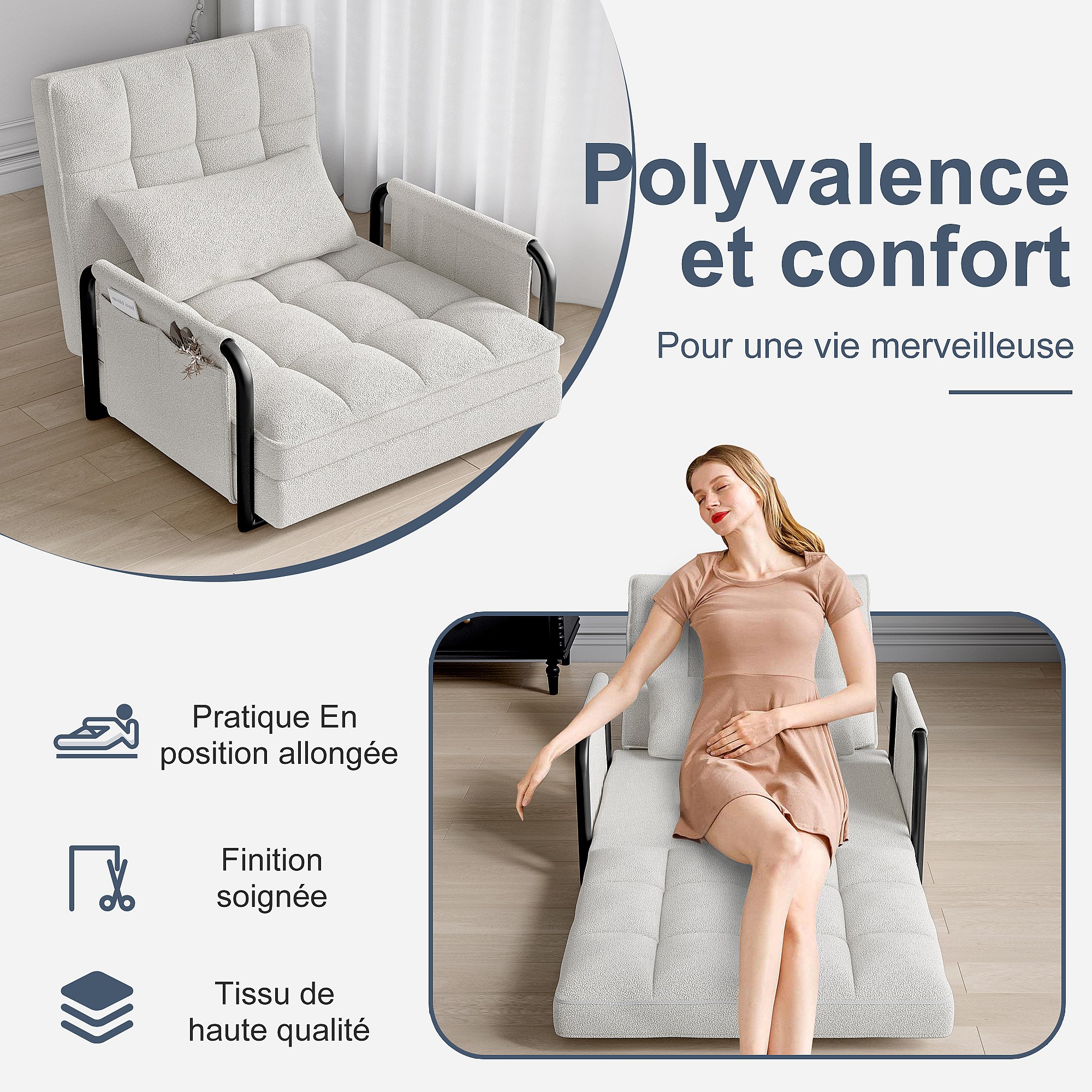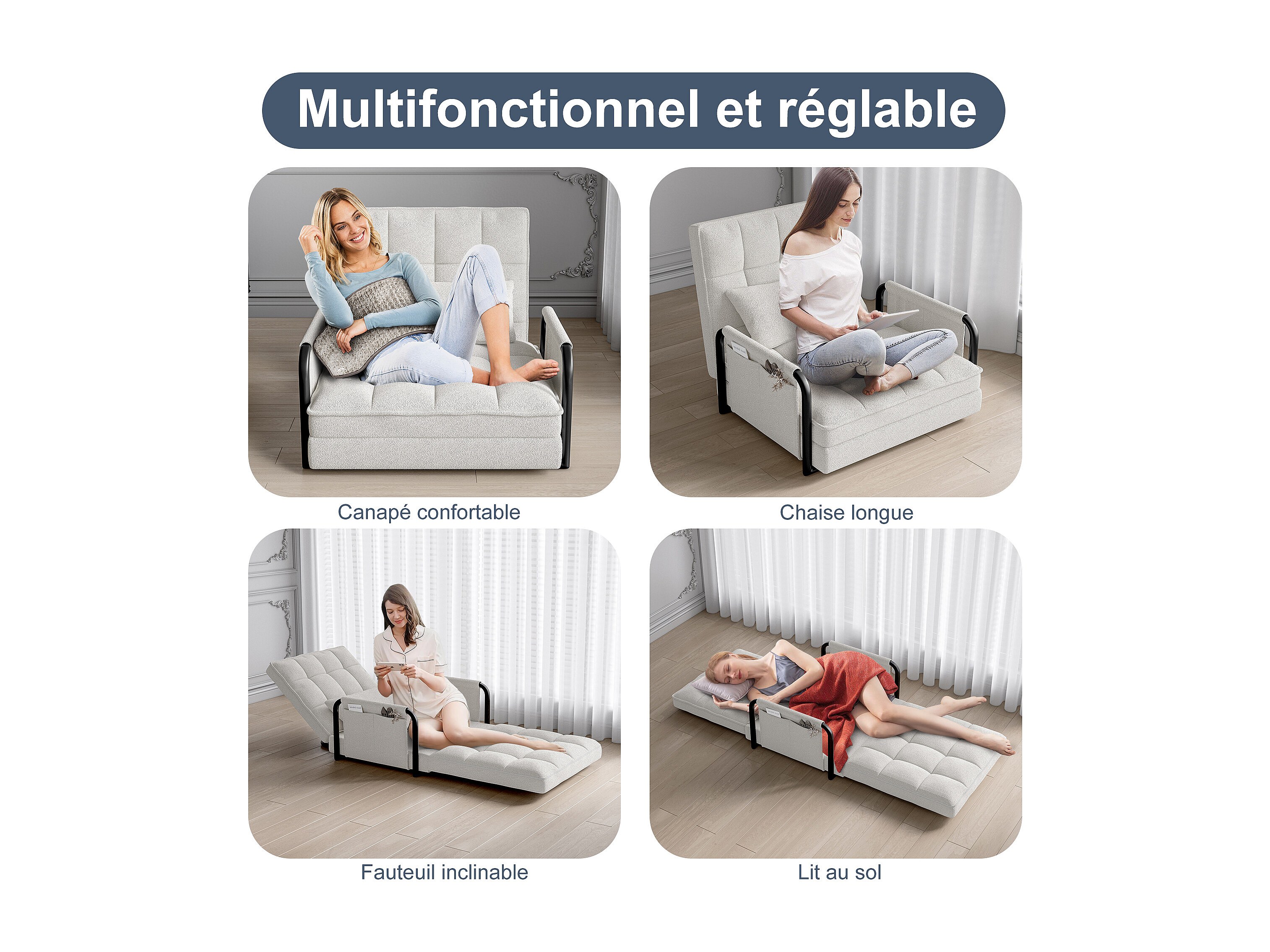 Canapé Lit Simple Convertible, Canapé-lit, Fauteuil et Dossier Réglable À 5 Positions, Canape Lit avec Dossier réglable, Beige