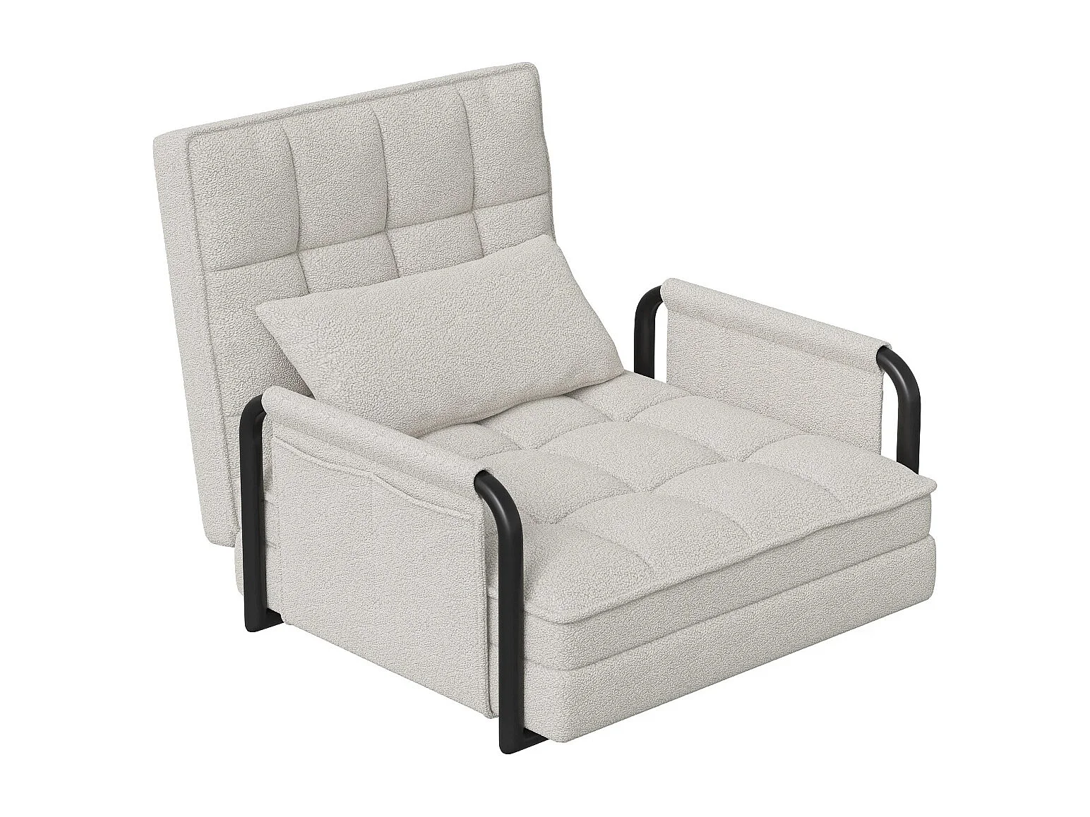 Canapé-lit simple multifonctionnel – avec fonction lit, chaise longue et fauteuil, canapé-lit réglable en cinq positions, poches latérales - velours teddy blanc