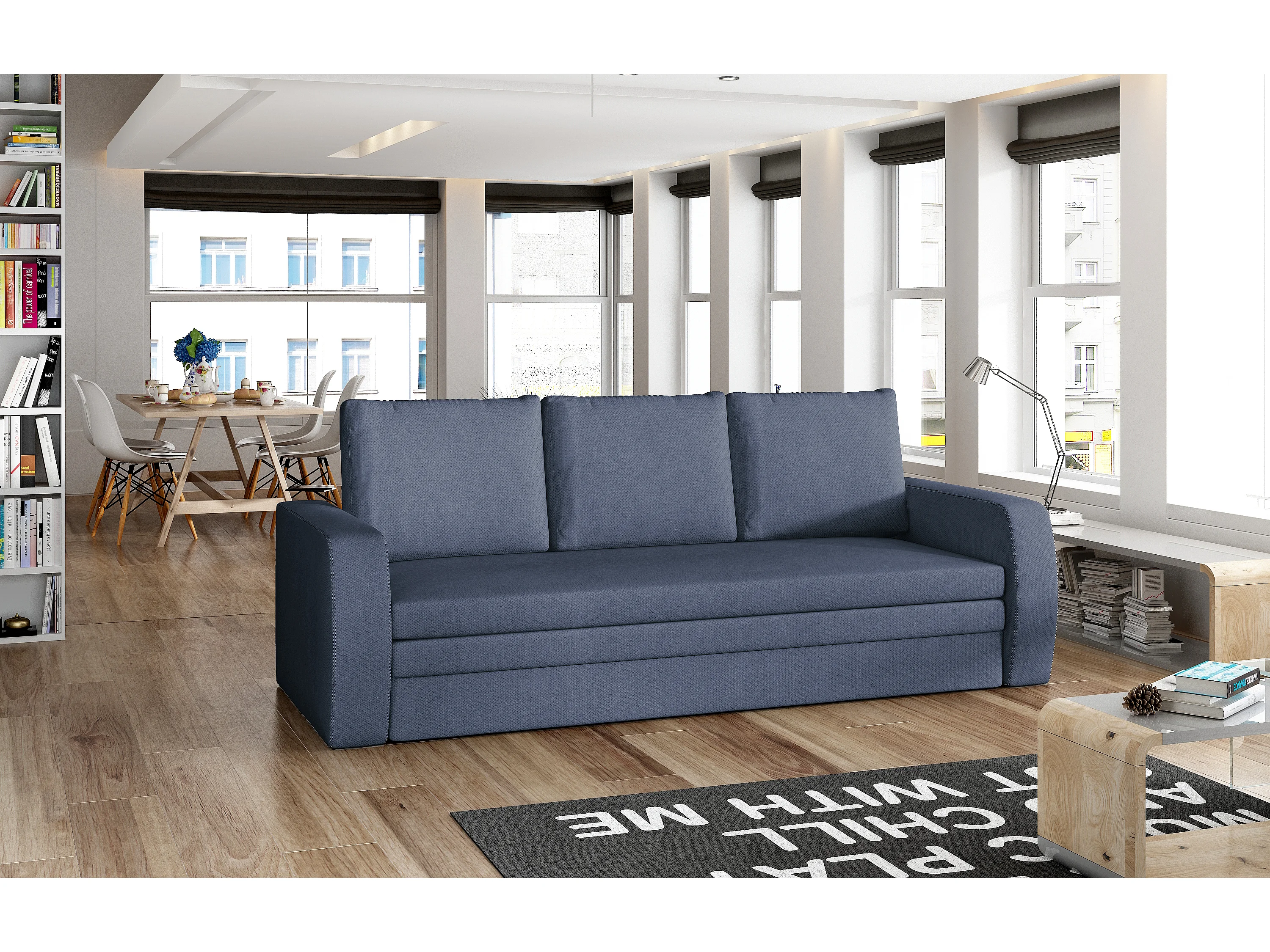 Canapé lit tissu bleu turquin avec coffre de rangement Liverna 220cm