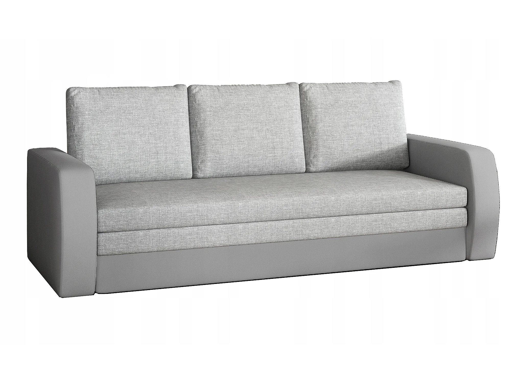 Canapé lit tissu et simili cuir gris avec coffre de rangement Liverna 220cm