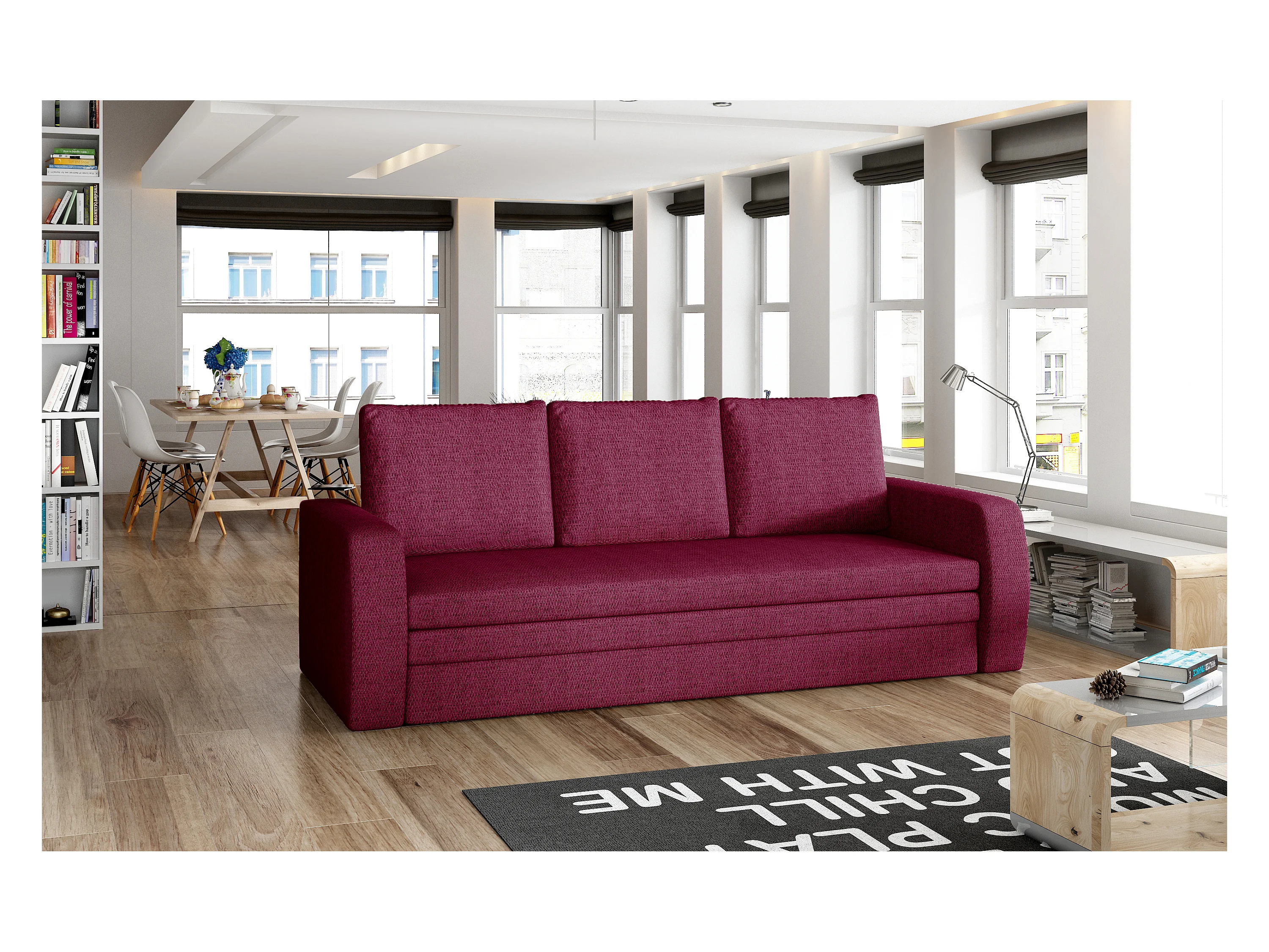 Canapé lit tissu franboise avec coffre de rangement Liverna 220cm