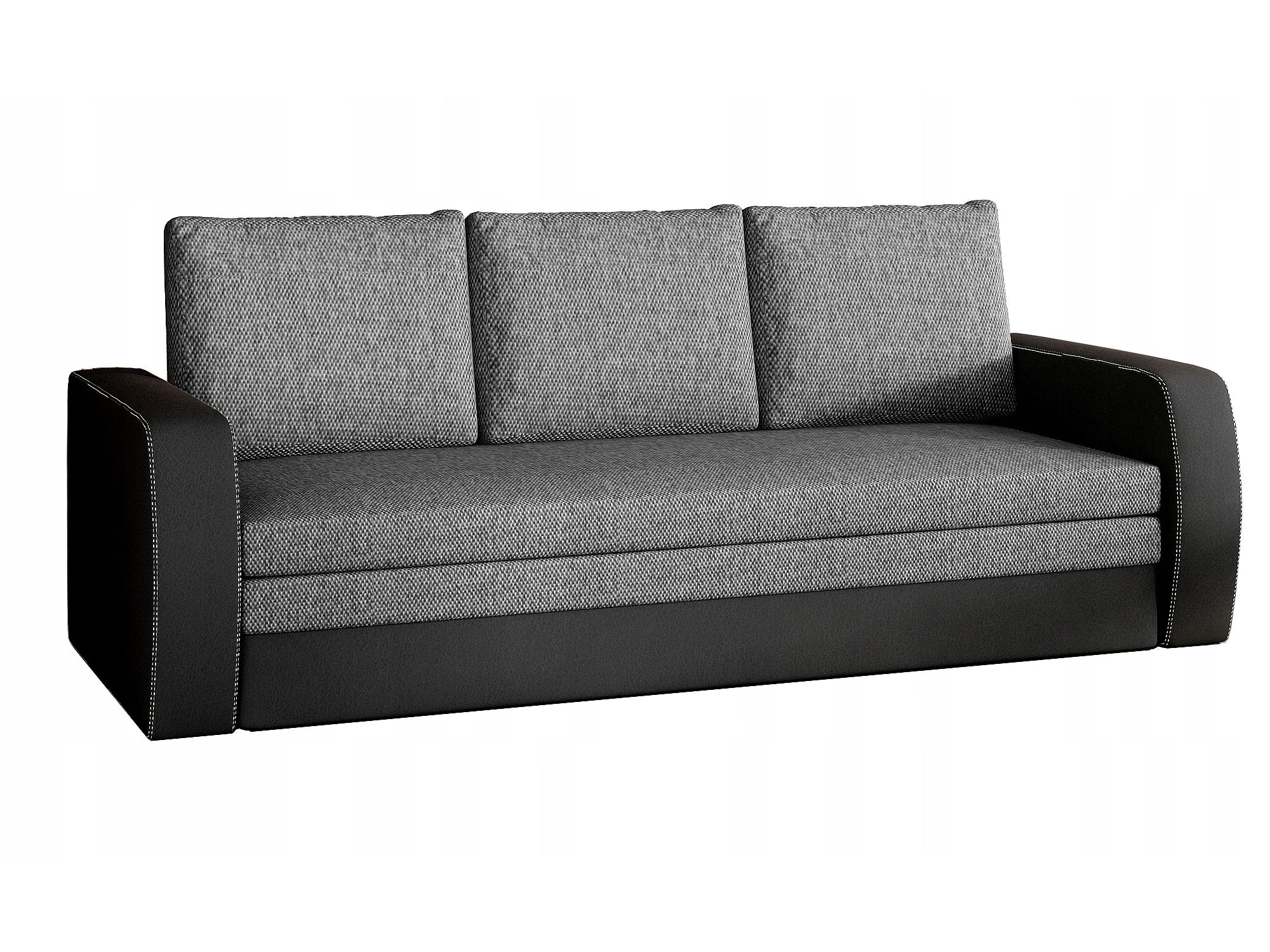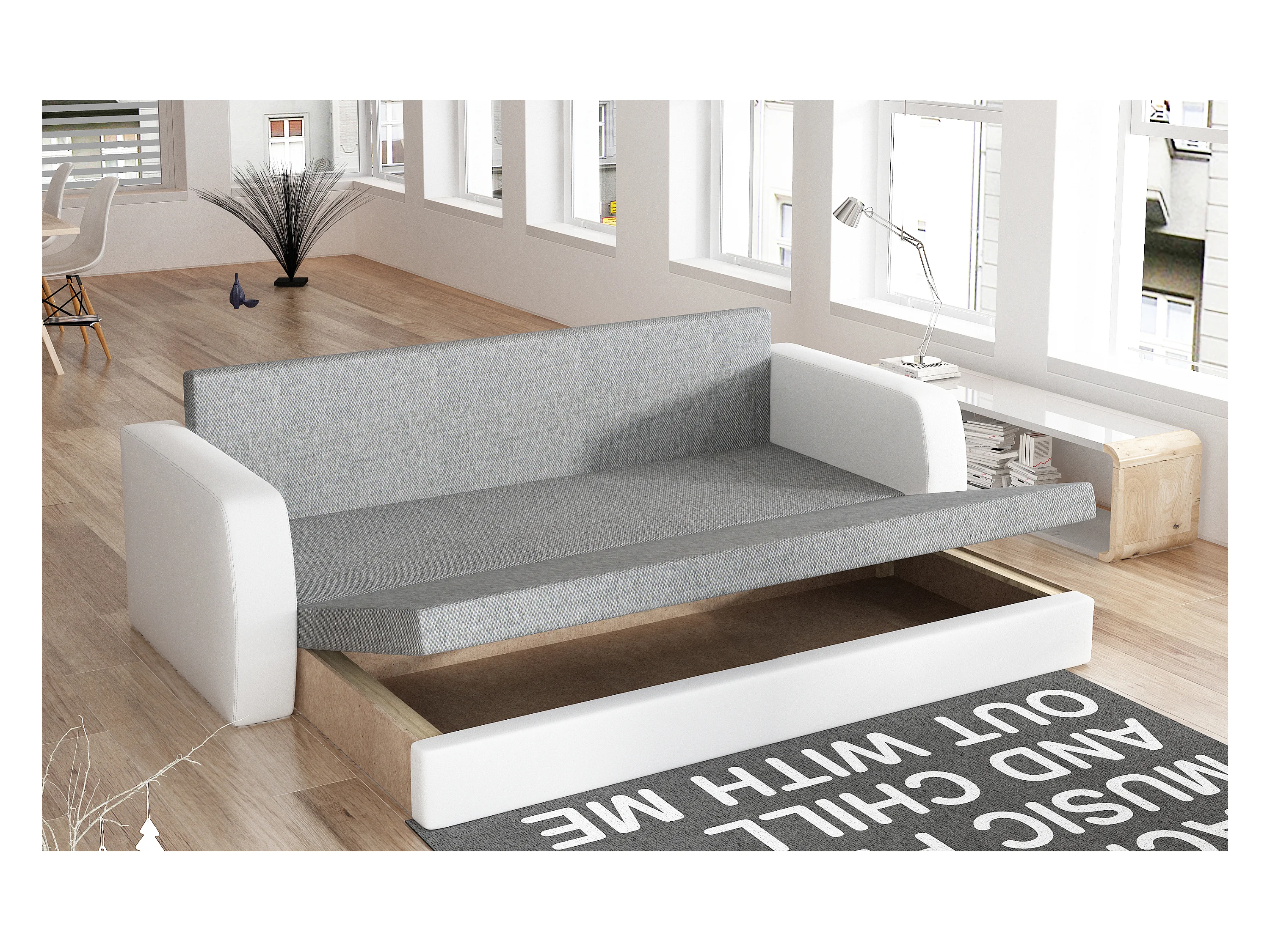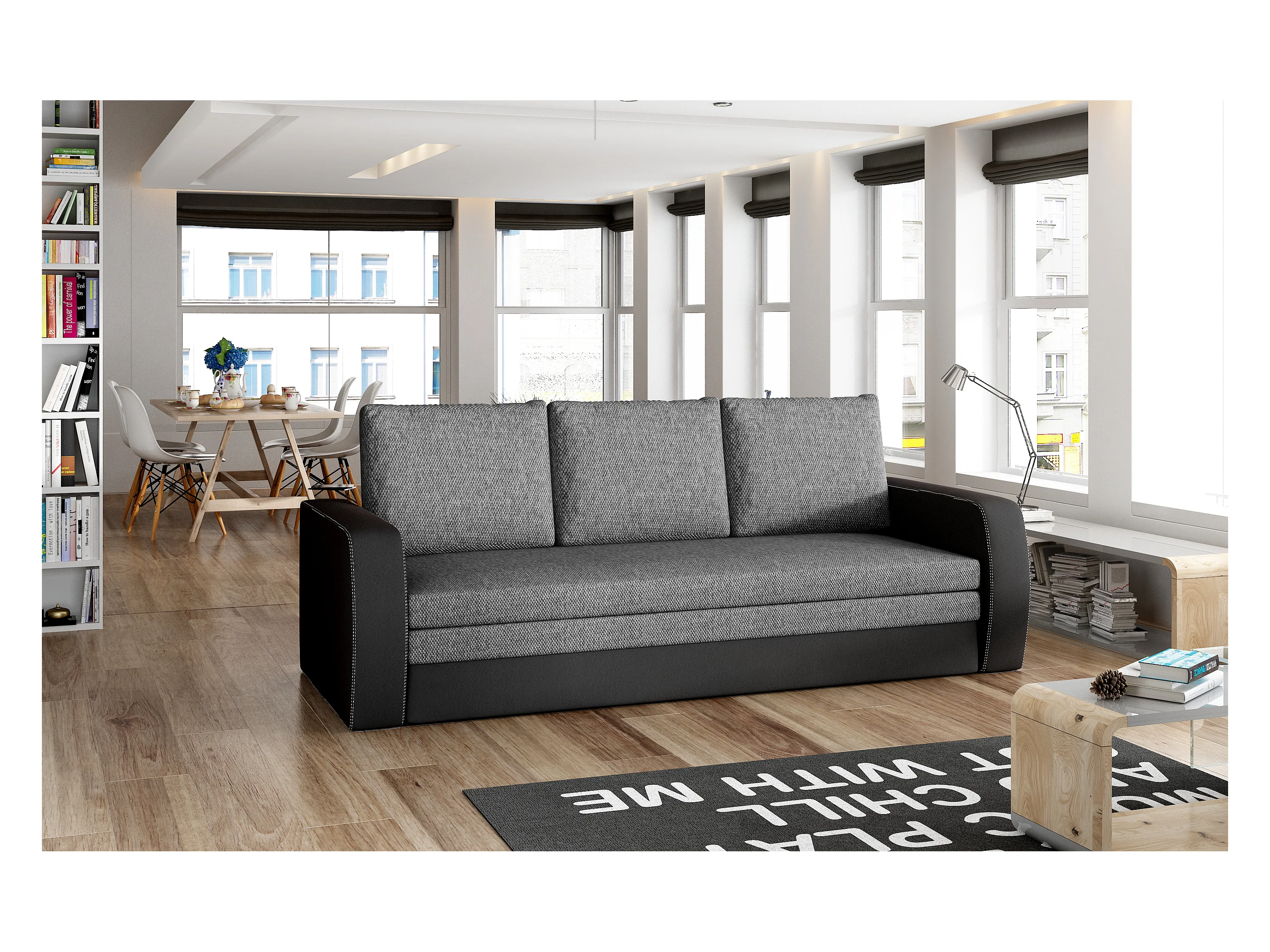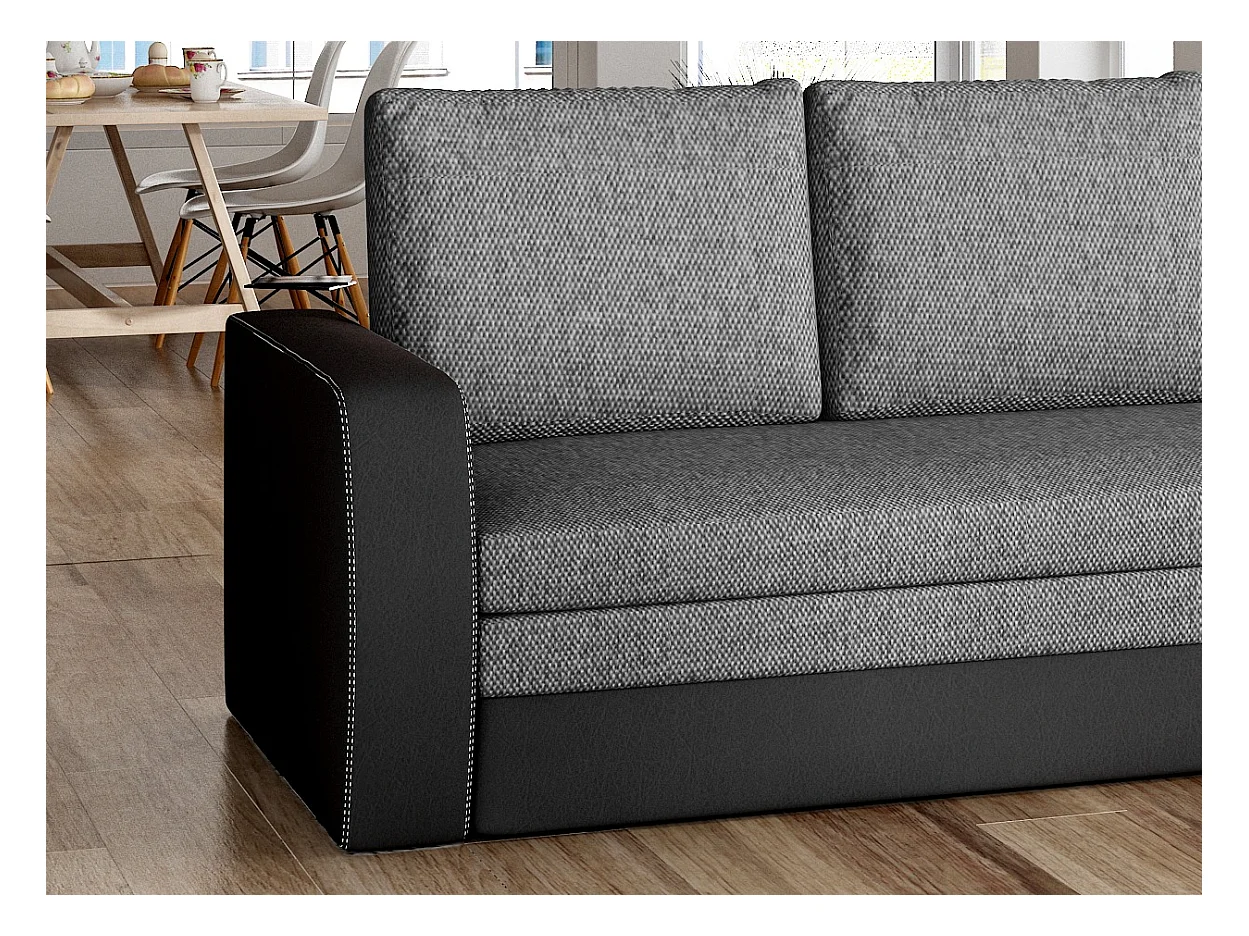 Canapé lit tissu gris et simili cuir noir avec coffre de rangement Liverna 220cm
