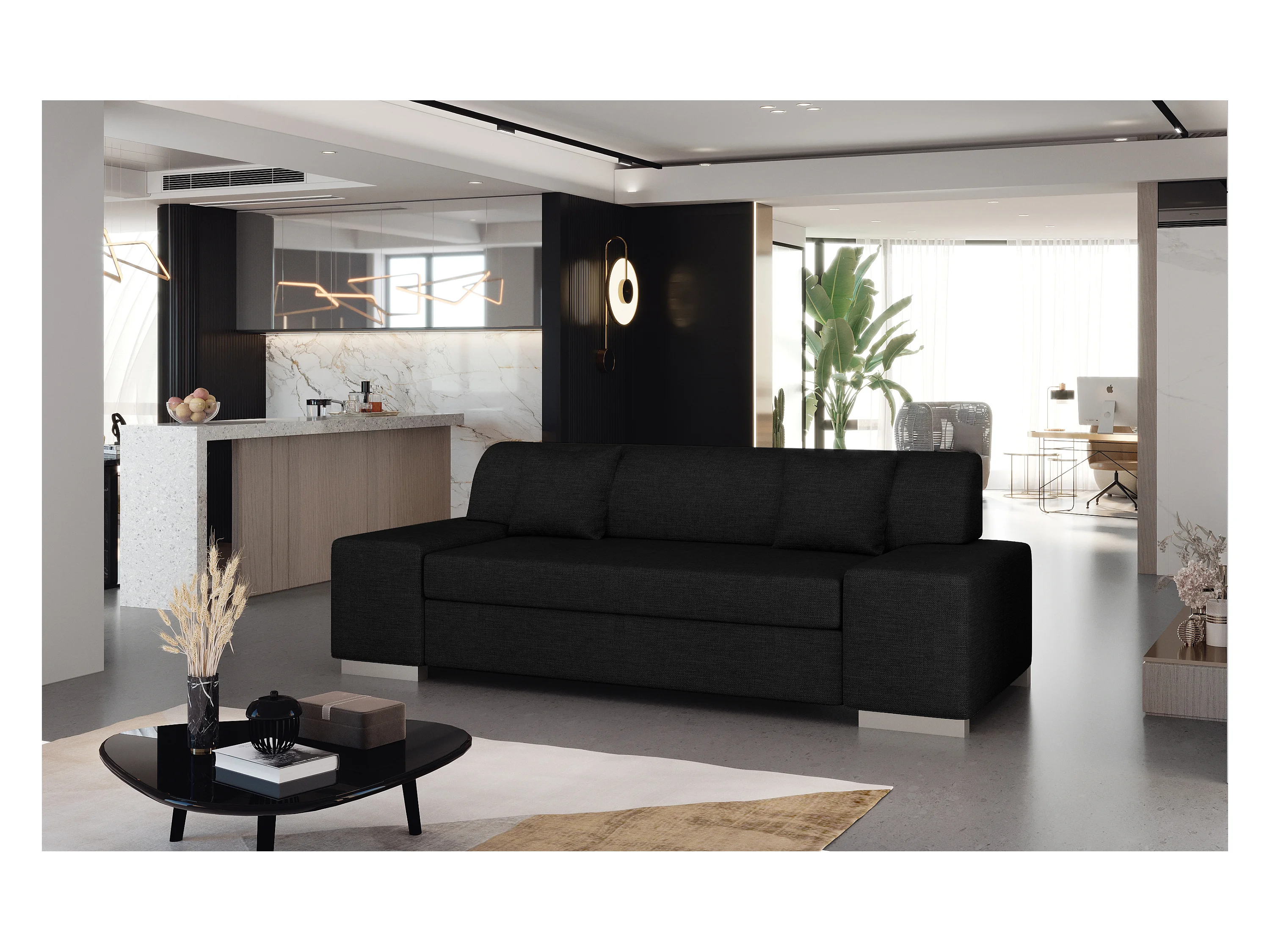 Canapé minimaliste 3-4 places tissu noir Plazo 210cm