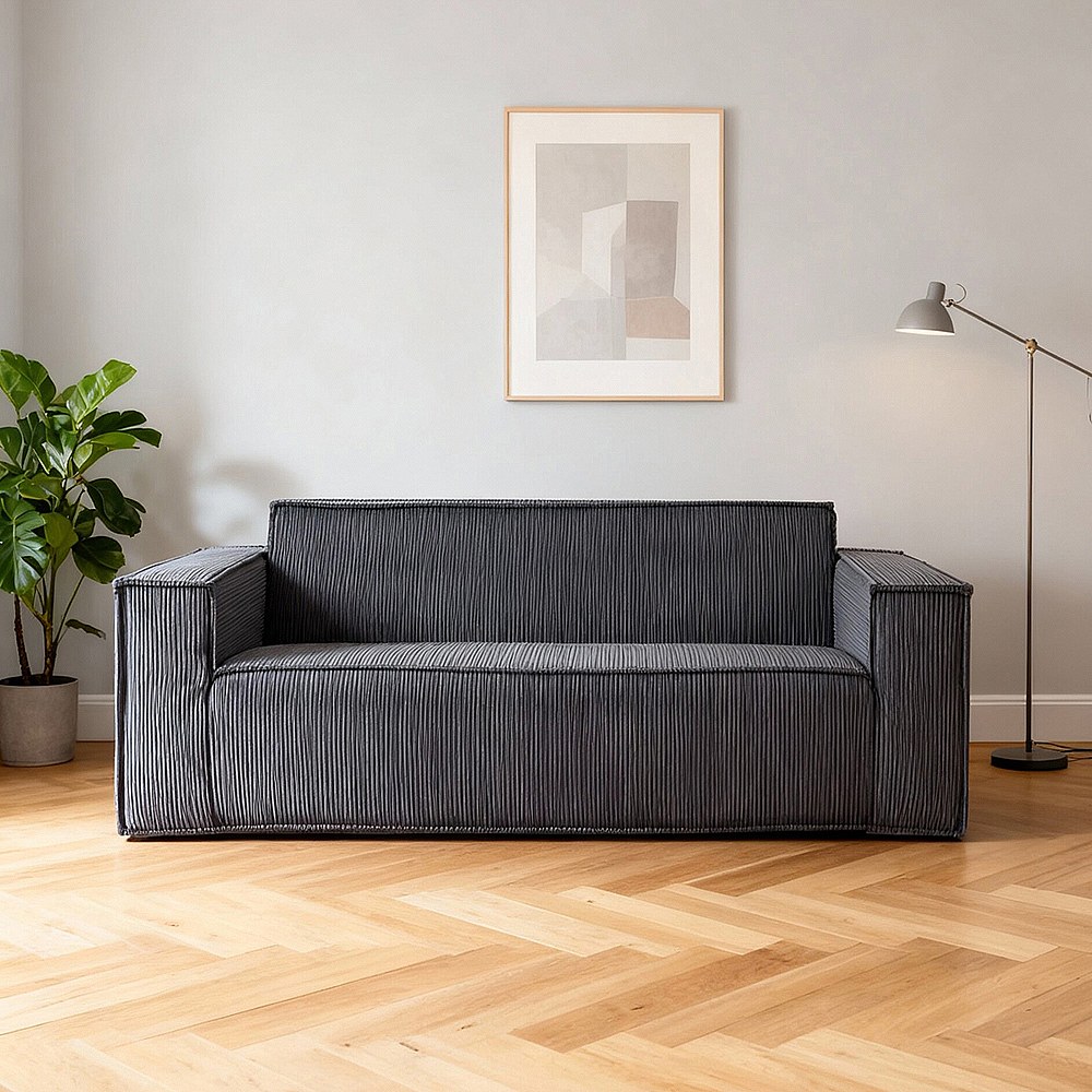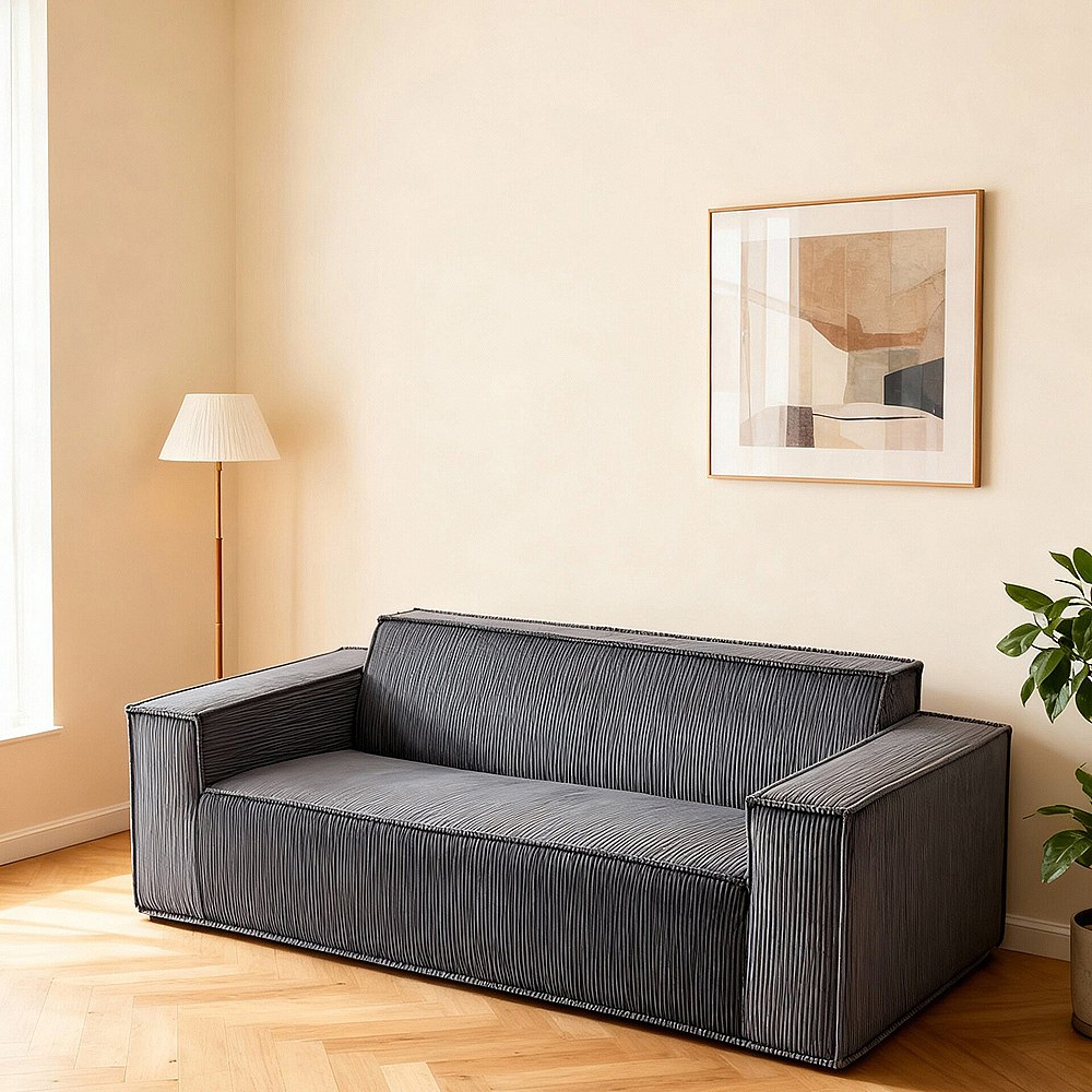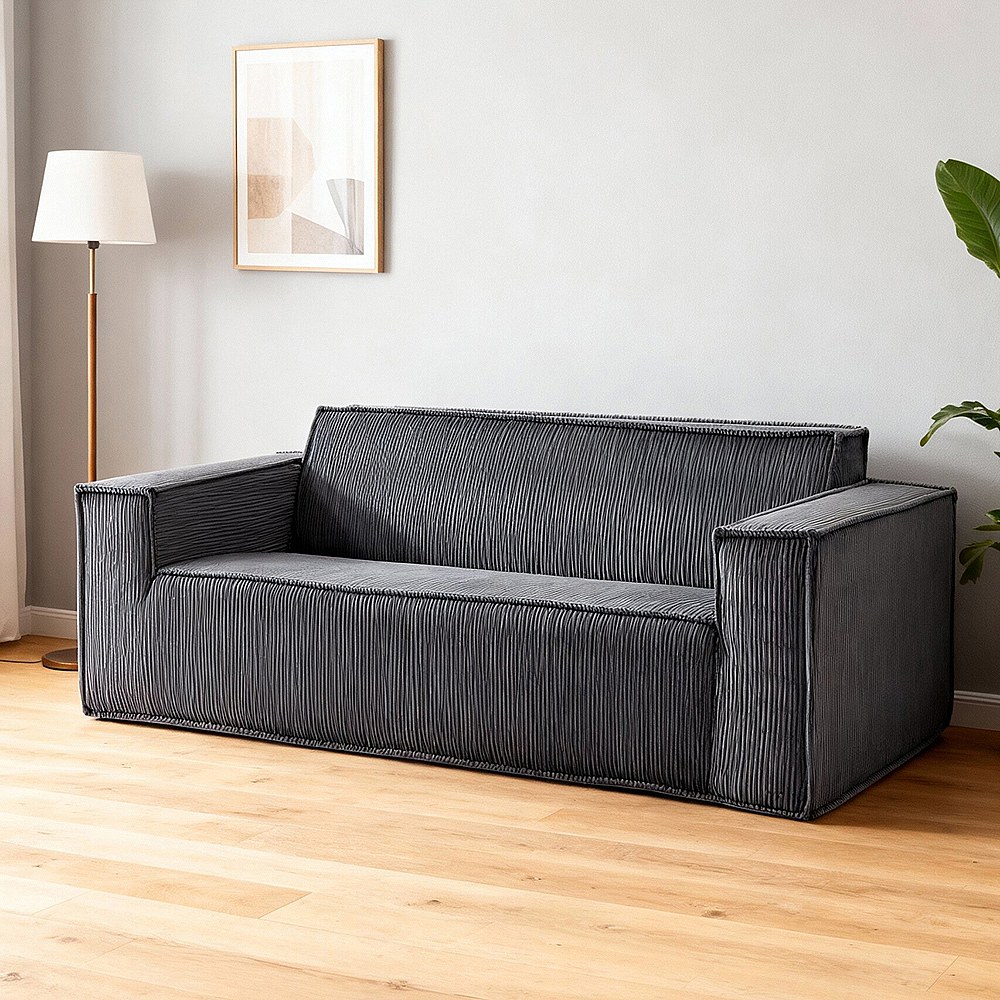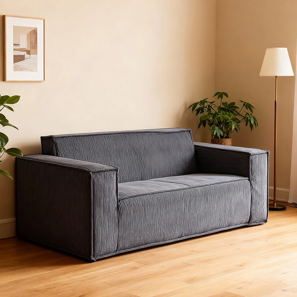Canapé moderne 2 places velours côtelé confortable assise profonde pour salon appartement bureau maison sans pieds facile à transporter gris