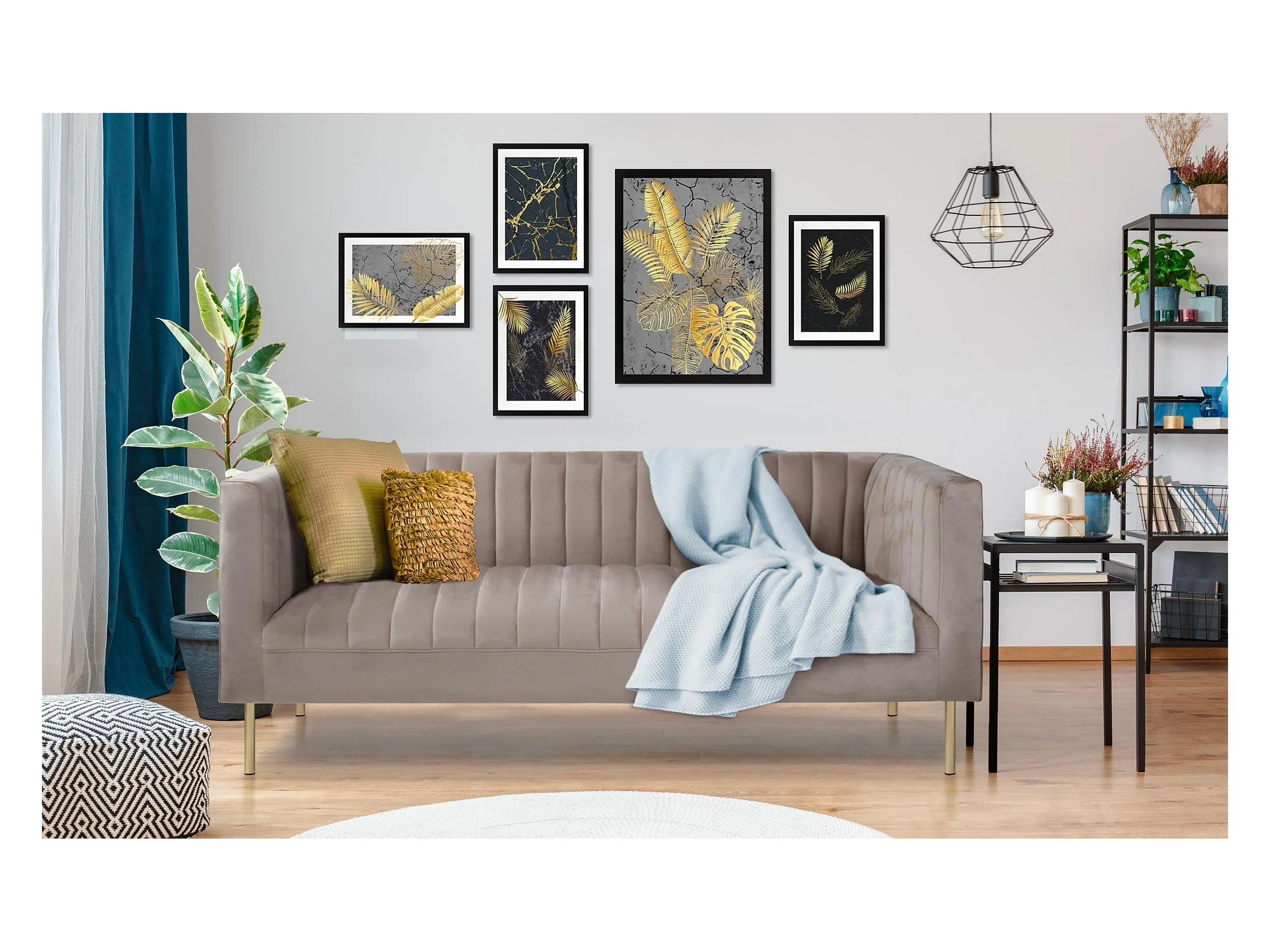 Canapé moderne 3 places à coutures verticales Sacramento Velours Taupe