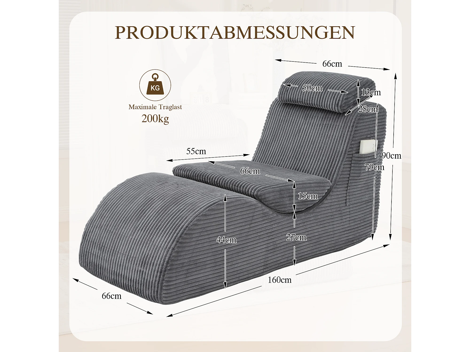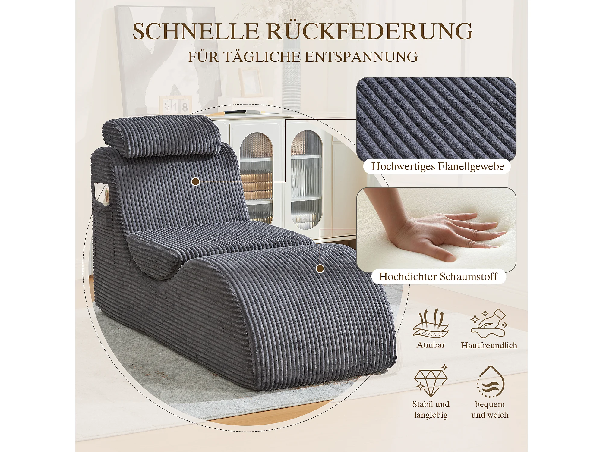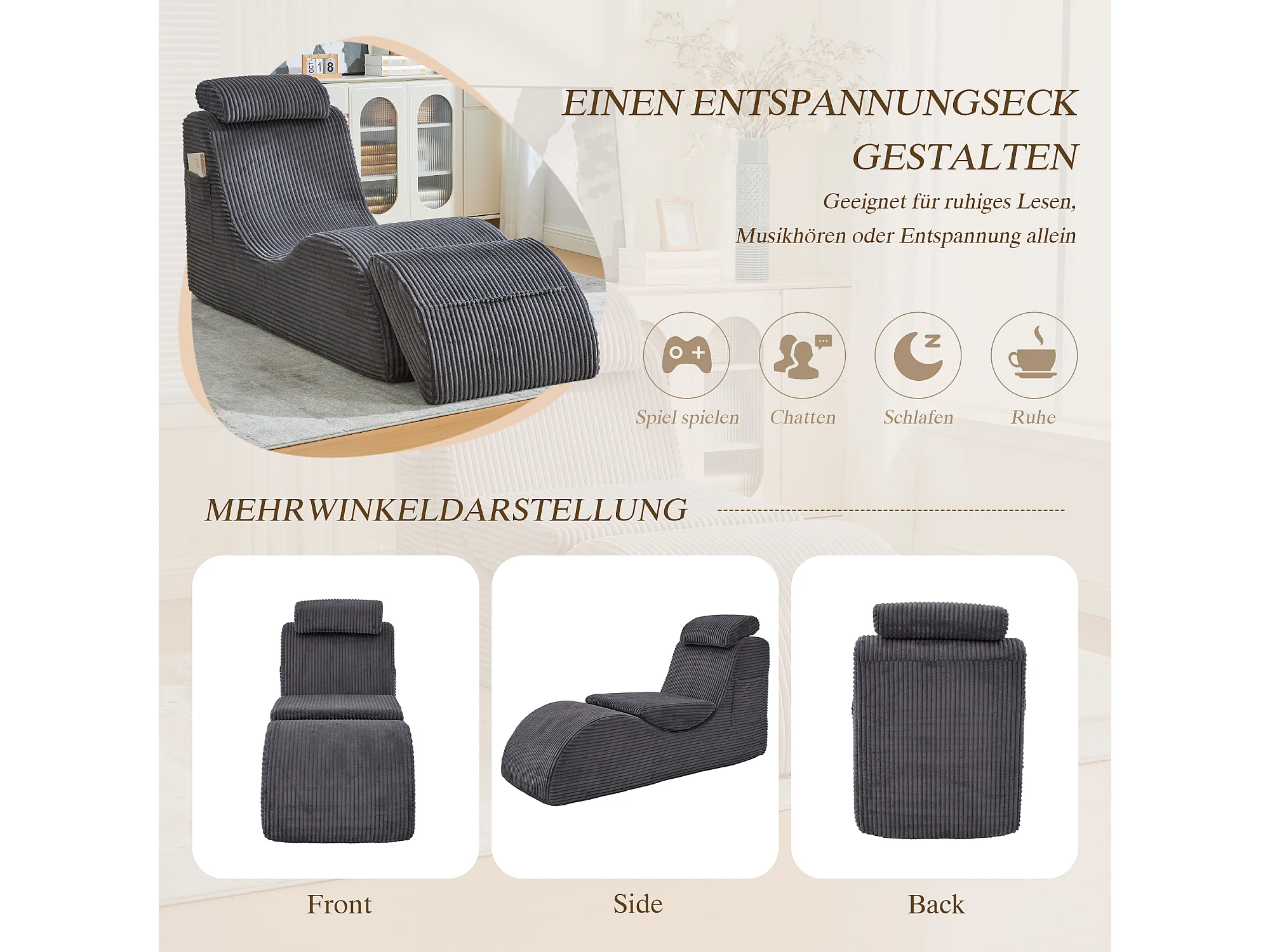 Canapé moderne au design unique et ergonomique - 160 x 66 x 90 cm - avec coussin d'assise amovible - velours - gris foncé