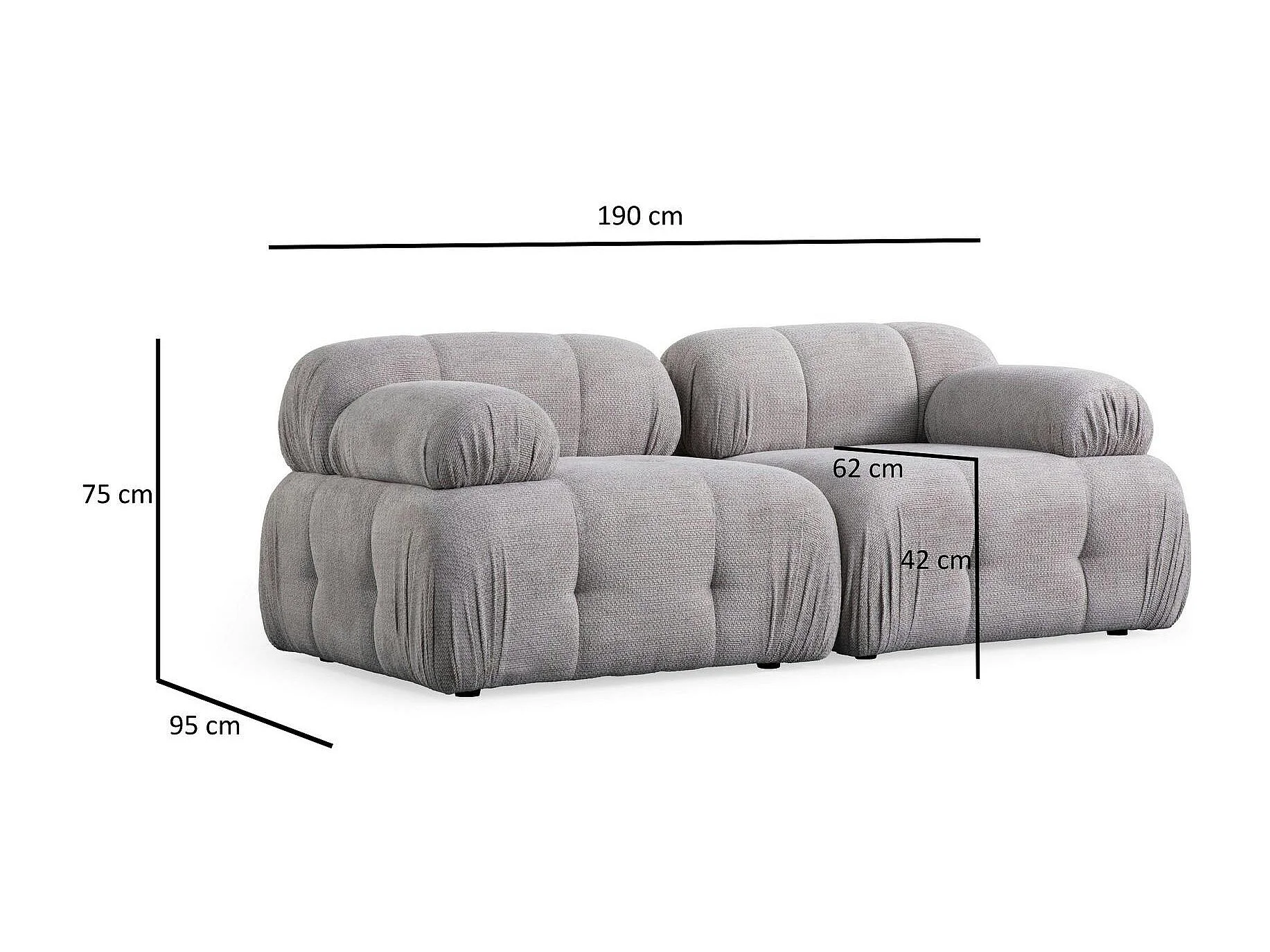 Canapé modulable 2 places gris clair, assise profonde 190 cm ICA