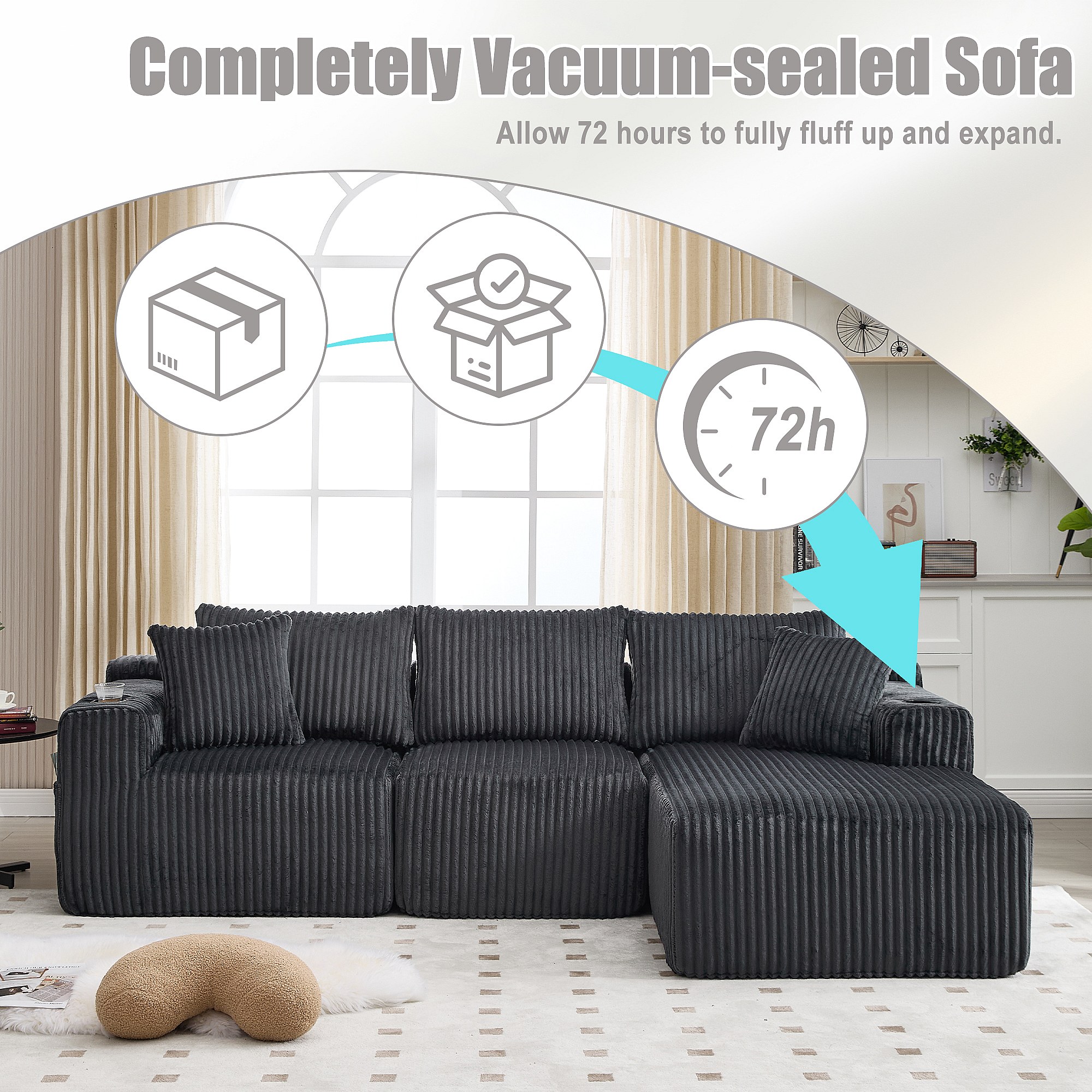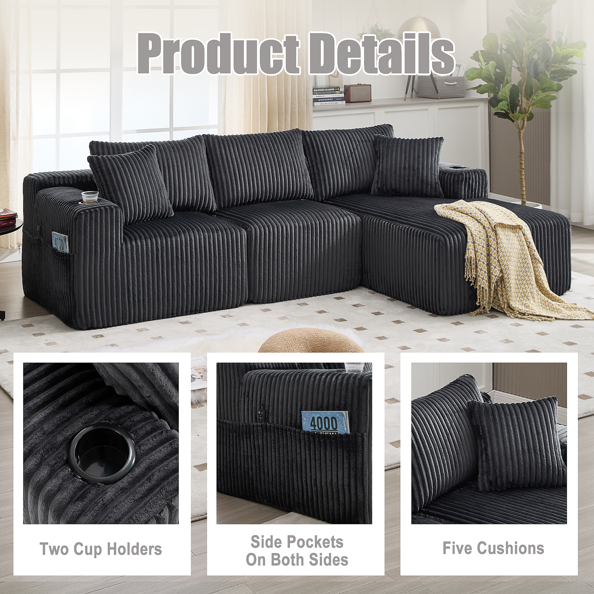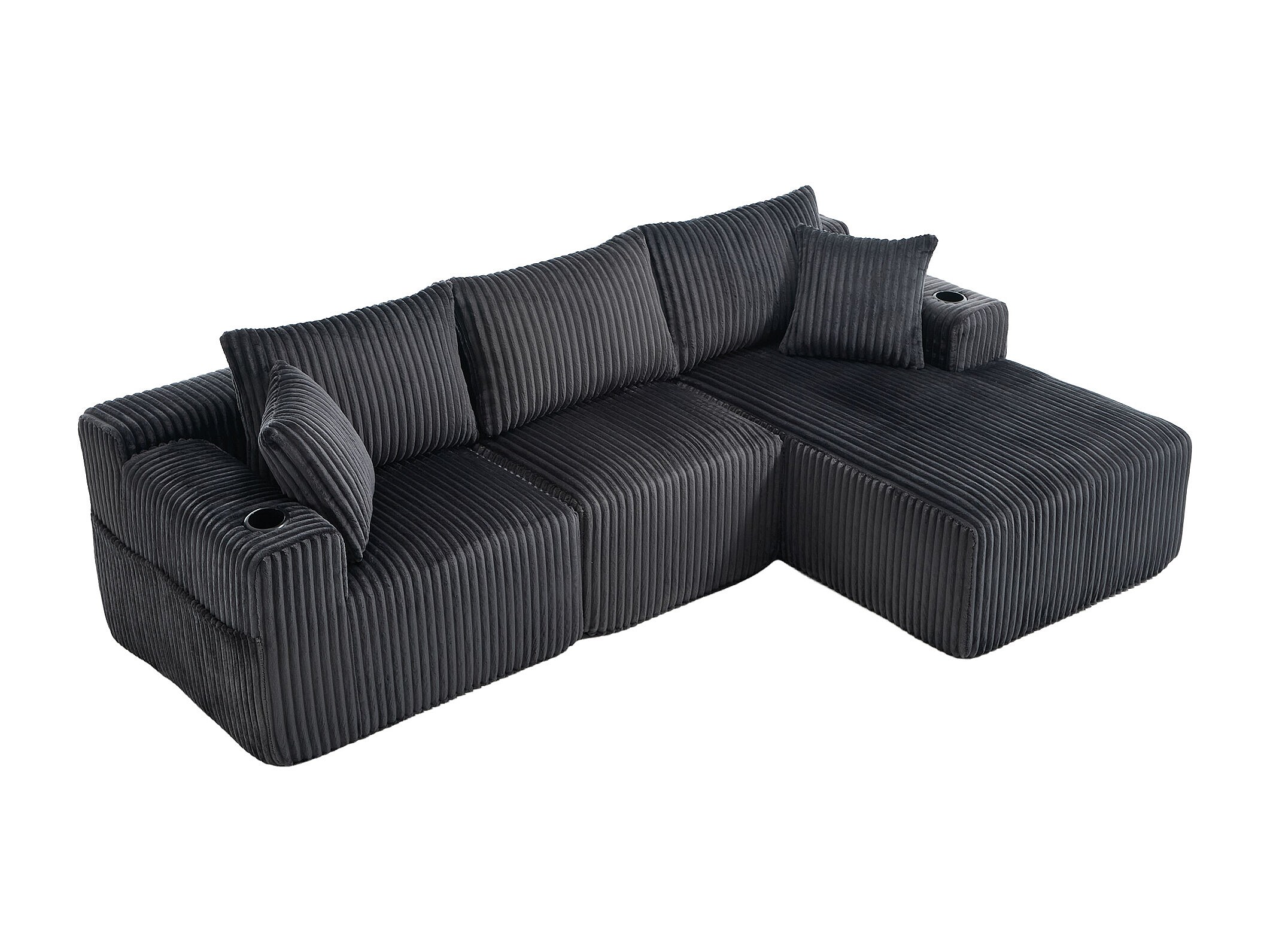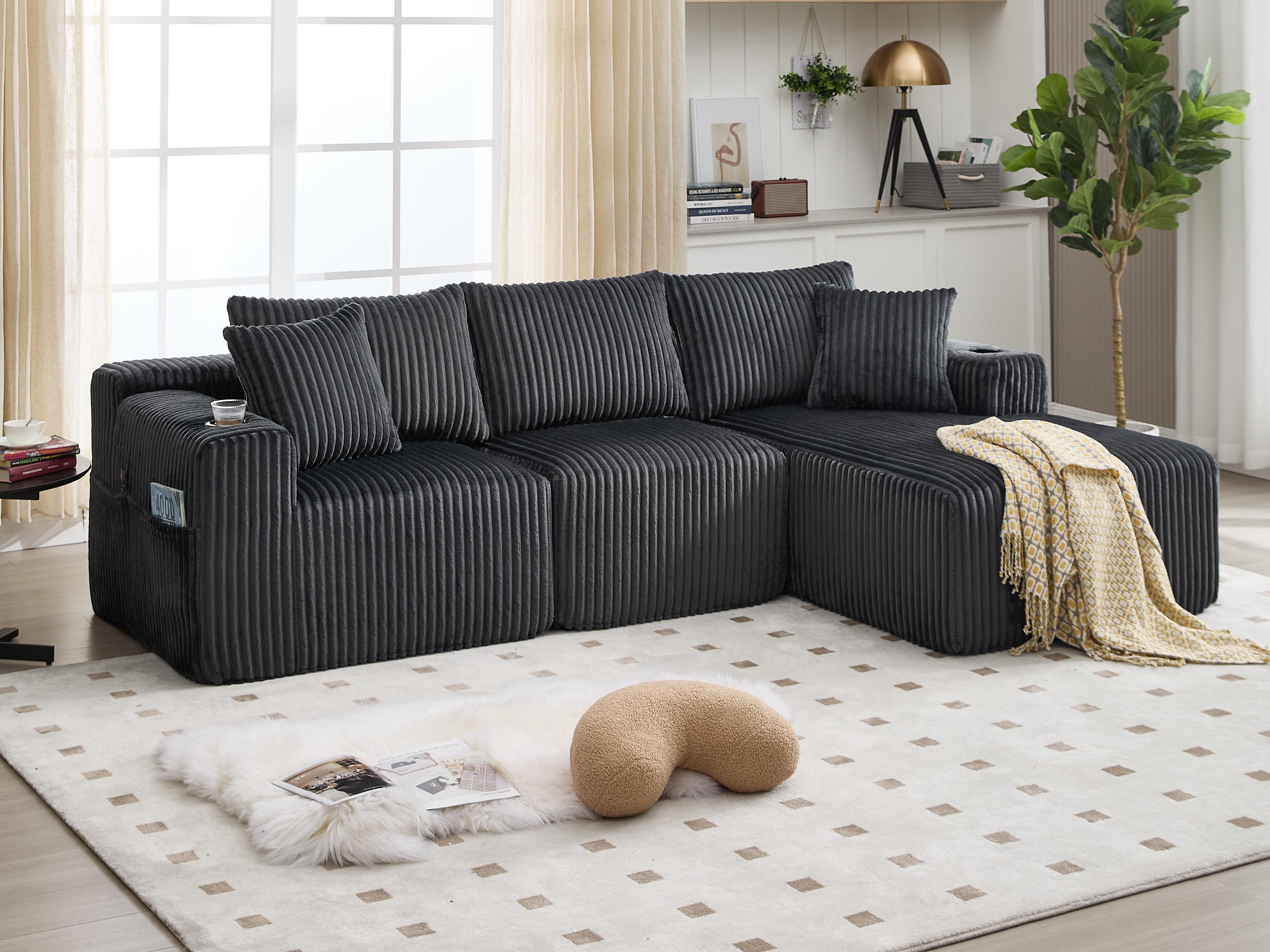Canapé modulable 3 places - 5 coussins inclus - Porte-gobelets et poches latérales - Convertible en canapé d'angle - Gris - Idéal salon et studio