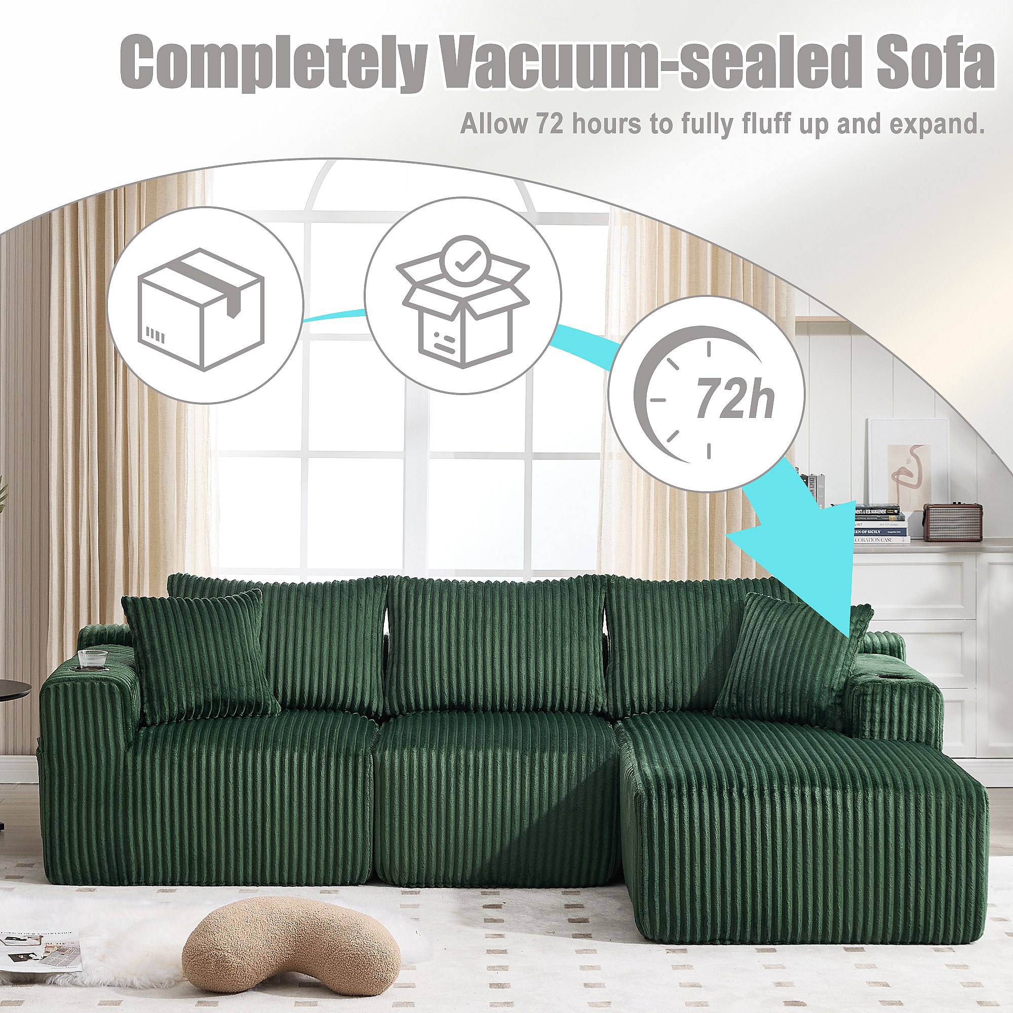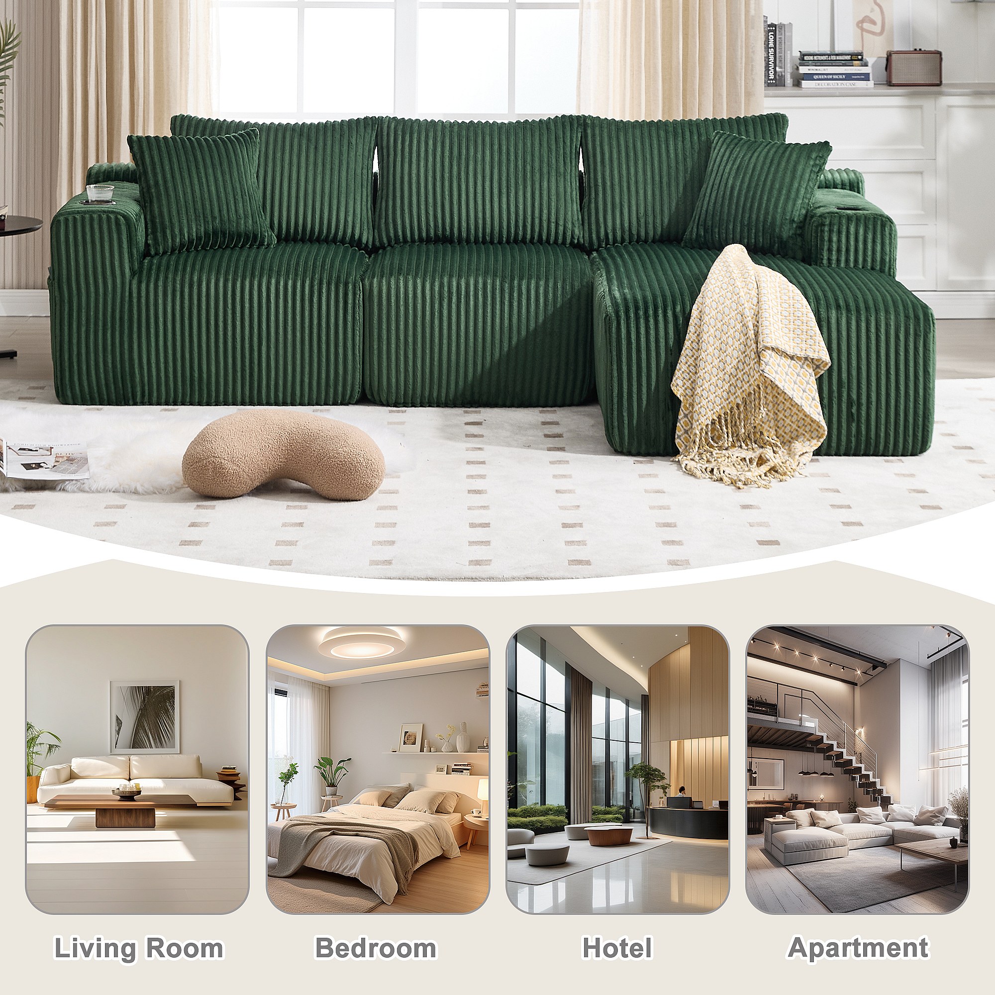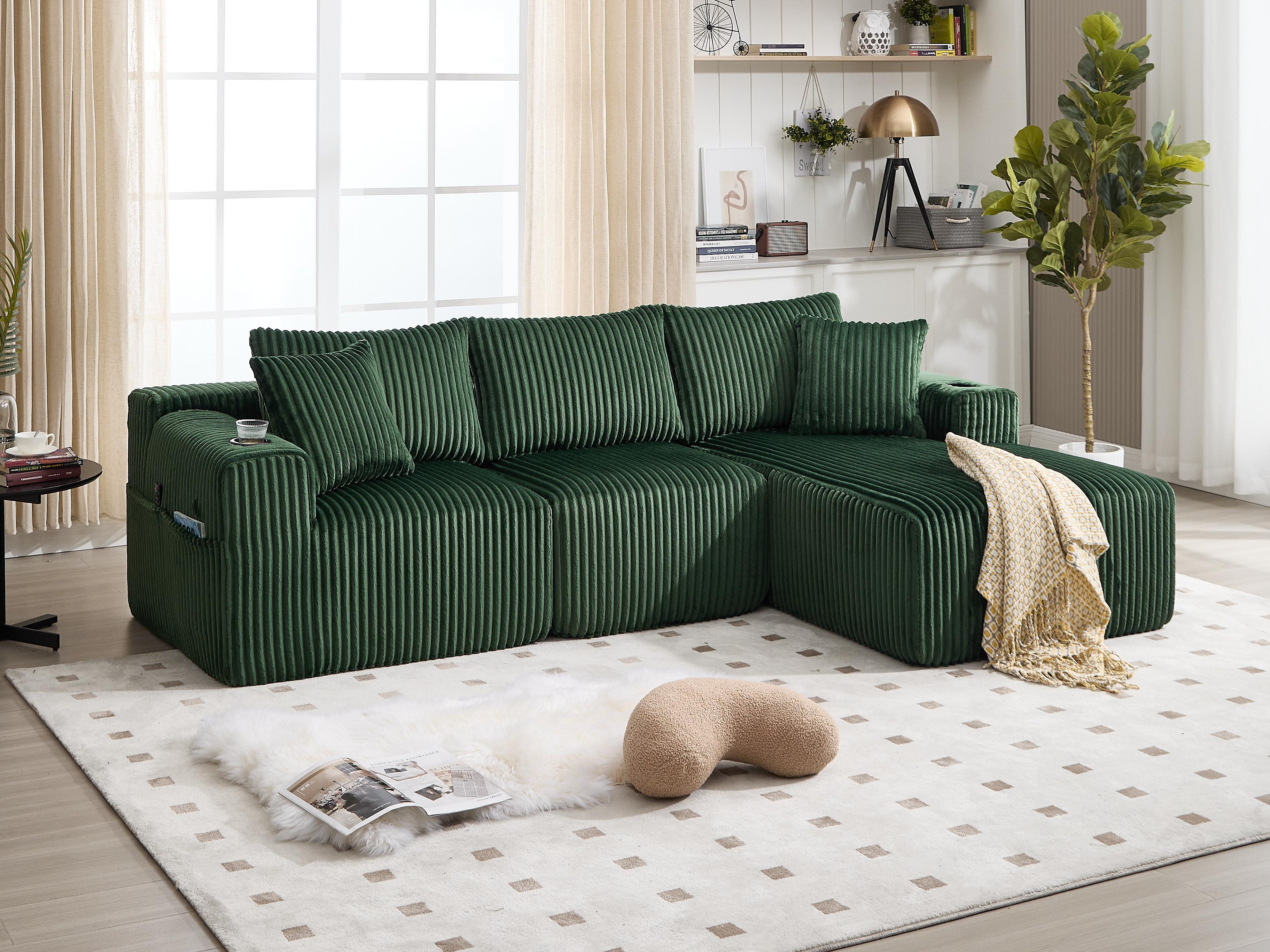 Canapé modulable 3 places - 5 coussins inclus - Porte-gobelets et poches latérales - Convertible en canapé d'angle - Vert - Idéal salon et studio