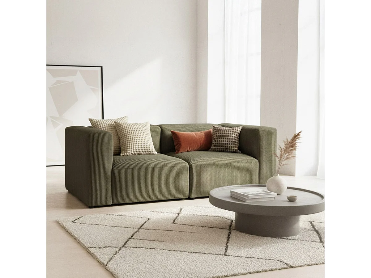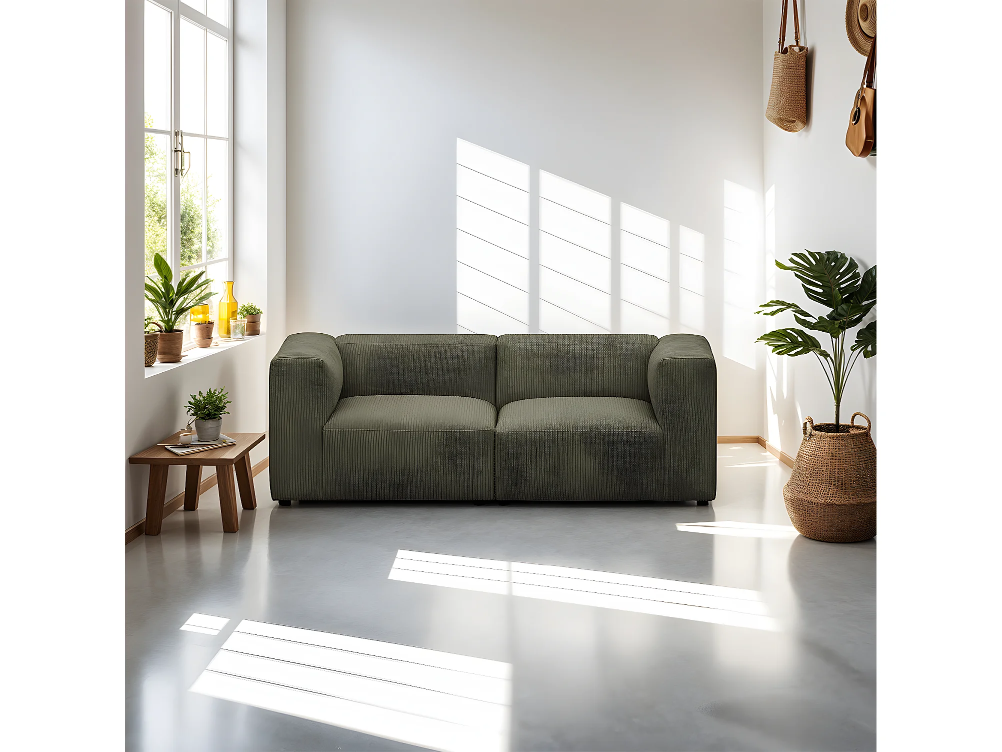 Canapé modulable 3 places en velours côtelé vert kaki - Modulo