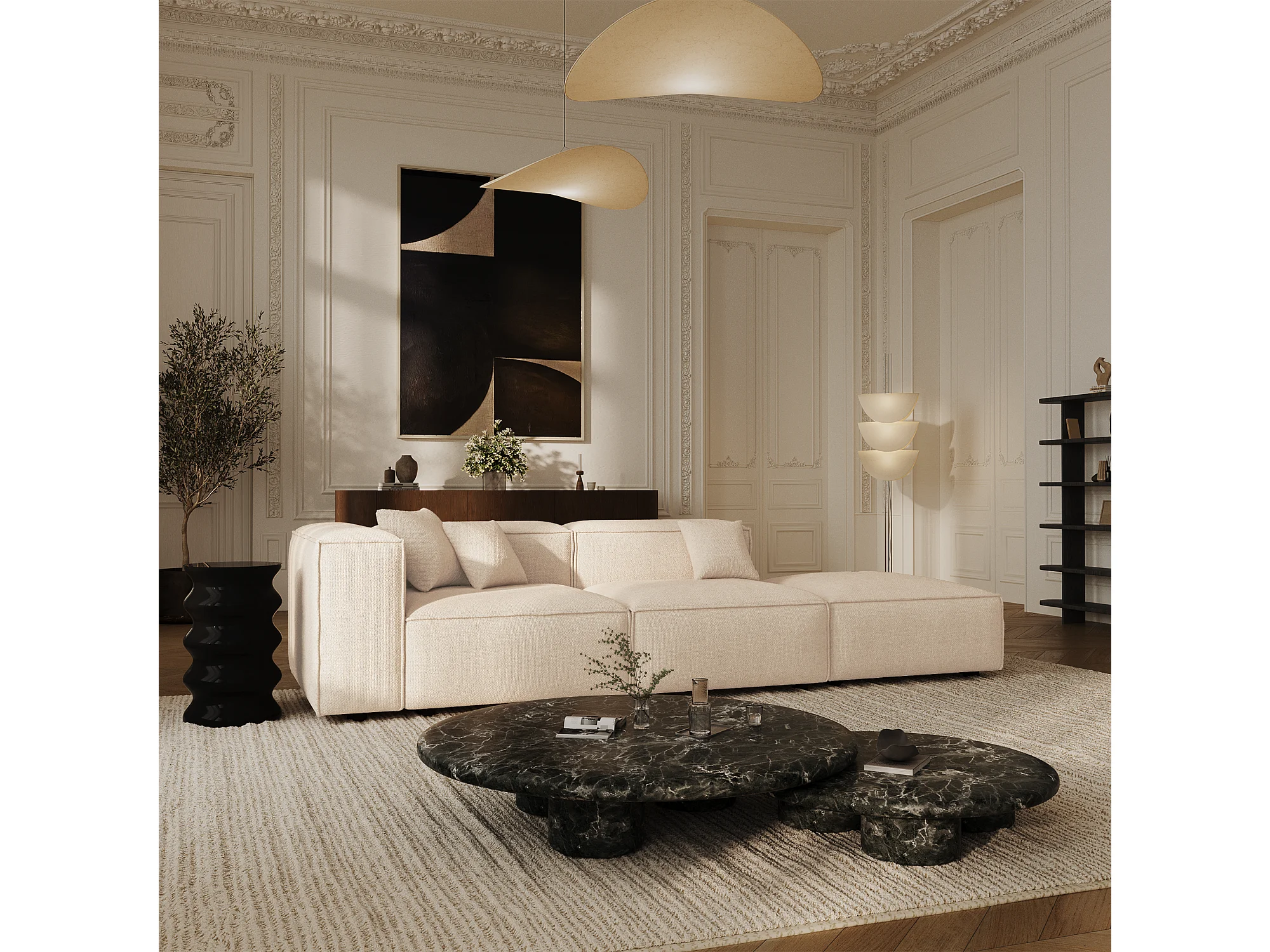 Canapé modulable 4-5 places gauche velours chenillé crème CUBI