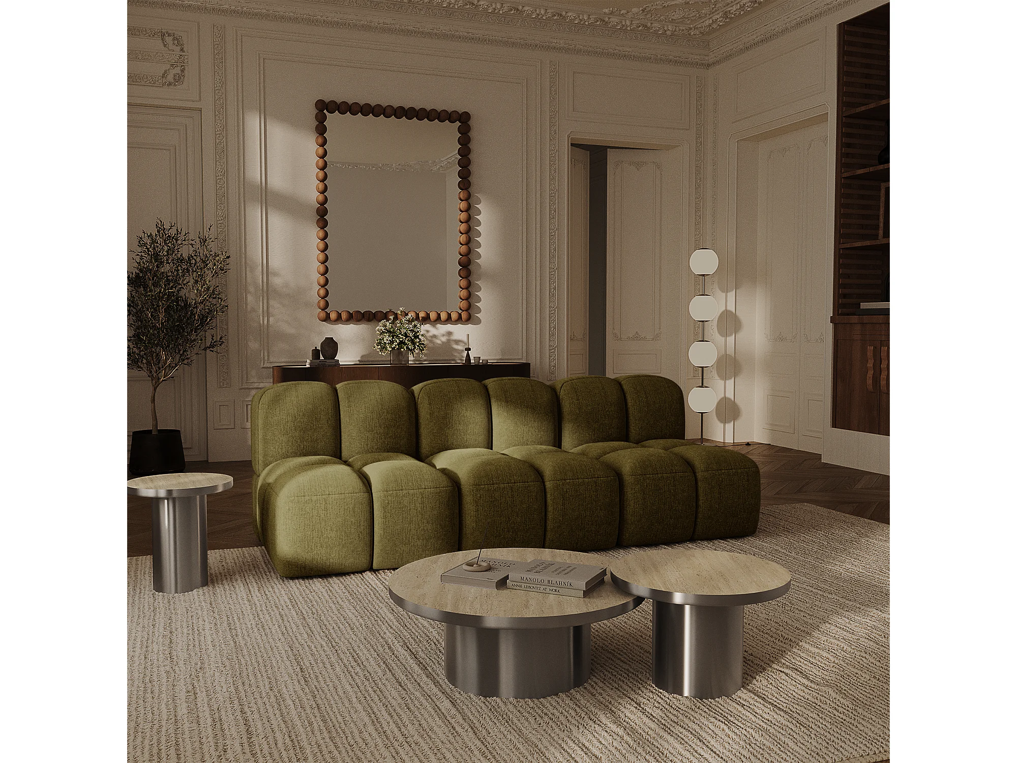 Canapé modulable 4-5 places MOSS en Velours texturé Vert vintage