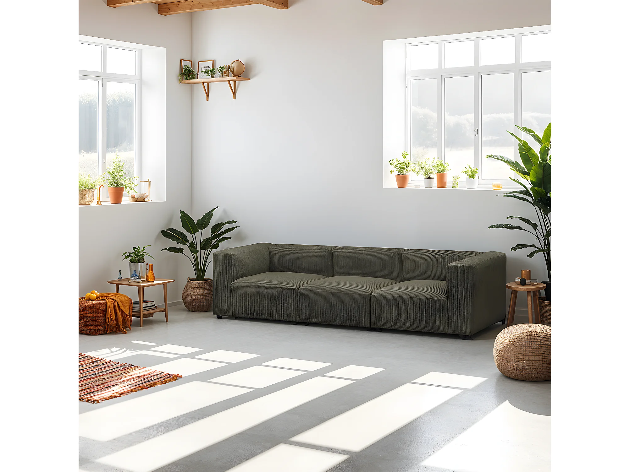 Canapé modulable 4 places en velours côtelé vert kaki - Modulo