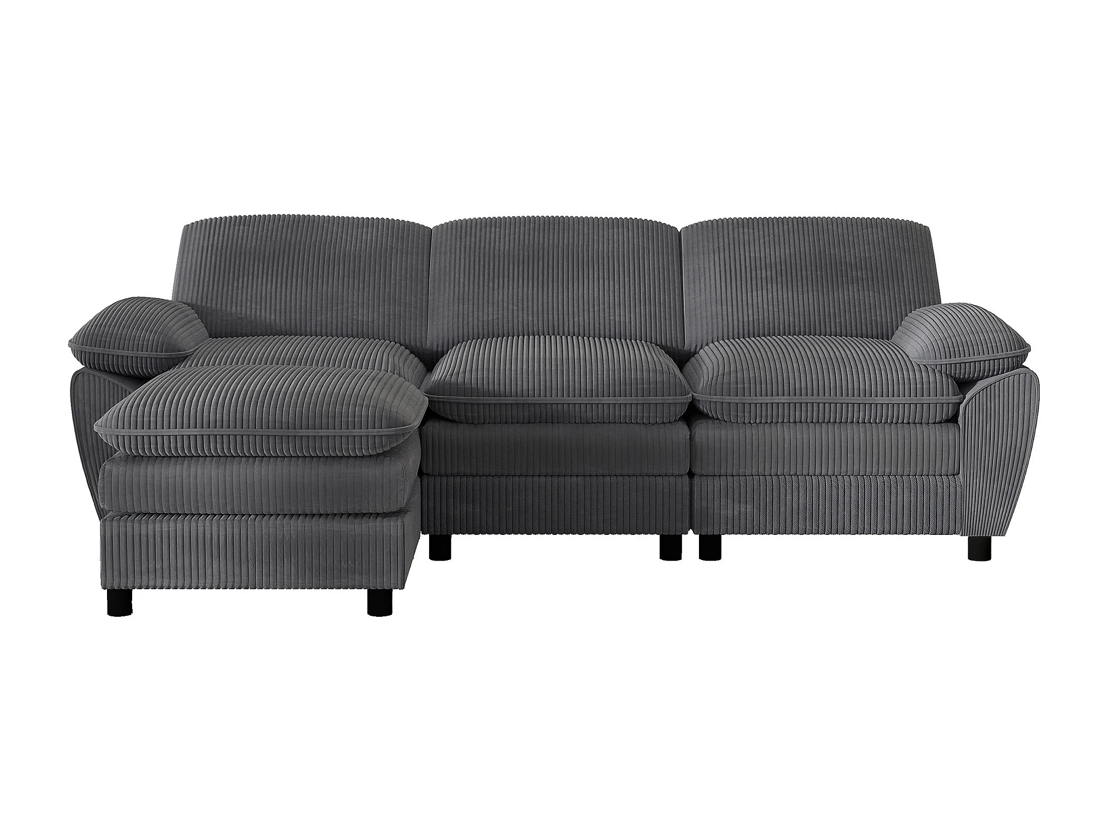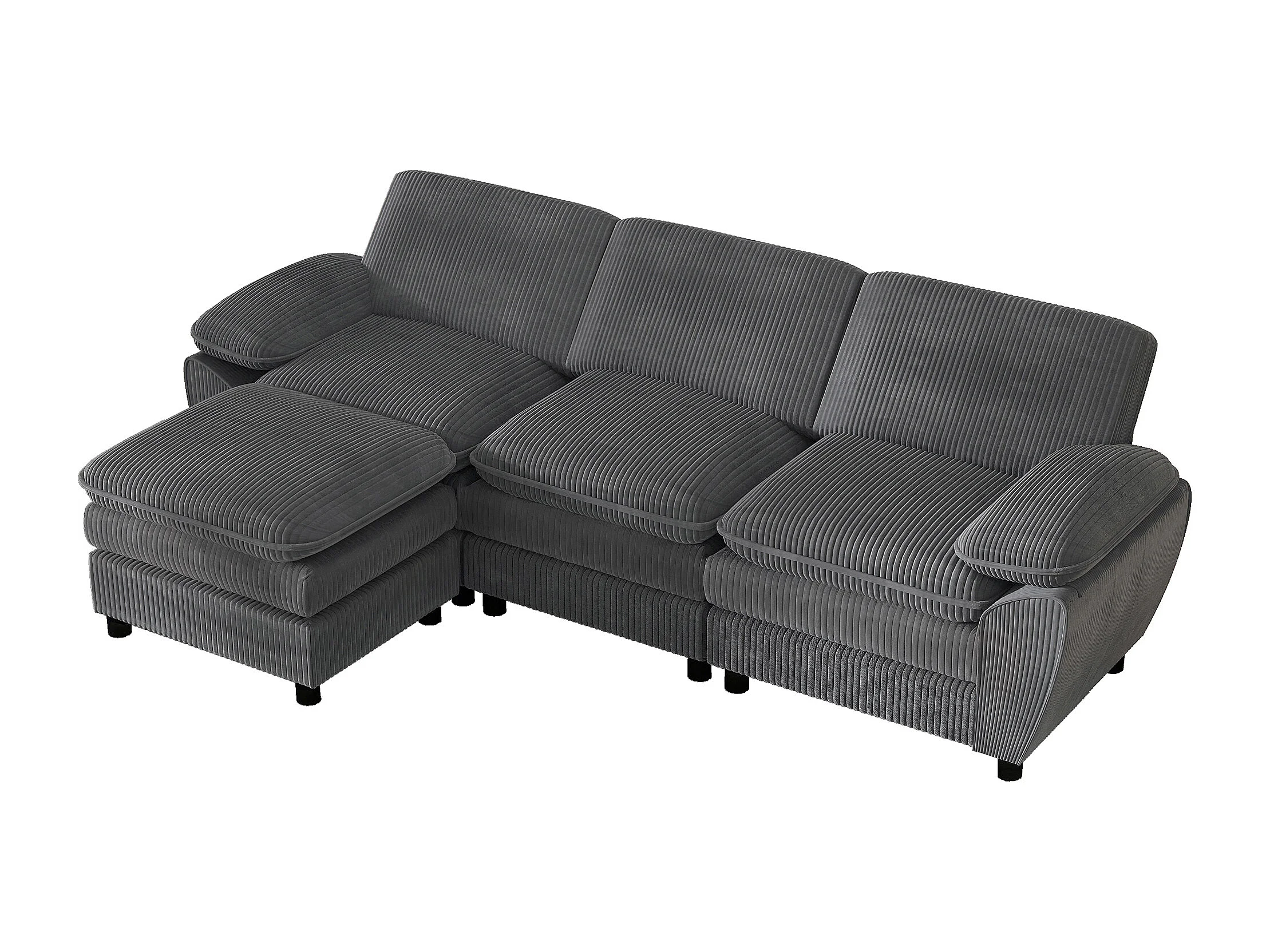Canapé d’angle modulable 258x86.1x62.9 cm, ottoman amovible, 3 places, assise confortable, velours côtelé gris foncé
