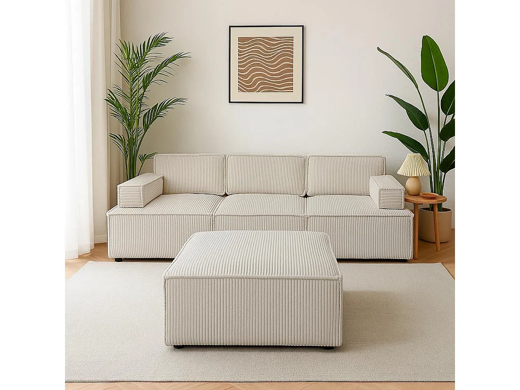 Canapé modulable Benoit Velours côtelé Crème