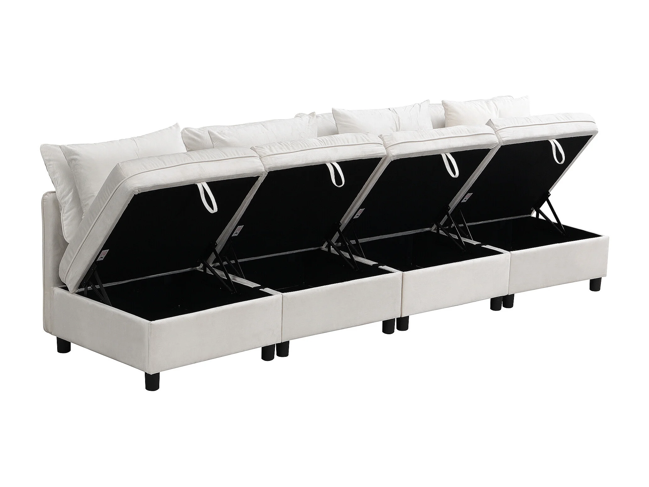 Canapé Modulable Configuration libre Systeme couchage discret Coffres integrés Mousse Chenille Beige