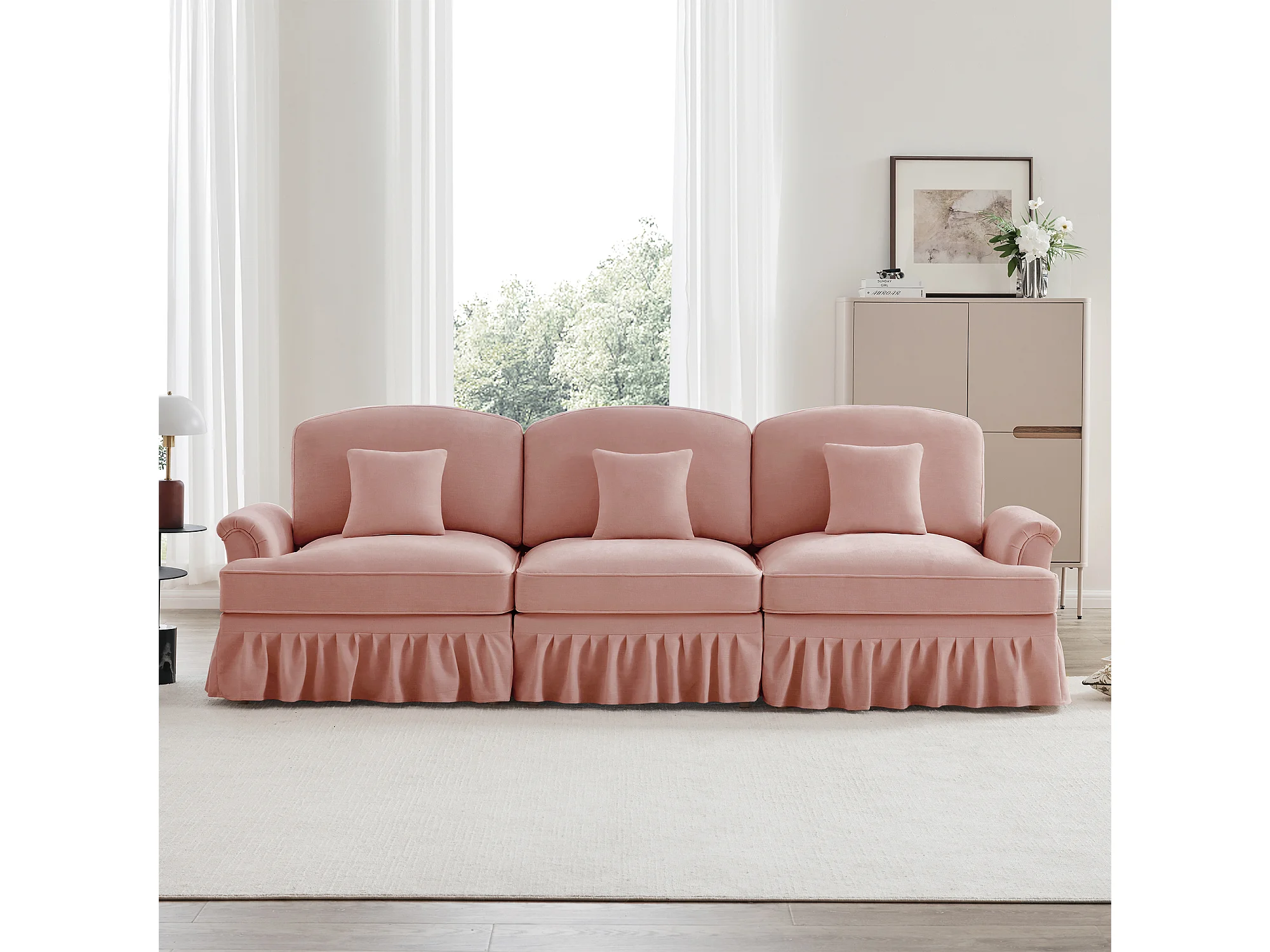 Canapé modulable modules indépendants convertible chaise longue chenille rose