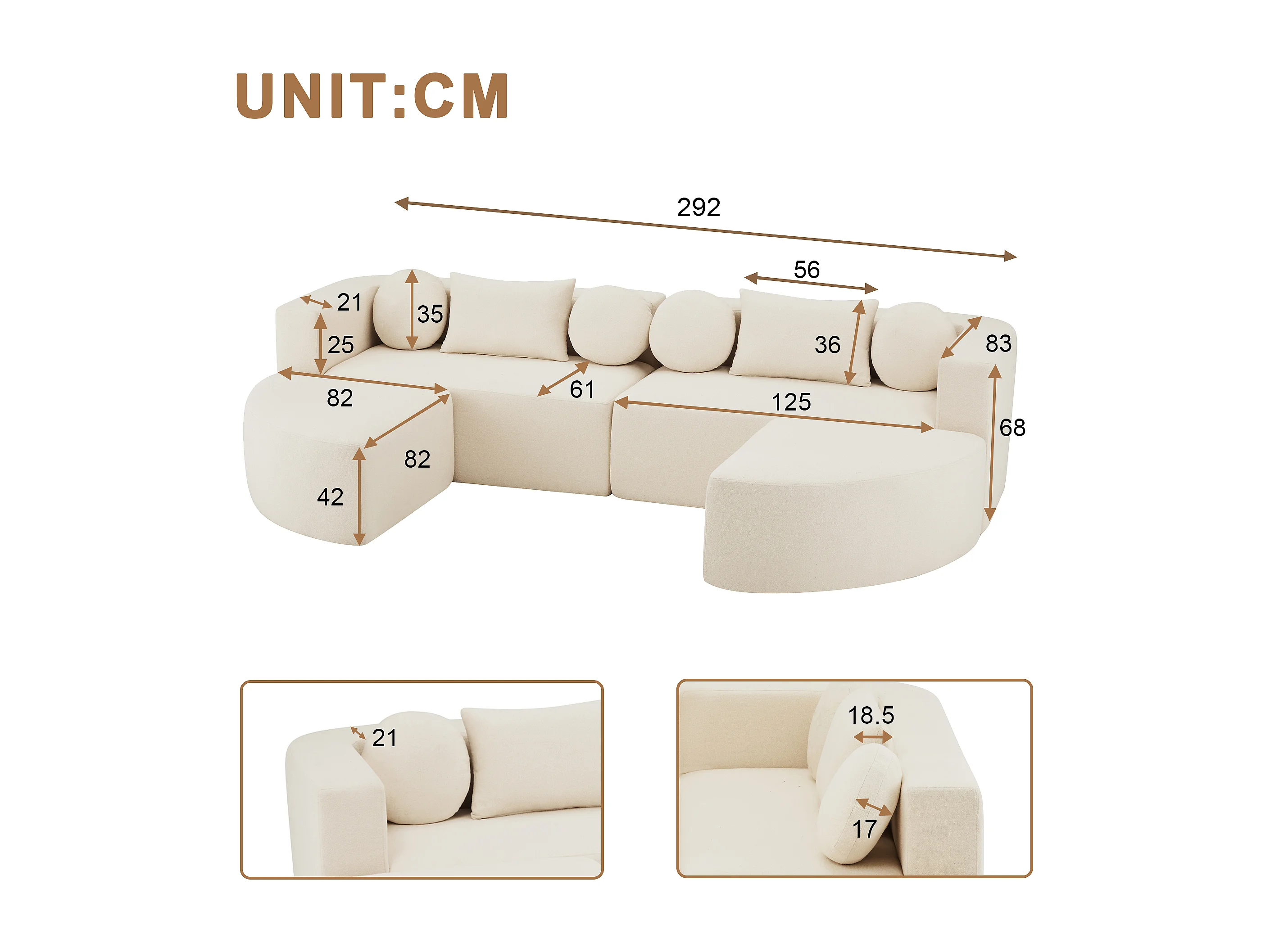 Canapé modulable nuage avec fonction couchage - 292 x 165 x 68 cm - aucun assemblage requis - chenille - beige