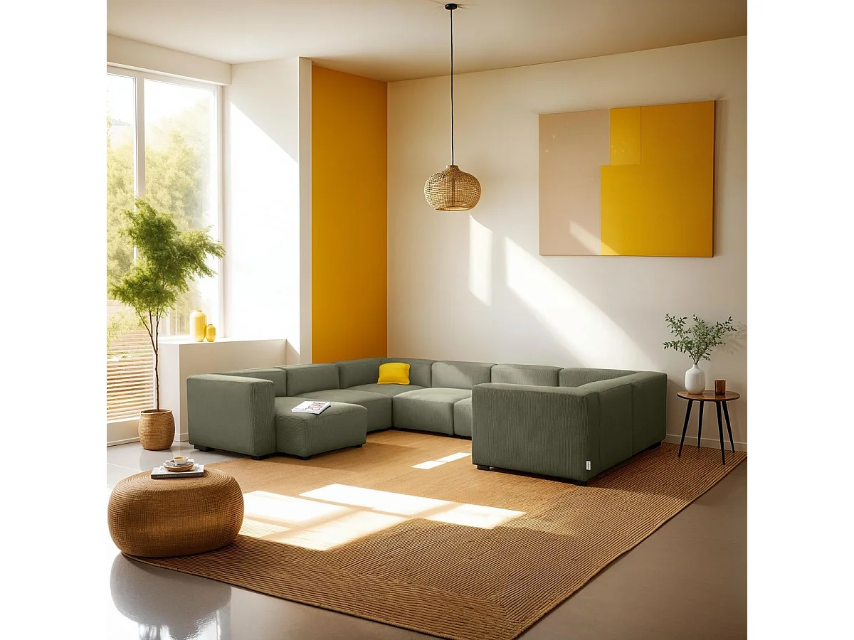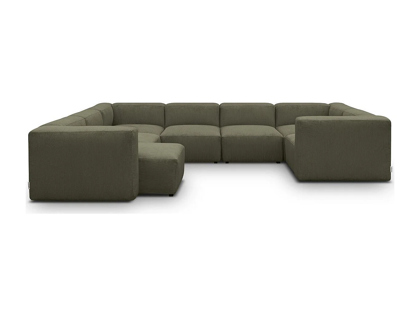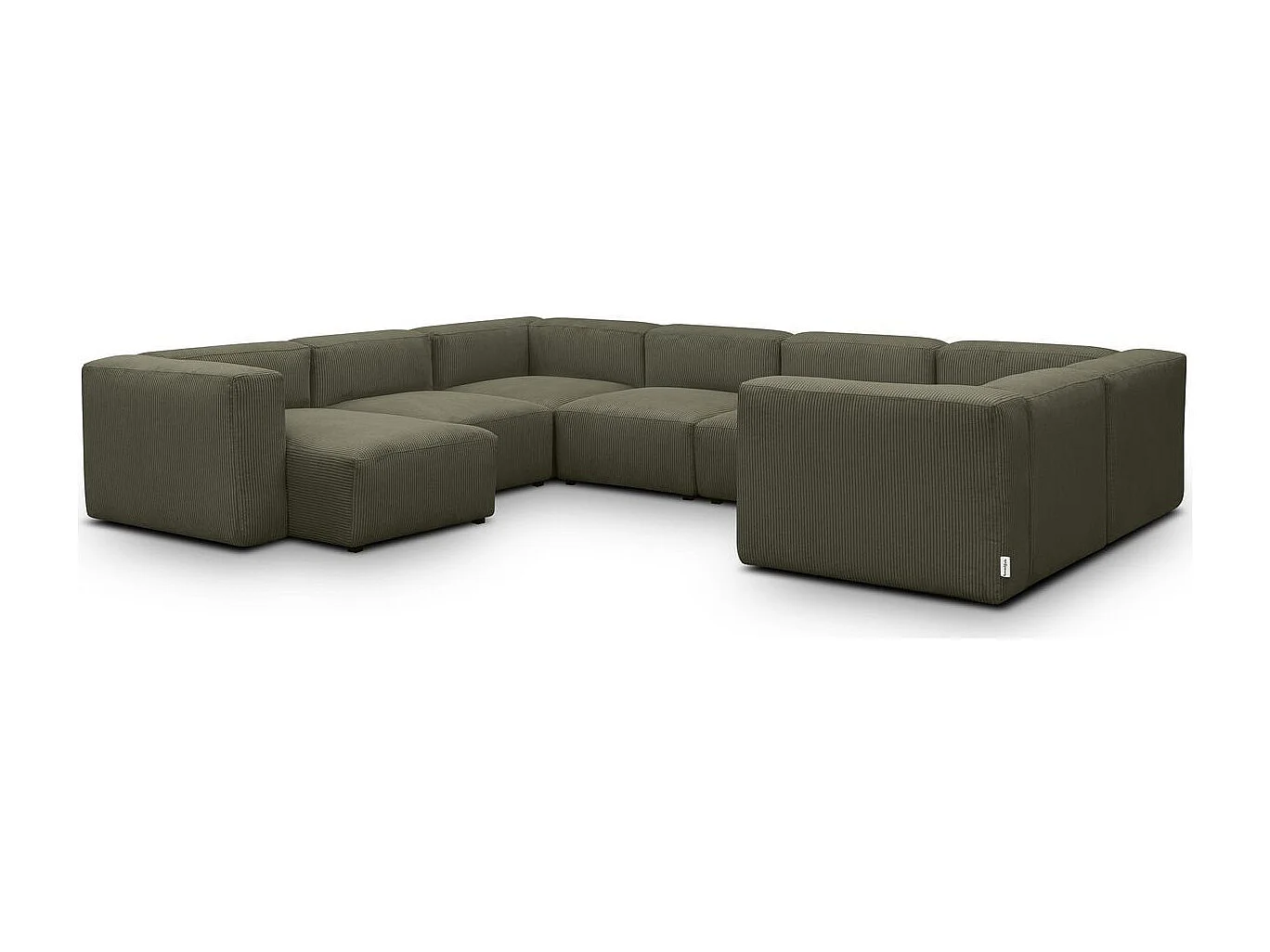 Canapé modulable panoramique 10 places avec méridienne à gauche en velours côtelé vert kaki - Modulo