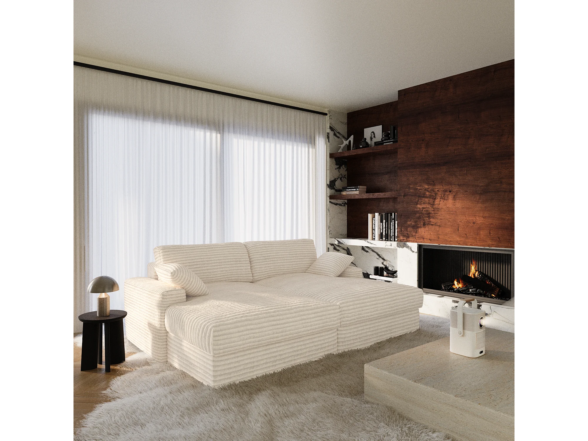 Canapé PLUM en Velours côtelé XXL Crème