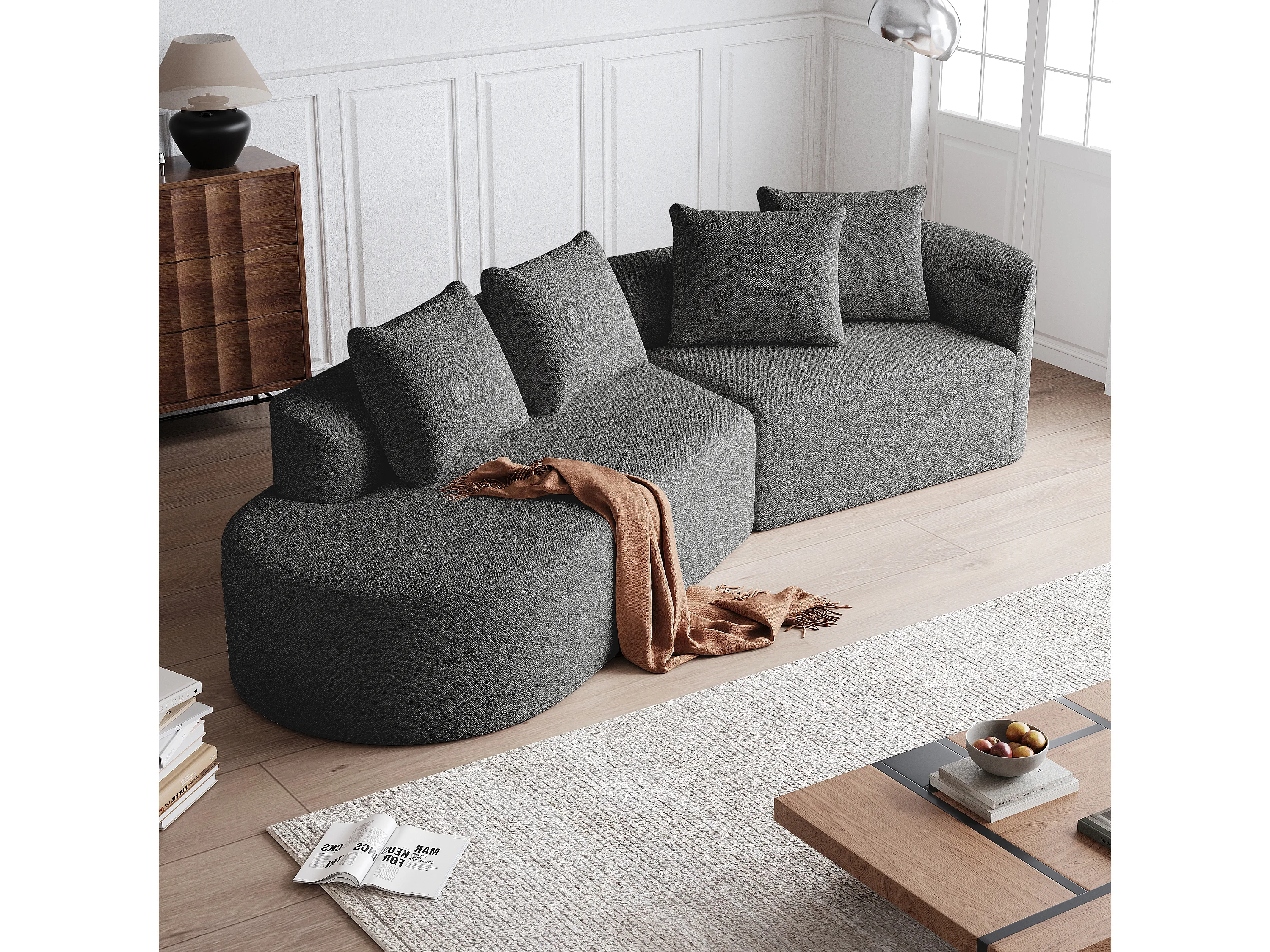 Canapé modulable sans montage assise large mousse haute élasticité en chenille