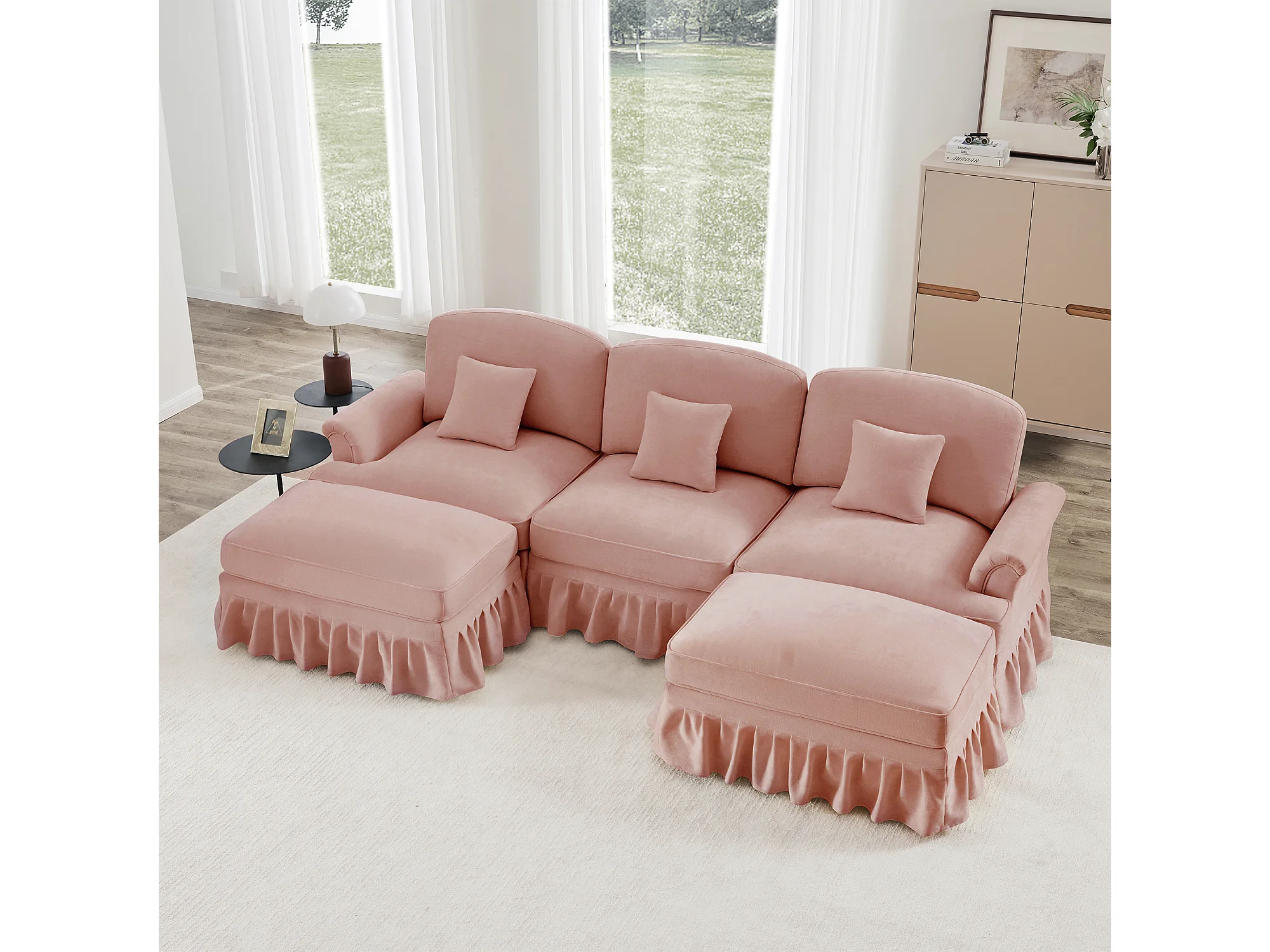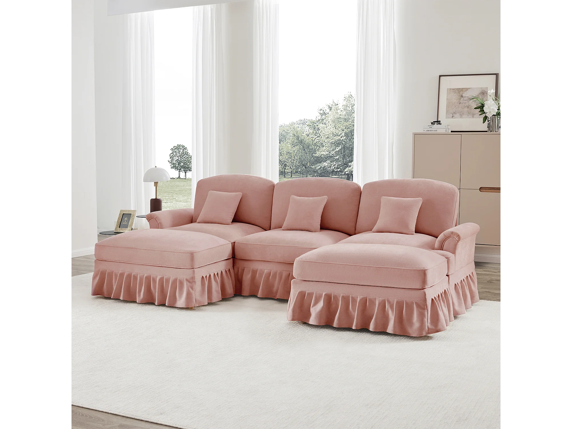 Canapé modulable U angle style contemporain relaxation chenille pour salon rose