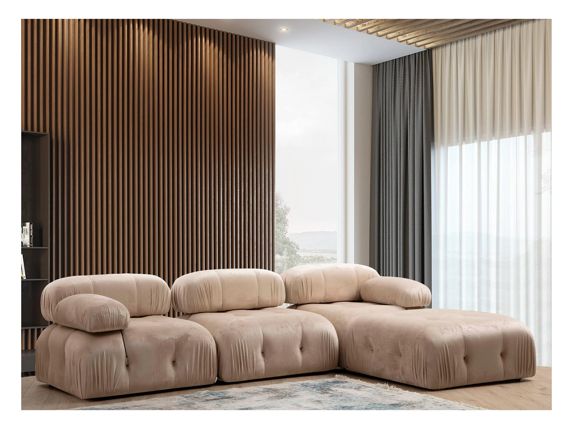 Canapé d'angle modulable velours Bubble-Couleur Beige clair