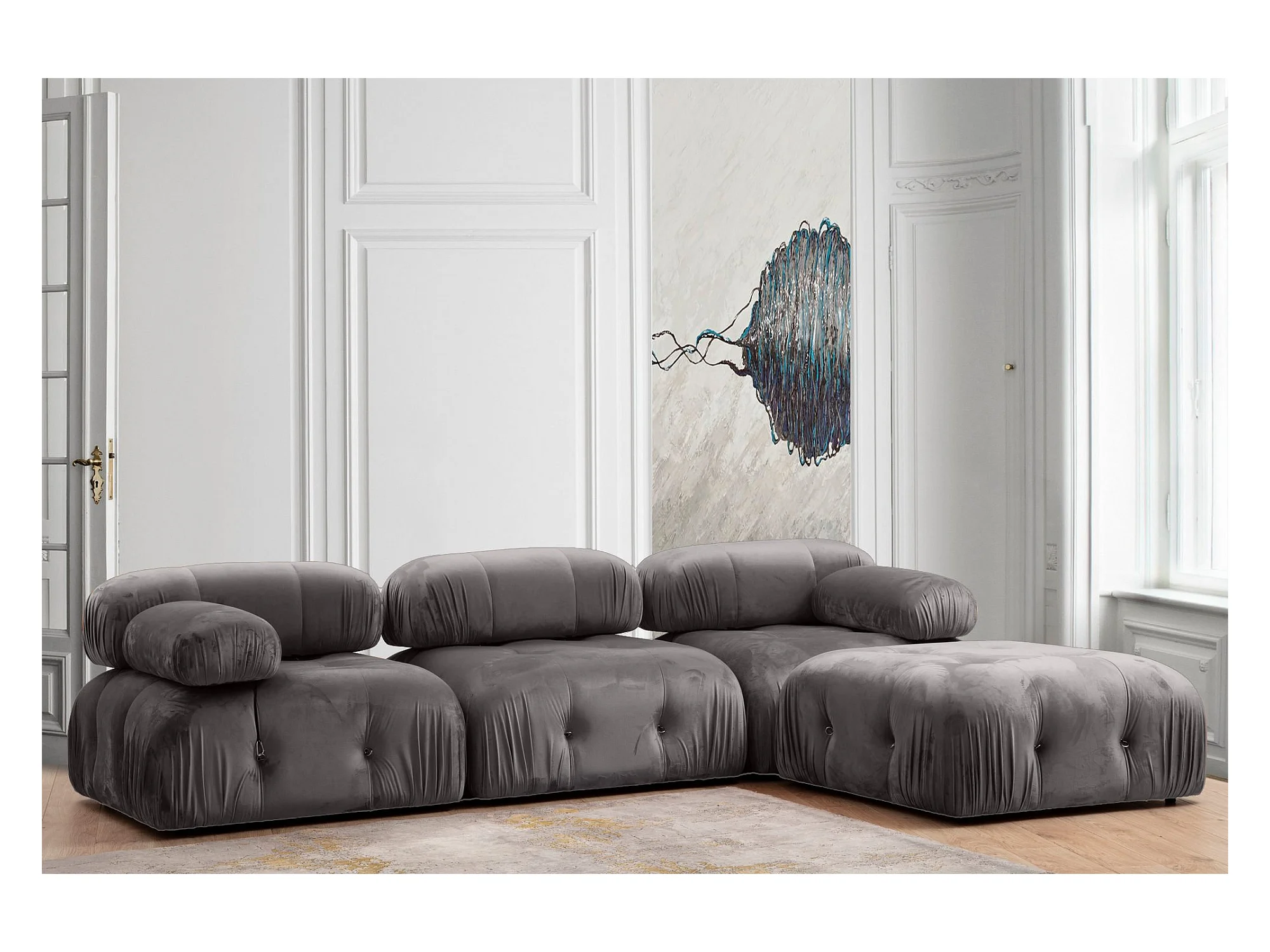 Canapé d'angle modulable velours Bubble-Couleur Gris