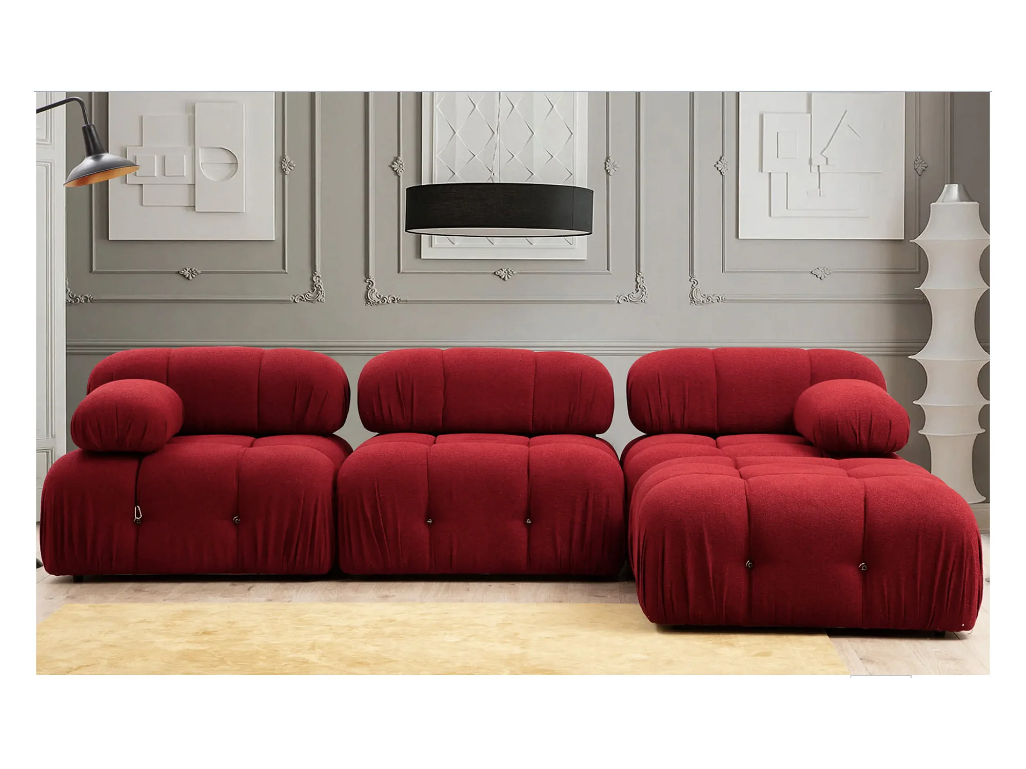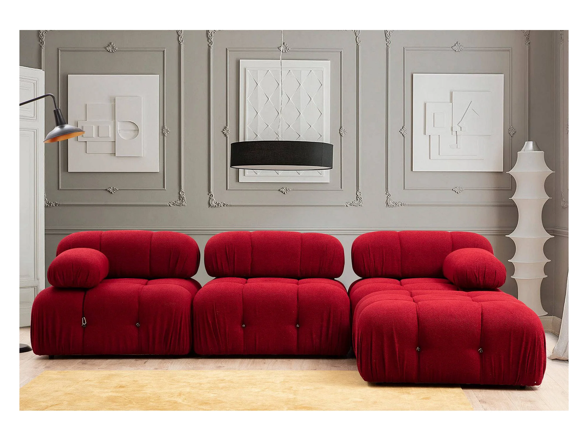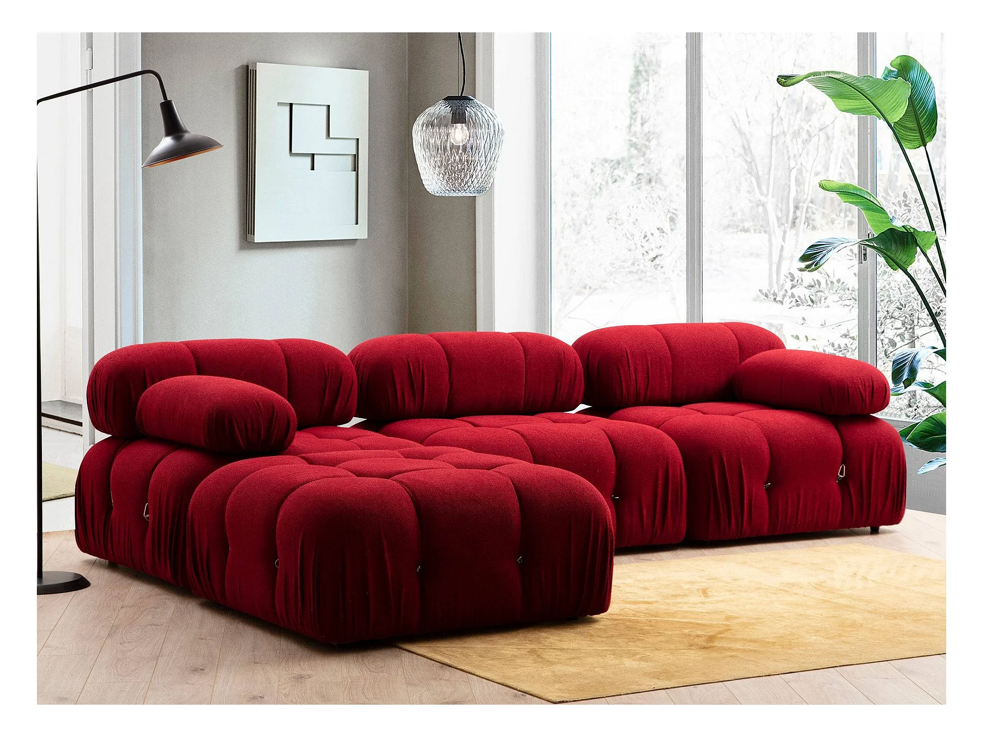 Canapé d'angle modulable velours Bubble-Couleur Rouge cerise