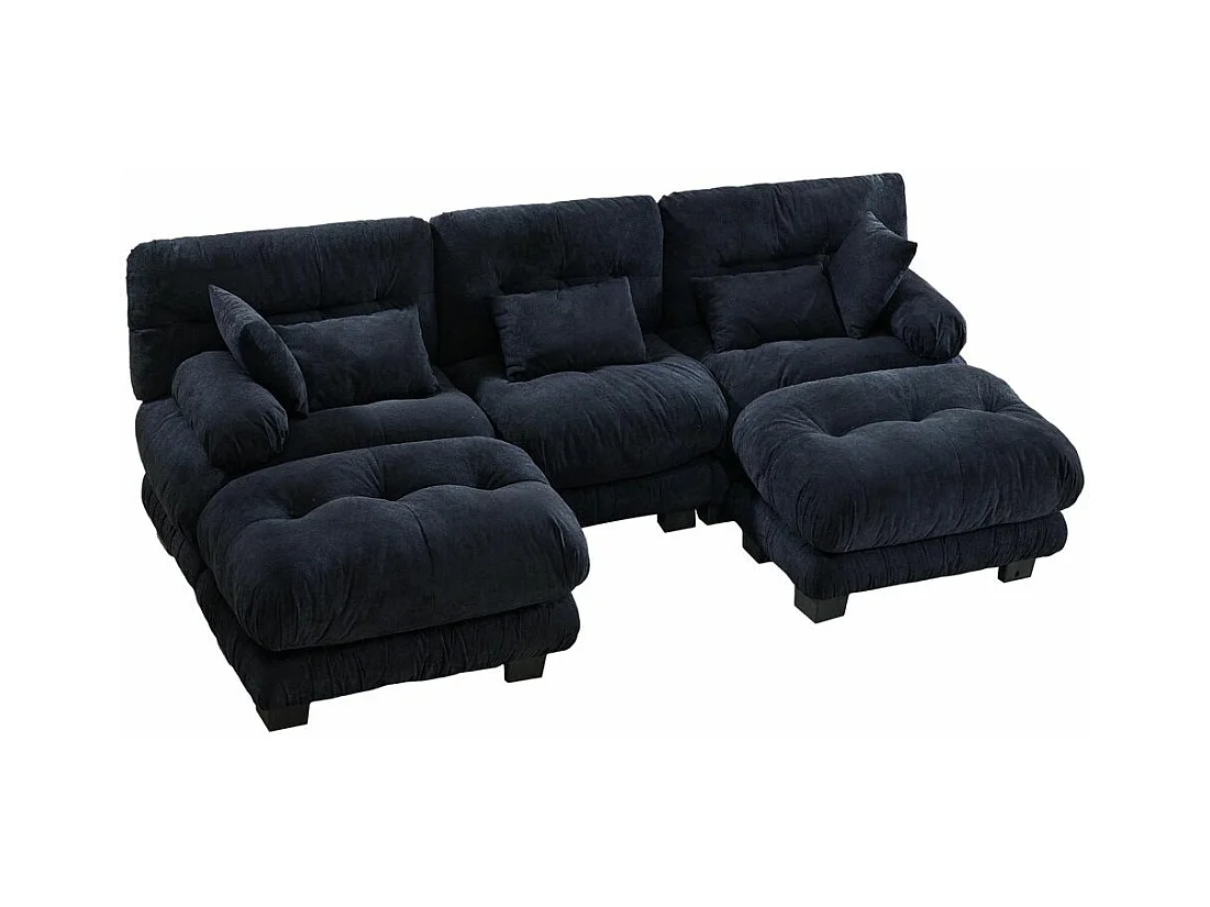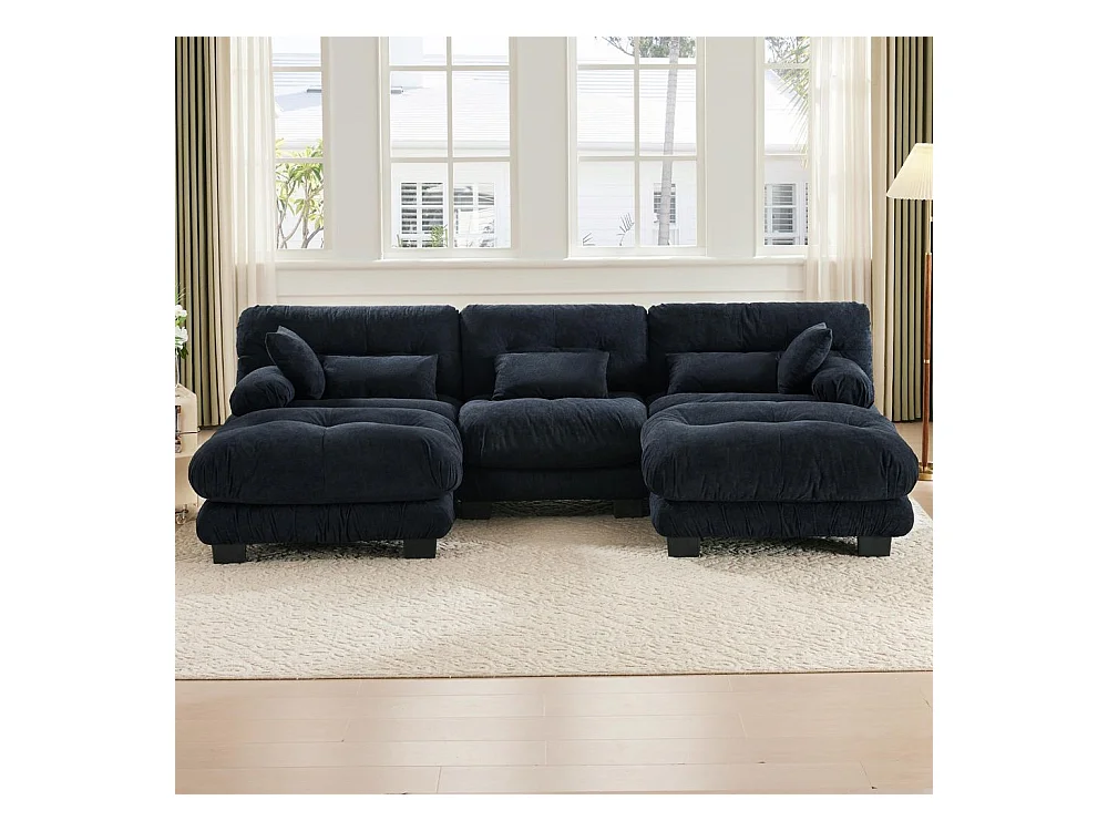 Canapé modulaire canapé d'angle tissu velours et design grand nuage 5 places rembourrage 100 % mousse à mémoire de forme construction robuste noir
