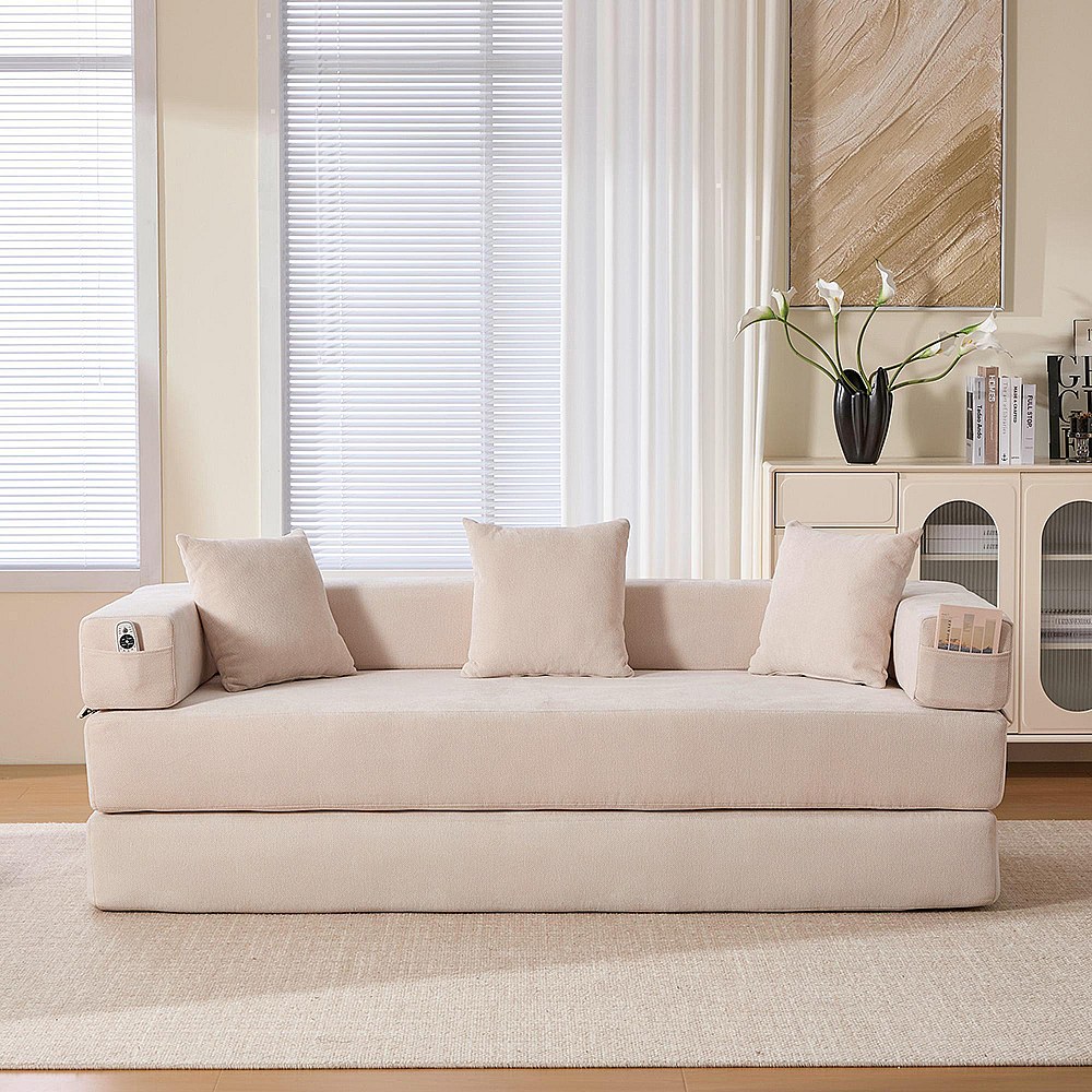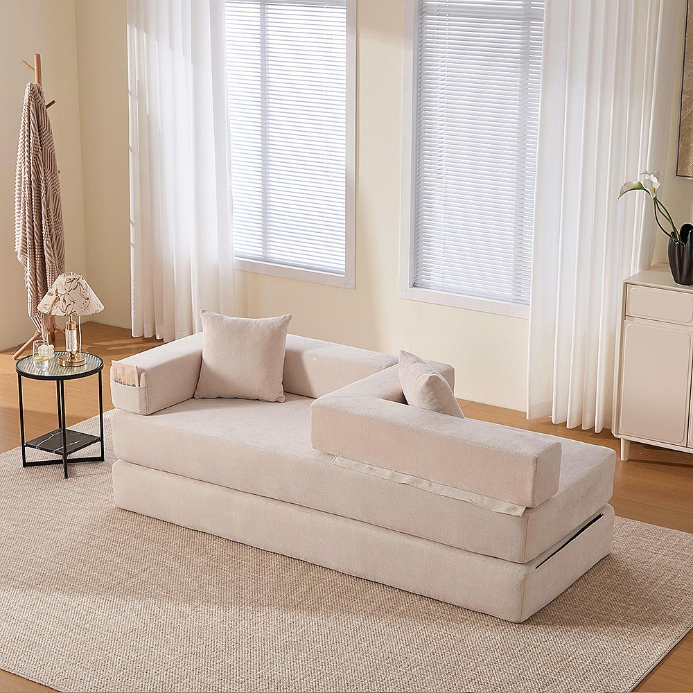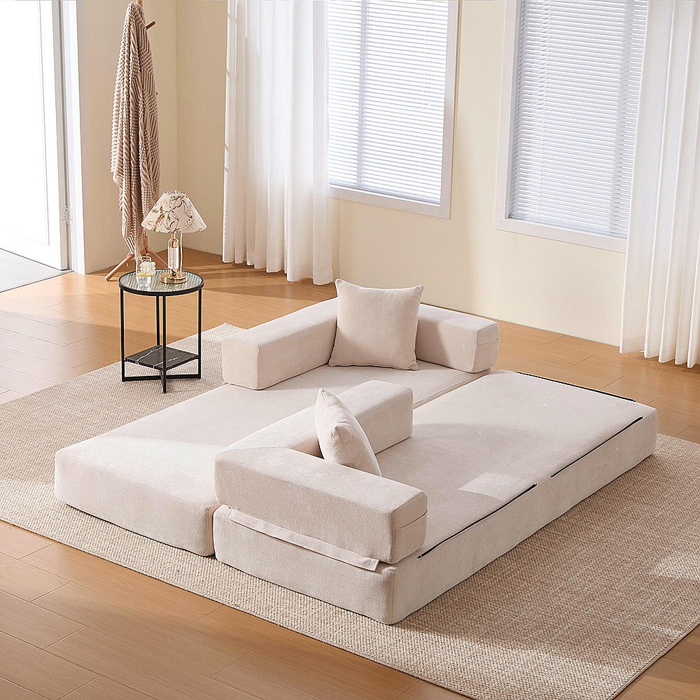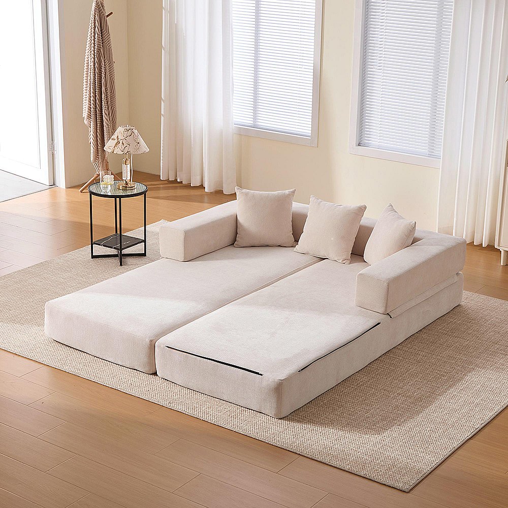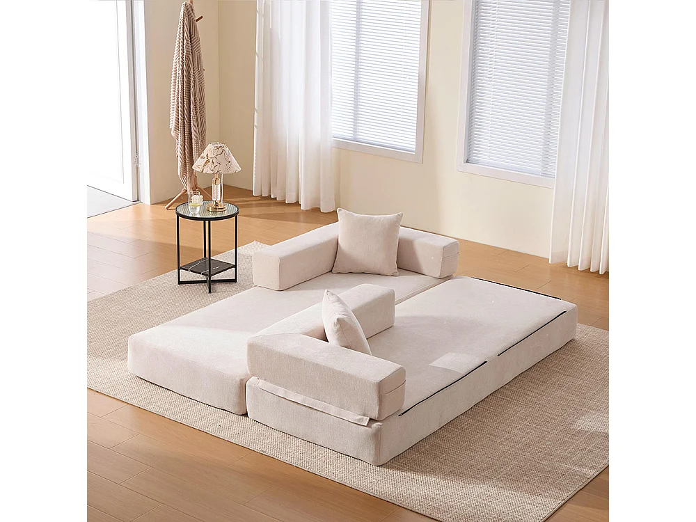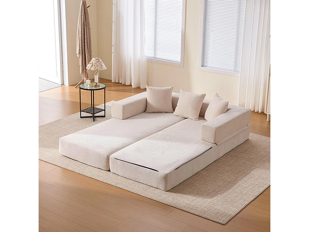Canapé modulaire chenille ultra-doux modularité poches rangement antidérapant salon jeux bricolage bien-être beige