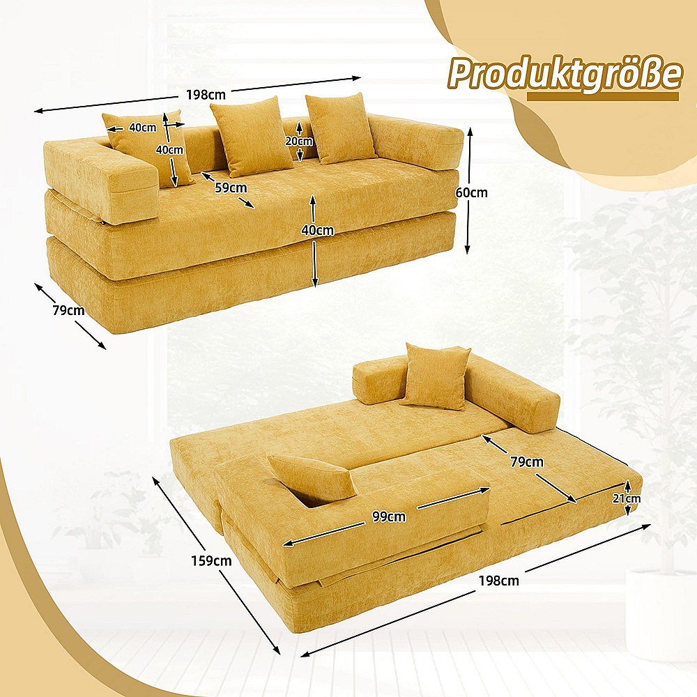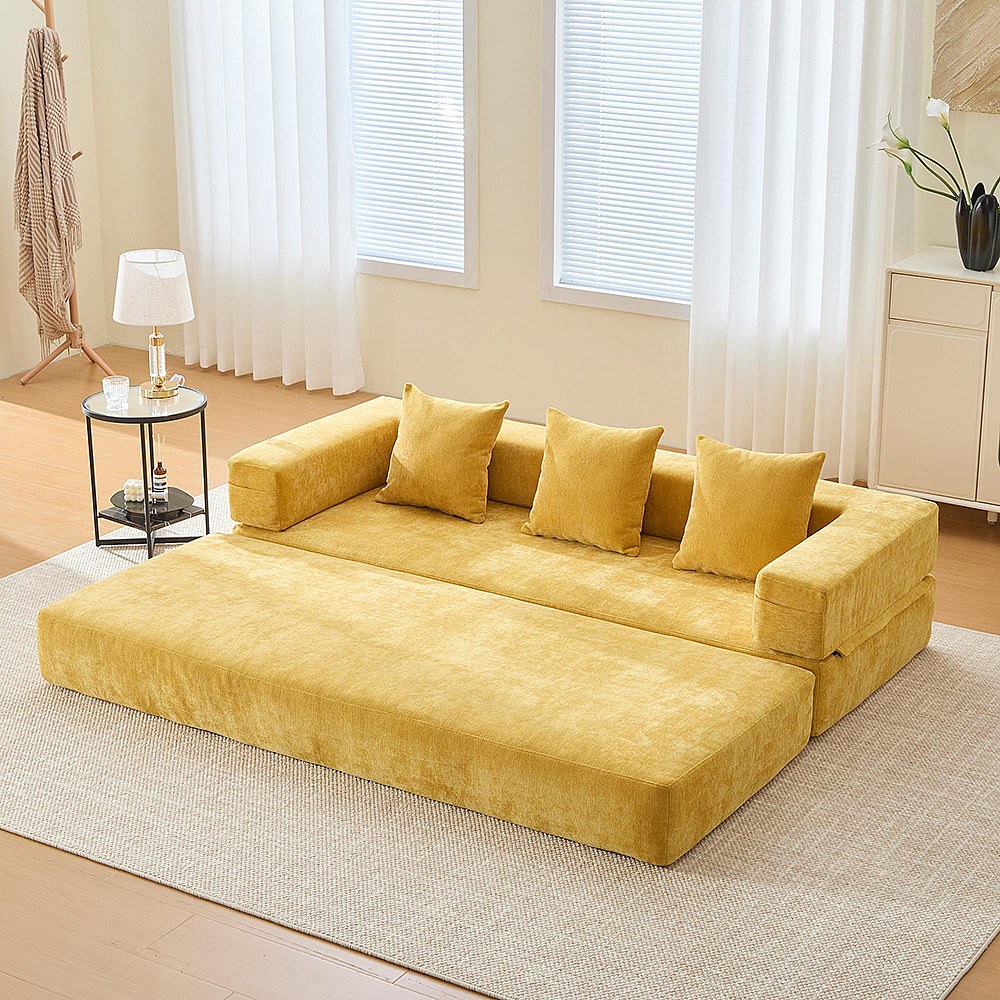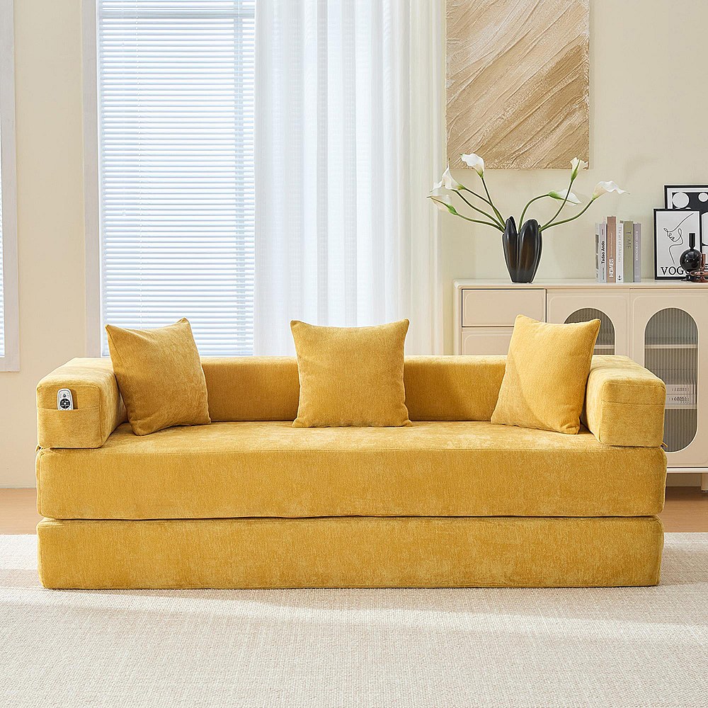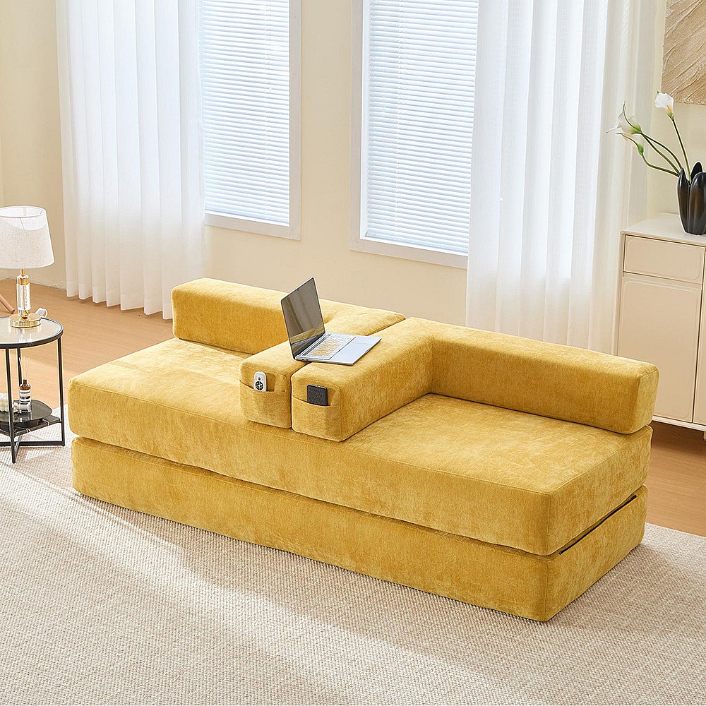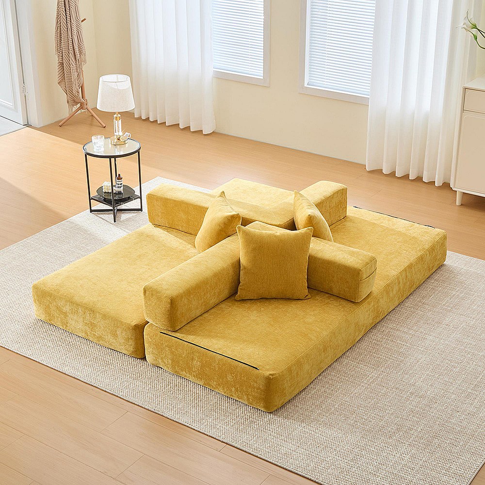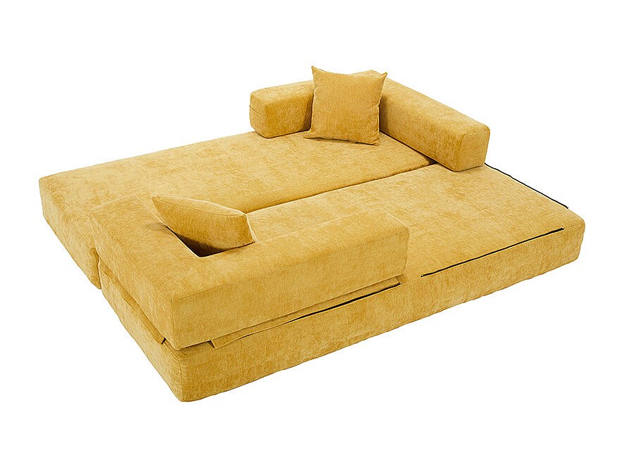 Canapé modulaire chenille ultra-doux modularité poches rangement antidérapant salon jeux bricolage bien-être Jaune moutarde