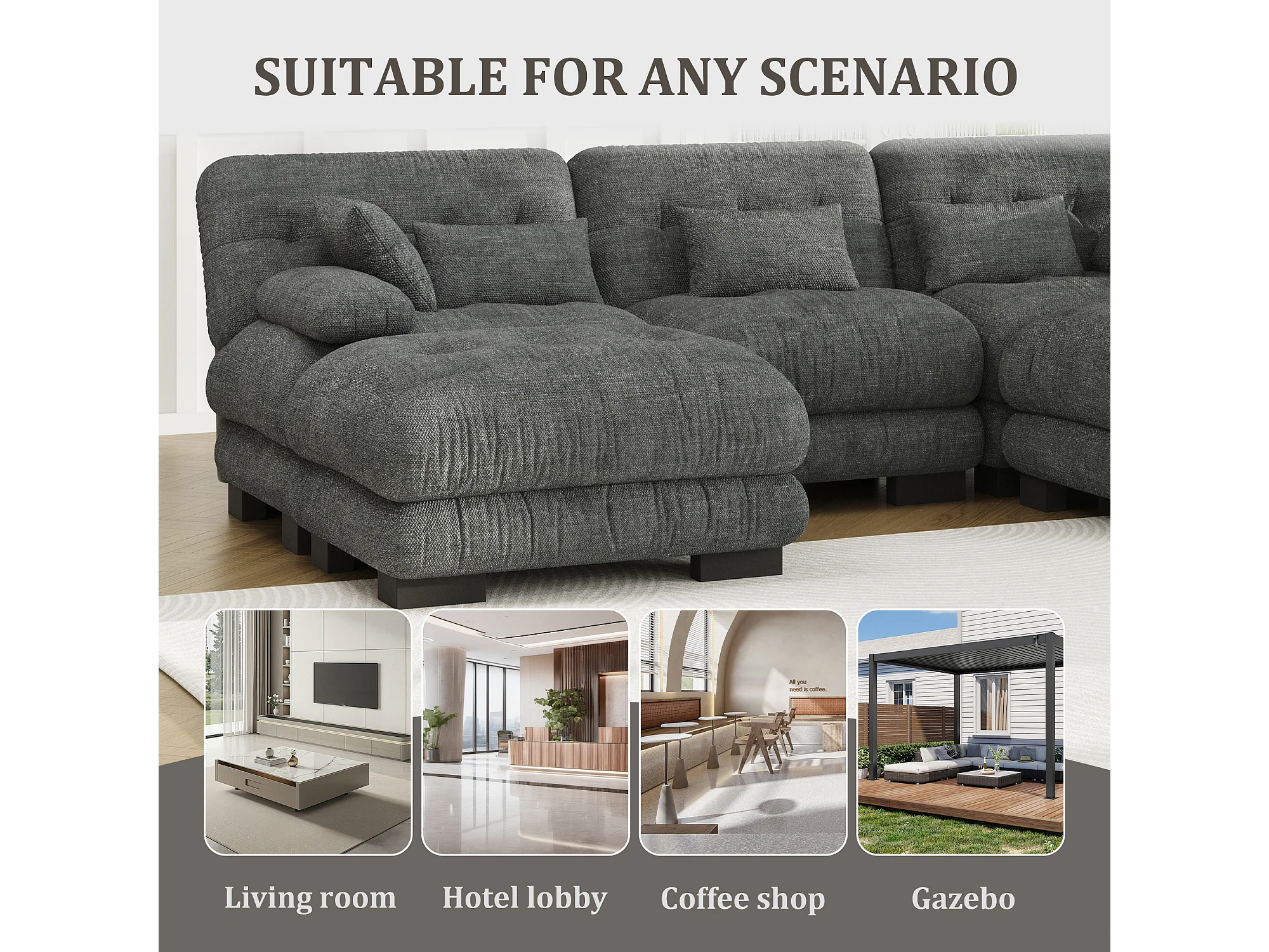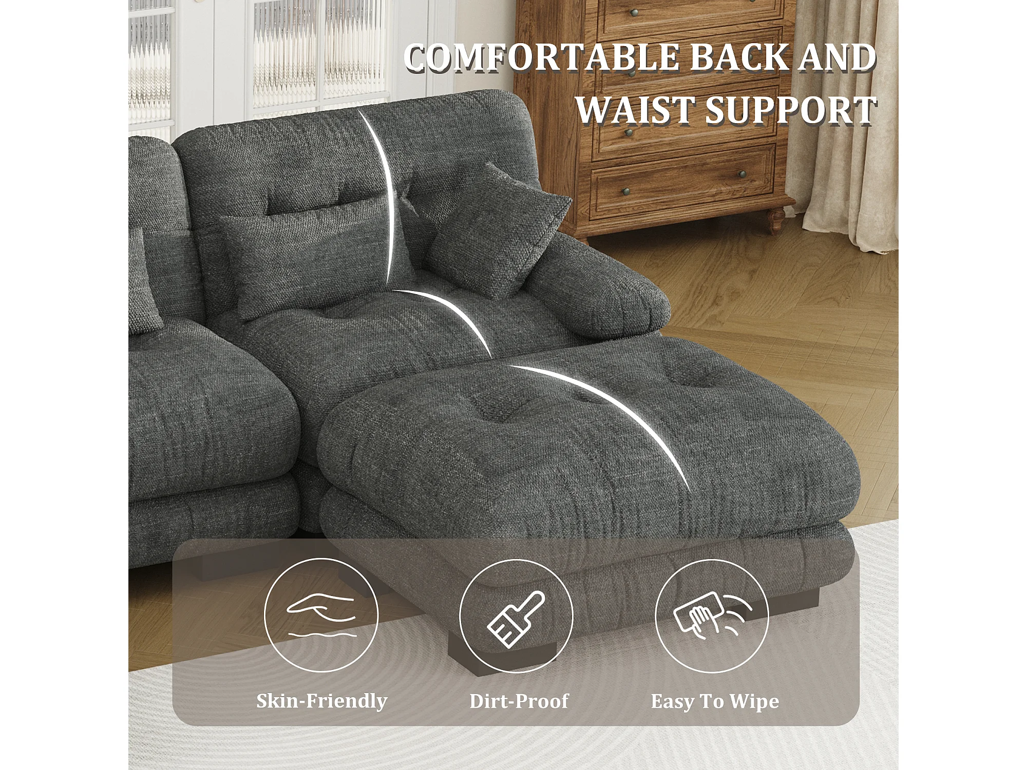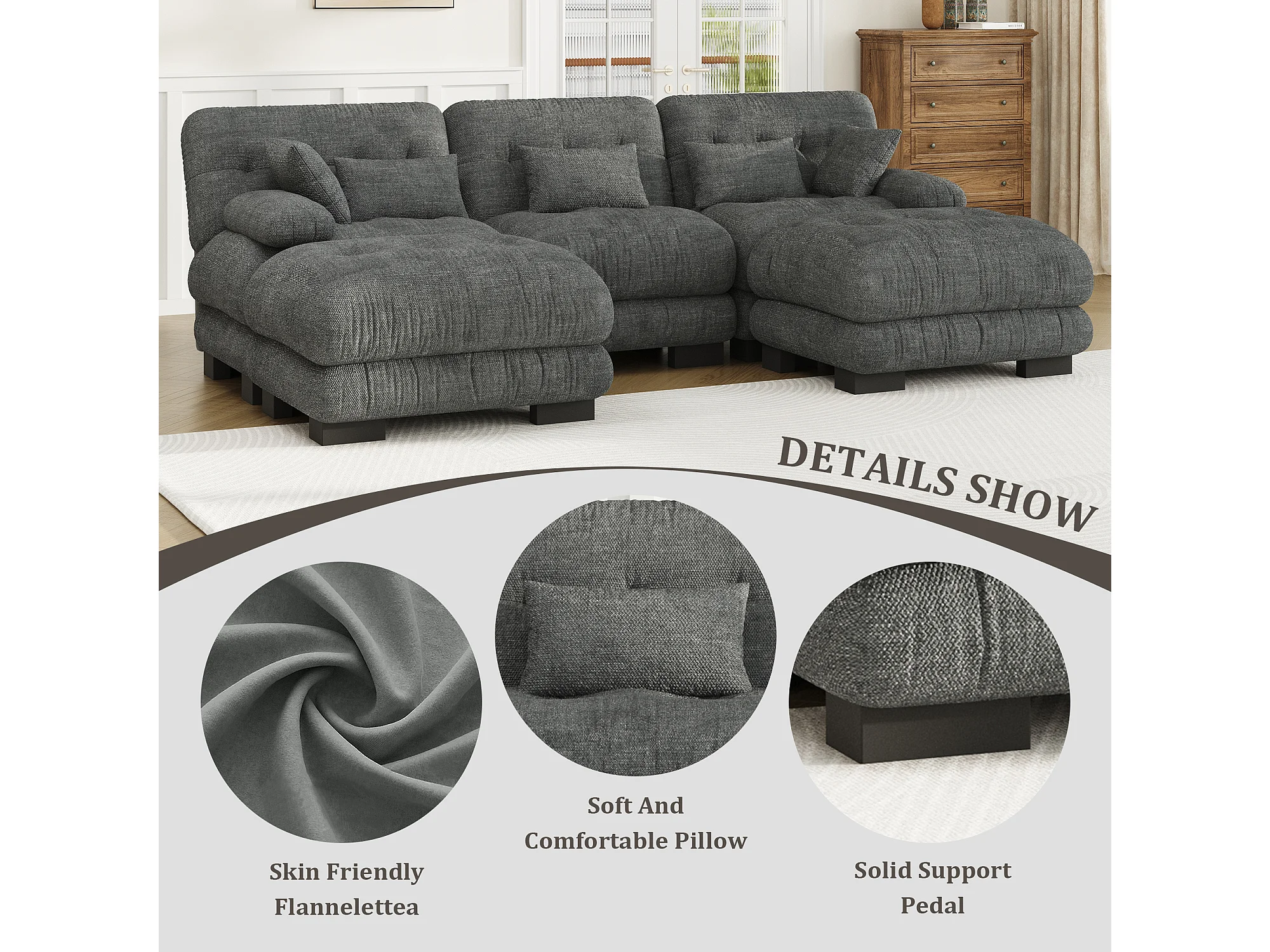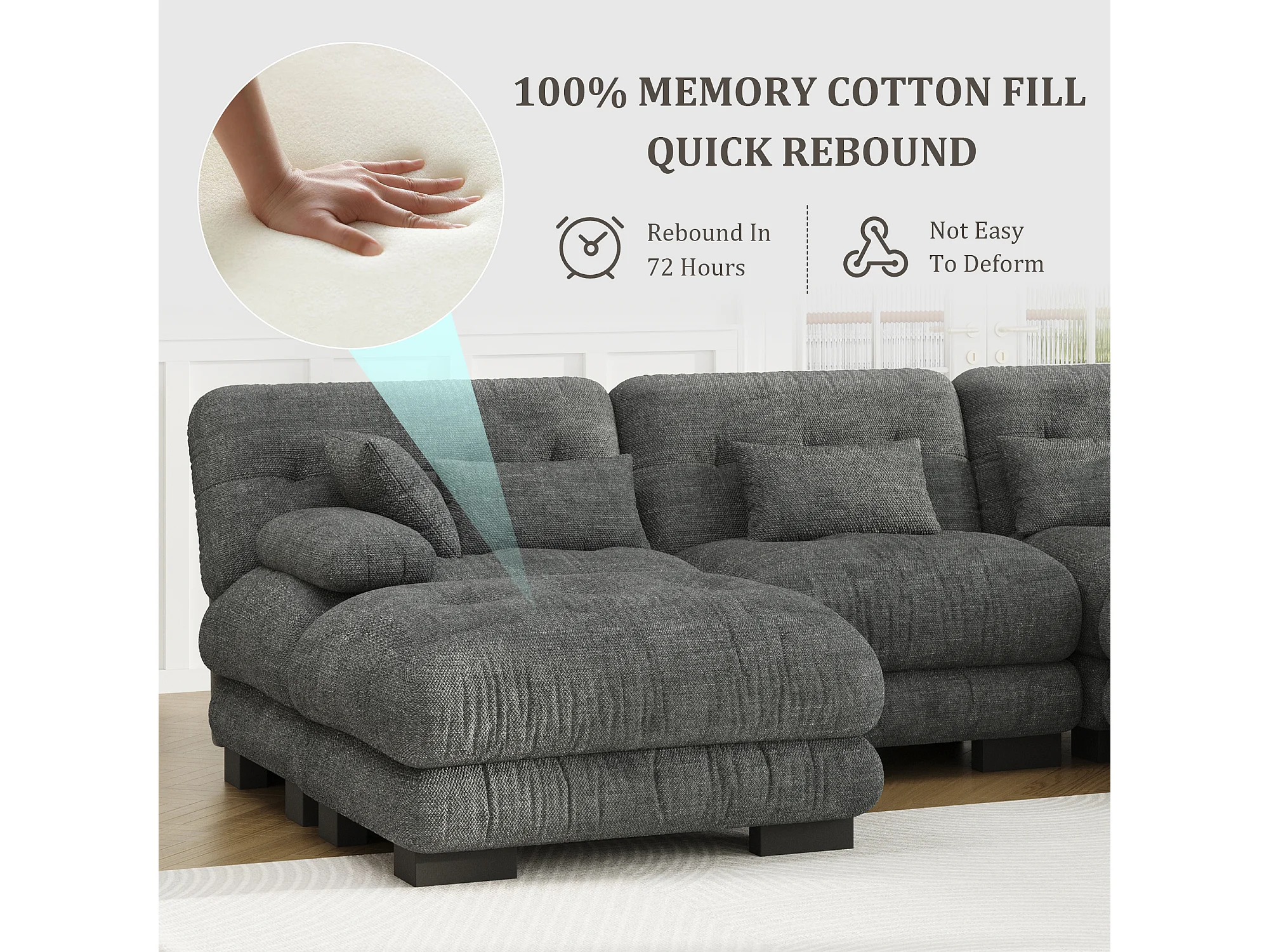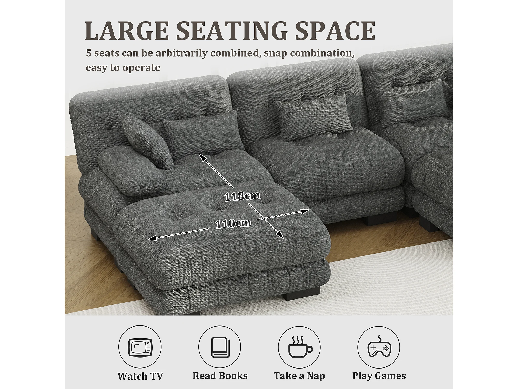 Canapé 5 Places en Velours Gris - canapé d'angle modulable - 300 x 143 x 80 cm - Confort et Douceur Absolus pour Votre Salon