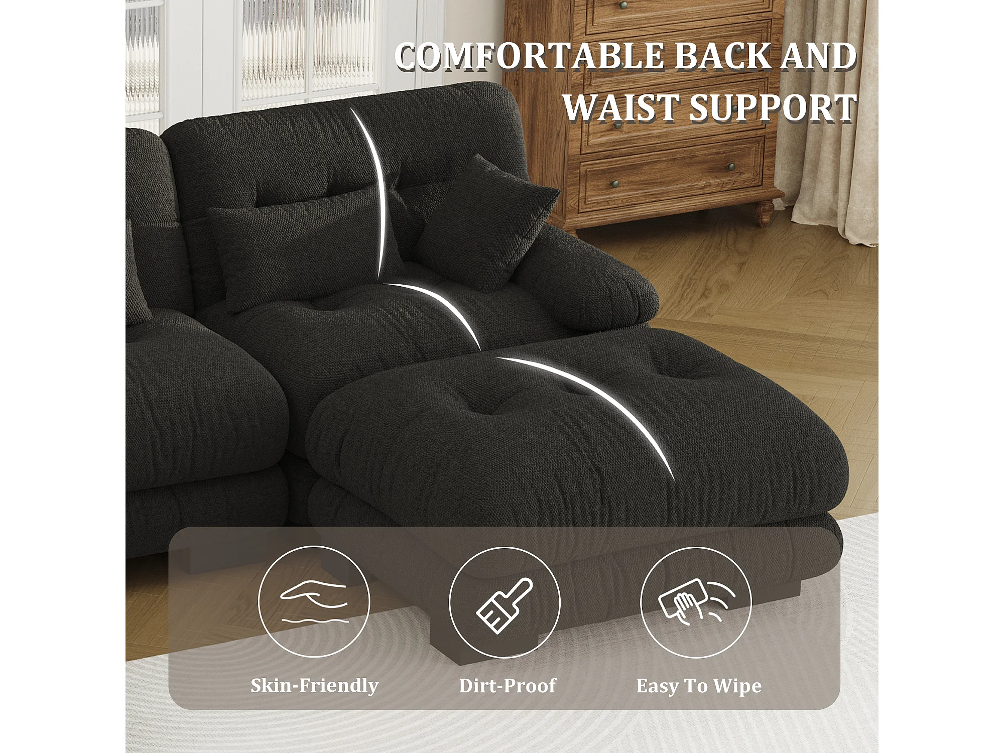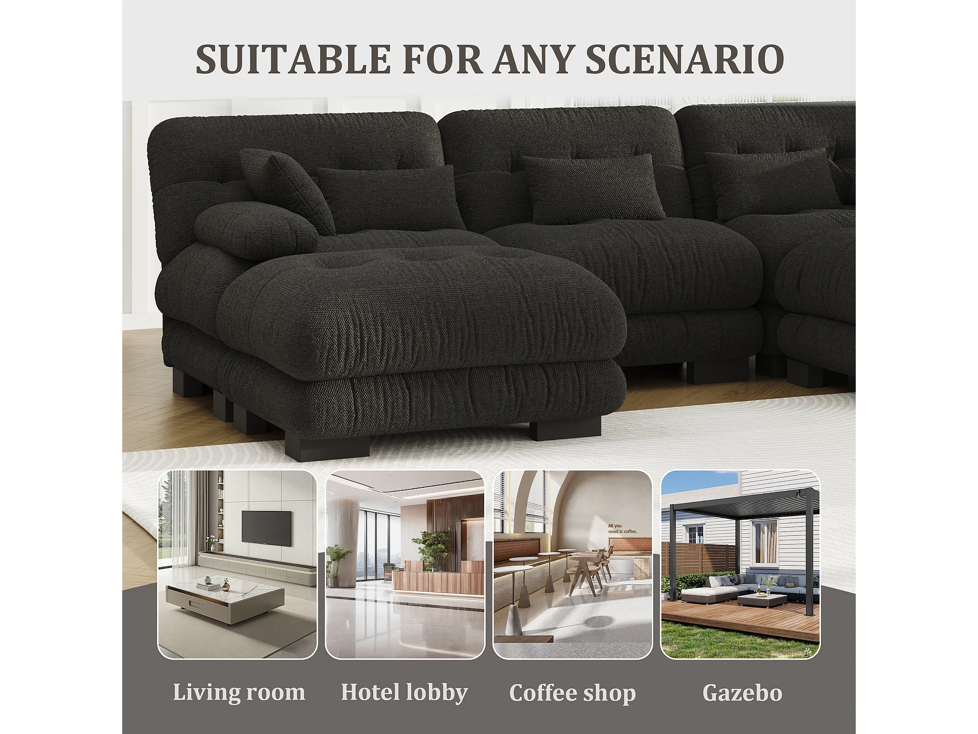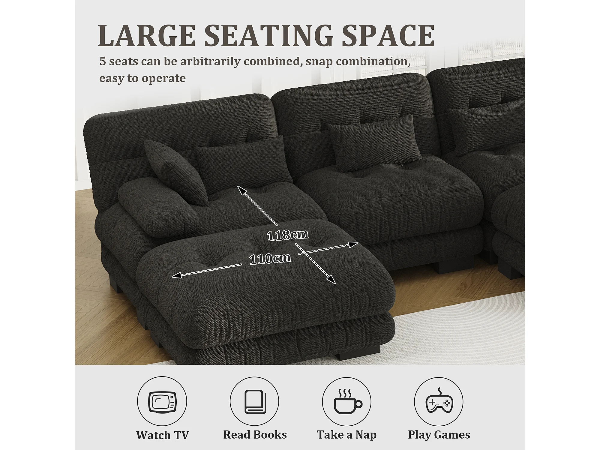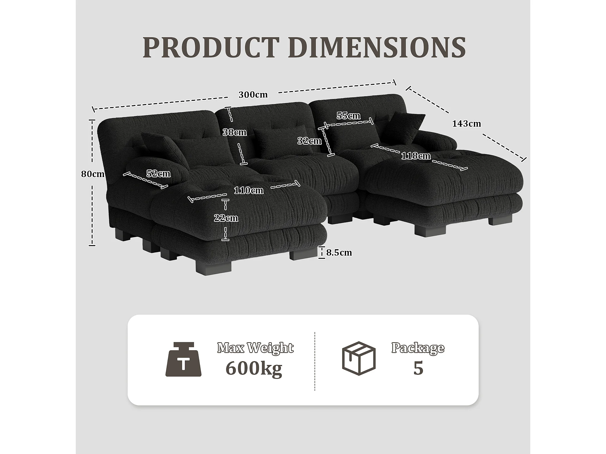 Canapé 5 Places en Velours Noir - Canapé d'angle modulable - 300 x 143 x 80 cm - Confort et Douceur Absolus pour Votre Salon